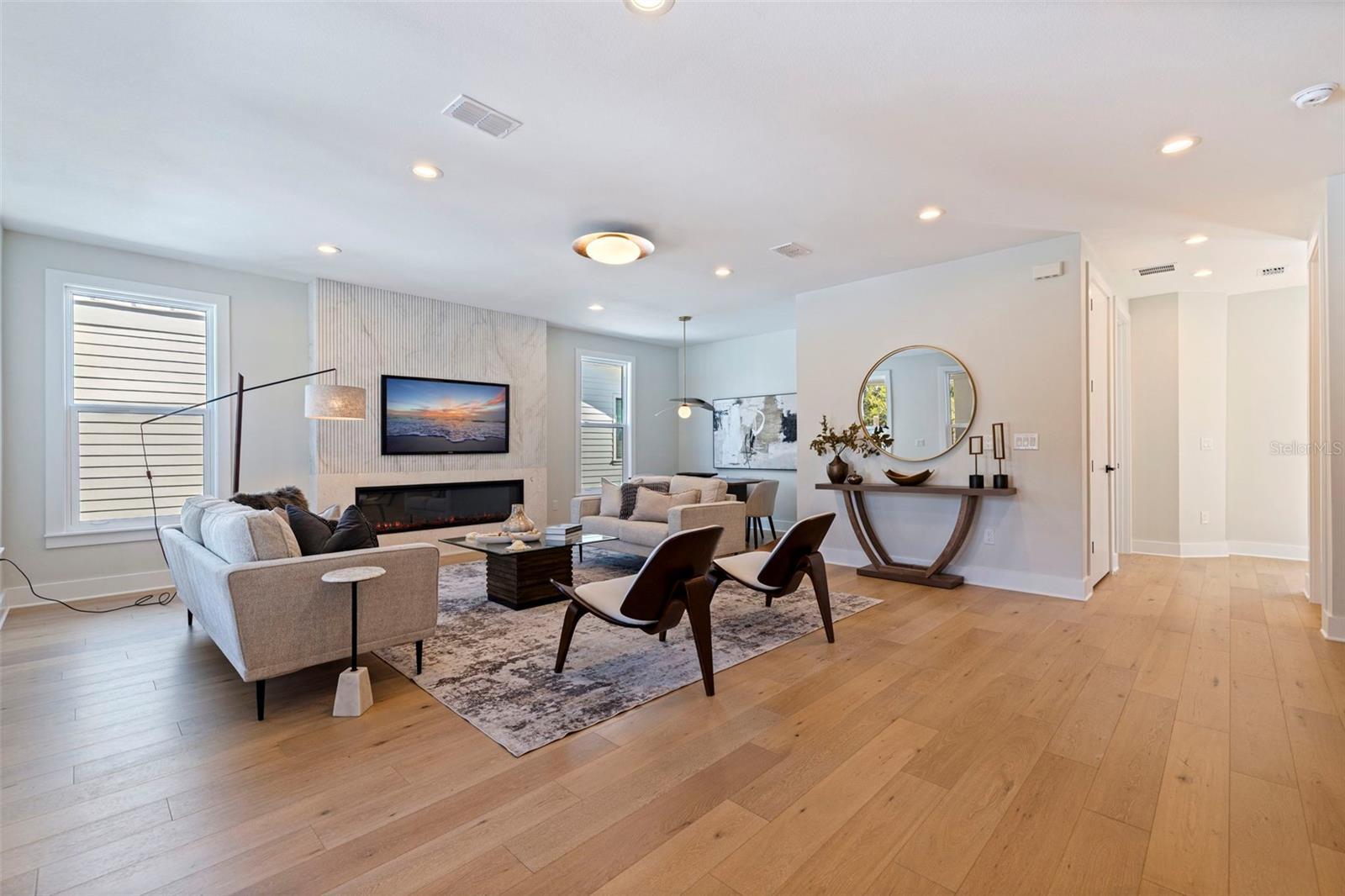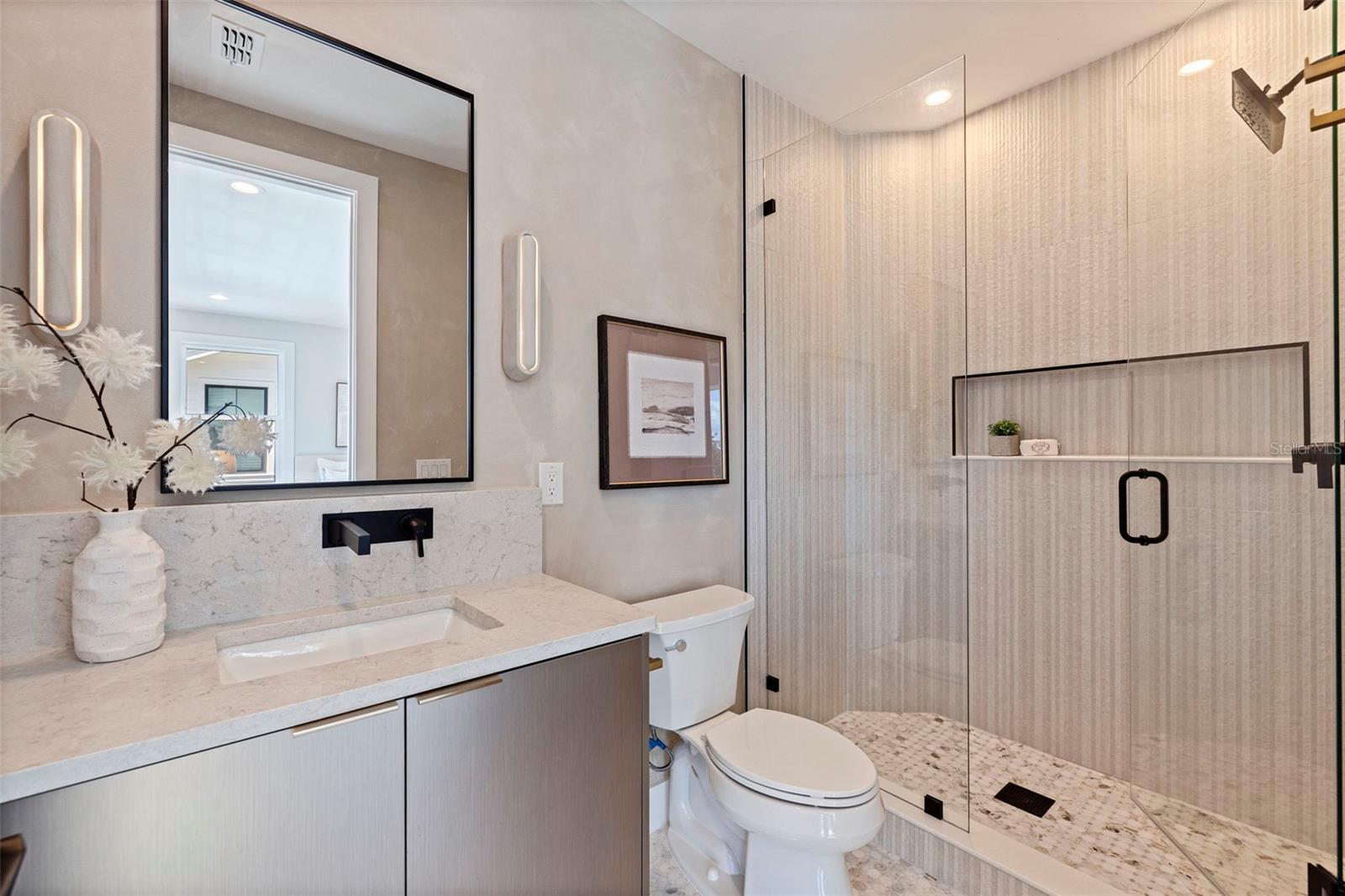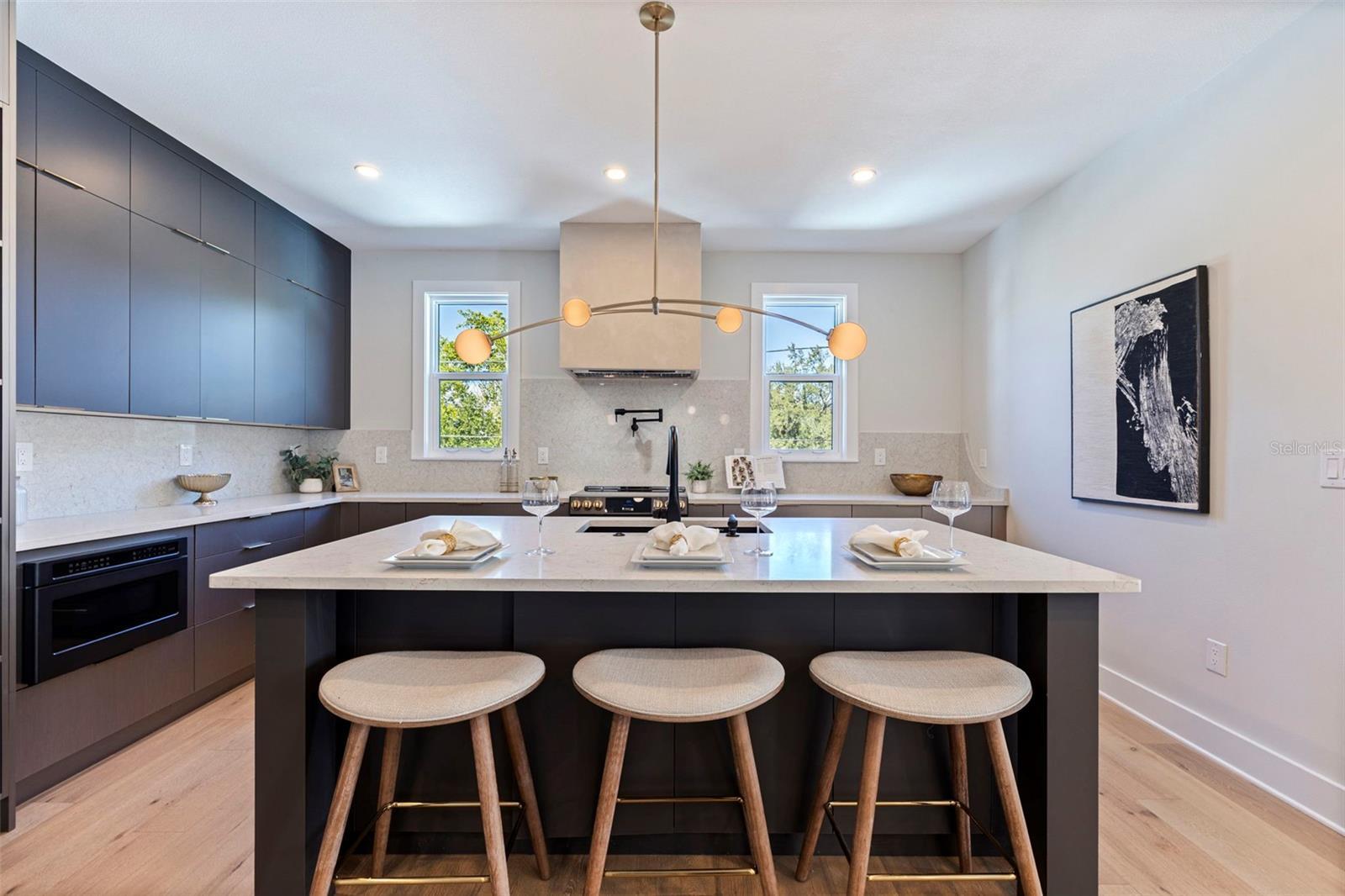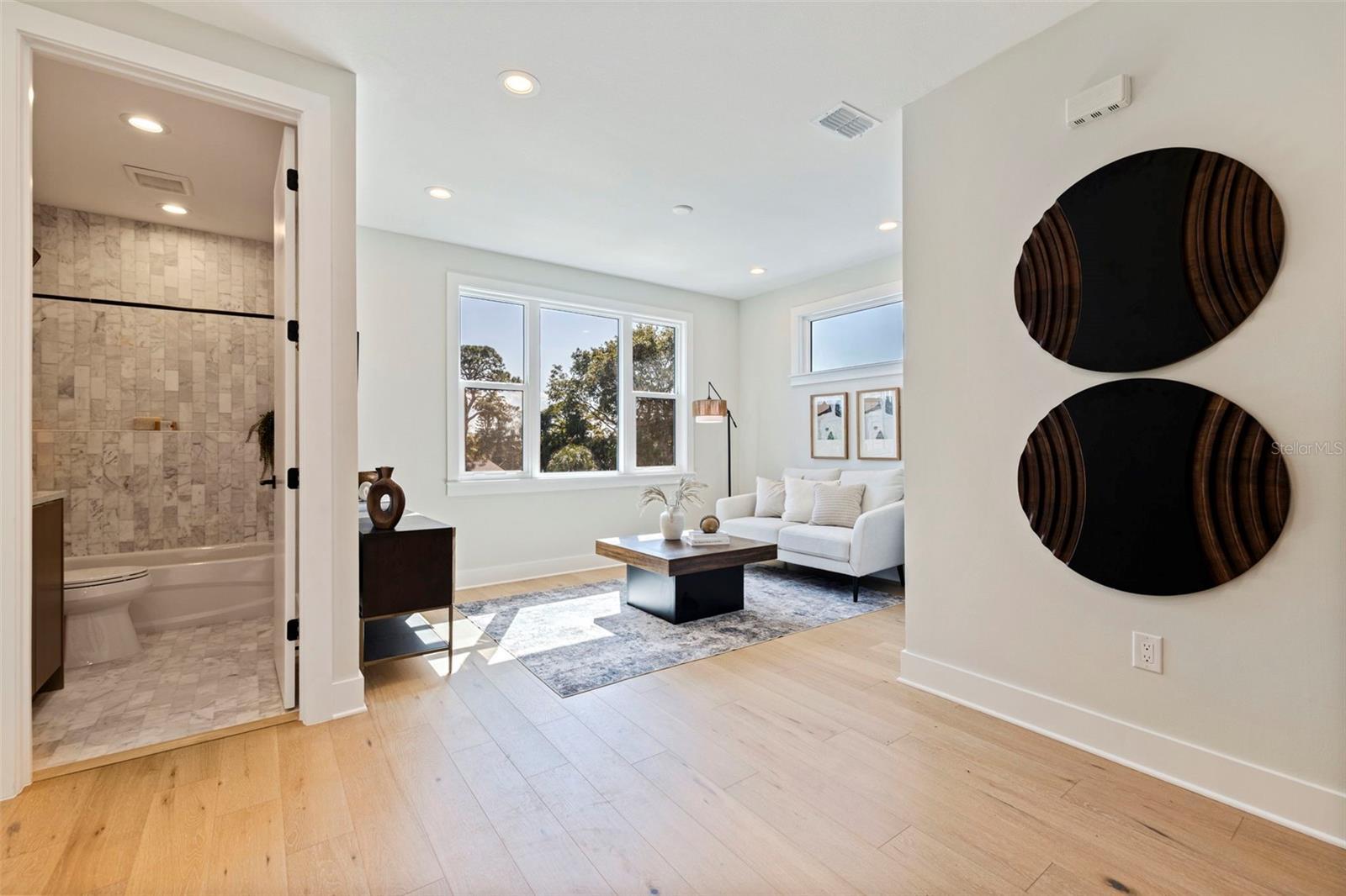 Skip the build time—this stunning new construction is finished and waiting for you to call it home! Experience unparalleled luxury and sophistication in this newly constructed masterpiece, crafted by the renowned Bay To Bay Group, a distinguished boutique builder in St. Petersburg. AFFORDABLE FLOOD INSURANCE ONLY $842 A YEAR! Nestled among other new homes in the coveted Northeast area of St. Pete, this 4-bedroom, 3.5-bathroom home with a 3-car garage and private elevator offers the ultimate in contemporary living. Enjoy the convenience of nearby serene water vistas, lush parks, the Shore Acres Recreation Center, the new YMCA, and a scenic path to Downtown St. Petersburg. The first level, built with solid block construction, features a spacious garage accommodating three cars and a golf cart, along with ample storage. The home includes dual primary suites—one on each level—showcasing modern comfort and luxury. Step into the grand great room with a fireplace, opening onto a balcony, perfect for entertaining. The expansive kitchen, with its large island, is designed for hosting gatherings, featuring sleek cabinetry, luxurious quartz countertops, and top-of-the-line GE Cafe appliances. Every detail of this home reflects the meticulous craftsmanship of the Bay To Bay Group, with engineered hardwood flooring, contemporary porcelain tiles in the bathrooms, and a dedicated laundry room. The main living area boasts 10-foot ceilings, while the upper level features 9-foot ceilings and an 8-foot front entry door with impact glass and hurricane-resistant windows. Inside, 8-foot solid doors, modern trim, chic hardware, and sleek ceiling fans enhance the sense of contemporary elegance. Take your private elevator to the third level, where the primary bedroom awaits with a covered balcony ideal for enjoying your morning coffee. The en-suite bathroom is a spa-like retreat with a spacious shower and a standalone tub with exquisite finishes. Outdoors, a covered back balcony and a covered lanai offer serene relaxation spaces, while the expansive backyard, enclosed by a vinyl fence, provides privacy and lush landscaping, complemented by an automated sprinkler system. This exceptional home not only showcases meticulous design but also champions energy efficiency with Icynene attic insulation, pre-installed low voltage wiring, efficient LED lighting, and a high-efficiency air conditioning system. Schedule a private viewing today to immerse yourself in the splendor of this idyllic property. With the opportunity for the buyer to select some finishing touches, this is a rare chance to secure your place in one of St. Pete's most esteemed waterfront communities.