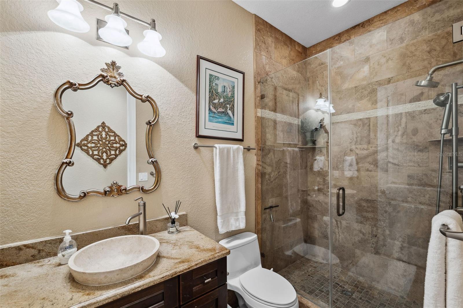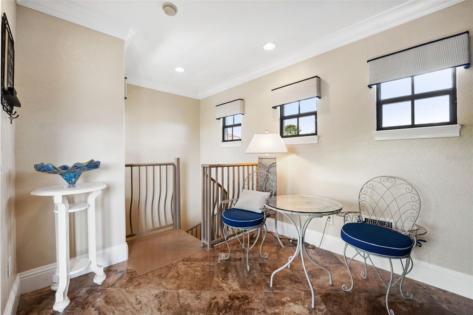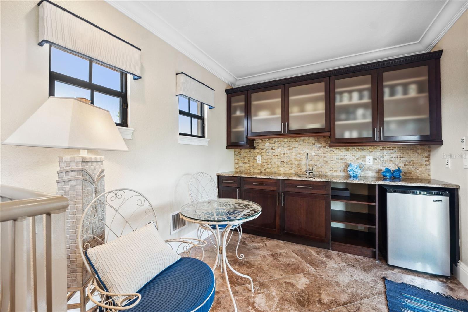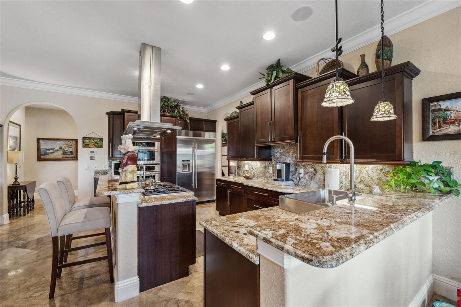 Welcome to your dream home in the beautiful island community of Tierra Verde! This stunning 4-bedroom, 4-bathroom residence spans 4,414 SF and boasts luxurious features that will captivate even the most discerning buyers. As you step into this remarkable home, you are greeted by an impressive 25 ft cathedral entryway, setting the tone for the grandeur that awaits. The enviable gourmet kitchen is a chef's delight, equipped with top-of-the-line stainless steel Jennaire appliances, including a 6-burner gas cooktop and a built-in refrigerator. The gorgeous custom solid wood cabinetry is completed with exquisite granite countertops and 2 breakfast bars, overlooking the casual dining area and family room with a cozy fireplace and coordinating wet bar with wine refrigeration and an ice maker. This versatile floor plan offers a first-floor guest suite, formal living and dining rooms, a home office with custom built-ins, and a beautiful home theater. Upstairs, the spacious primary suite awaits, featuring 2 walk-in closets and a luxurious en-suite bath with separate soaking tub and walk-in shower, along with ample additional storage features and warm stone finishes. Additionally, there are two other bedrooms and baths, as well as a sun room with lots of windows for natural light and a new travertine deck, perfect for soaking up the Florida sun. The top floor hosts a fun wet bar area with a rooftop covered lookout, ideal for enjoying the balmy breezes and sneak peeks of the water and lush tropical landscape. The spacious lot (.21 acre) offers a fabulous pool and spa with a travertine deck, surrounded by mature tropical landscaping, as well as a wonderful covered lanai with new (2023) retractable screens. This impressive home offers exquisite finishes throughout, including polished travertine and rich hardwood flooring, crown moldings, hurricane windows, and an oversized 3-car garage with excellent built-in storage and epoxy flooring. Tierra Verde is an island community where you will feel like you are living on vacation year-round, near Florida's finest white sand beaches, Fort DeSoto Park, and a short drive to downtown St. Petersburg. Don't miss the opportunity to make this extraordinary residence your own and experience the ultimate in luxury island living.