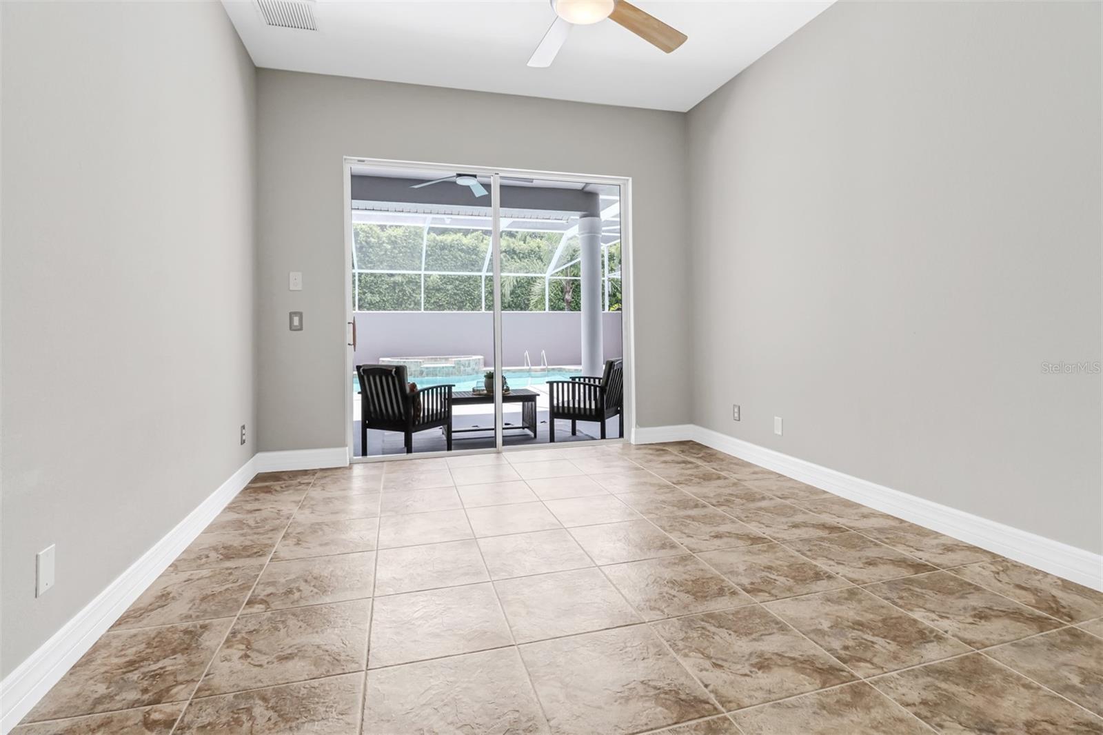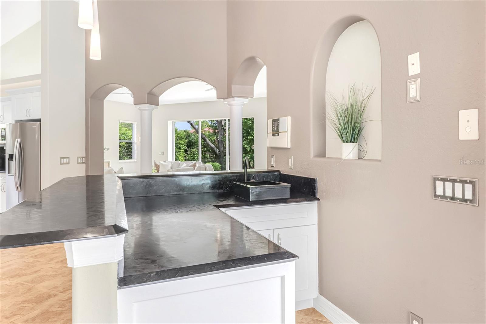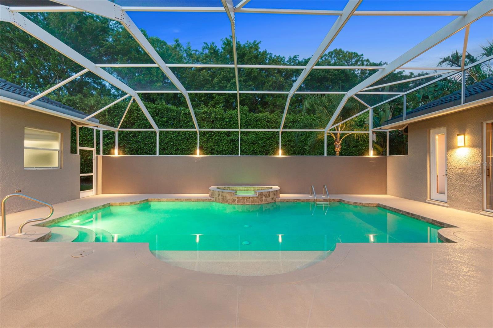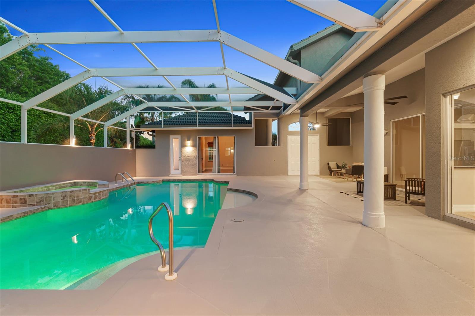 Luxurious Home in the Prestigious Wilshire Lakes Gated Community Welcome to your dream home in the highly desirable Wilshire Lakes community. This exquisite residence welcomes you with a stunning courtyard design, accessible from multiple rooms throughout the home. At its heart lies a serene, lighted, and heated pool and spa with a cascading waterfall—perfect for relaxation or entertaining. The screened courtyard offers both sun and shade, complemented by new pool heating, filtration, lighting, and ceiling fans to create the ultimate year-round oasis. Step inside to discover a beautifully maintained contemporary layout featuring 4 spacious bedrooms and 3.5 baths. The expansive open kitchen impresses with high vaulted ceilings, new cabinetry showcasing rare Brazilian granite countertops with beveled edges, striking hardware and lighting, and a wet bar ideally positioned for conversation. Appliances include a pot-filling tap over the stove, microwave, refrigerator, and new dishwasher, along with a built-in desk area and walk-in pantry for ample storage. Built in 2005, this home boasts abundant natural light through extra windows that frame peaceful views. French doors open from the lanai to a poolside lavatory with artistic tile accents and a pedestal sink. Passing through grand pillars and vaulted ceilings, the living room offers a tranquil retreat with lush privacy landscaping and a lake view backdrop. The primary suite serves as a true sanctuary, featuring an ensuite bath with a tile shower, spa tub, dual sinks, a vanity, a large walk-in closet, a linen closet, and a private water closet. Sliding doors lead directly to the courtyard and a private side porch or dog run. A spacious laundry room with granite countertops, generous cabinetry, washer/dryer, and utility sink connects to the two-car garage, which includes hurricane shutters and attic access. The courtyard also features a private guest cabana or in-law suite with a separate entrance, full kitchenette (stove, refrigerator, sink, and cabinetry), full bath, closet, and its own AC unit—perfect for guests or extended family. The exterior has been freshly painted and professionally landscaped, complete with lighting, new sod in the front and side yards, and a new roof (2019). Located on a private corner lot, this home enjoys low HOA fees, access to “A”-rated schools, and convenient proximity to North Naples shopping, dining, parks, and the beautiful Gulf beaches. Don’t miss the opportunity to experience luxury living at its finest—schedule your private tour of this exceptional Wilshire Lakes home today!