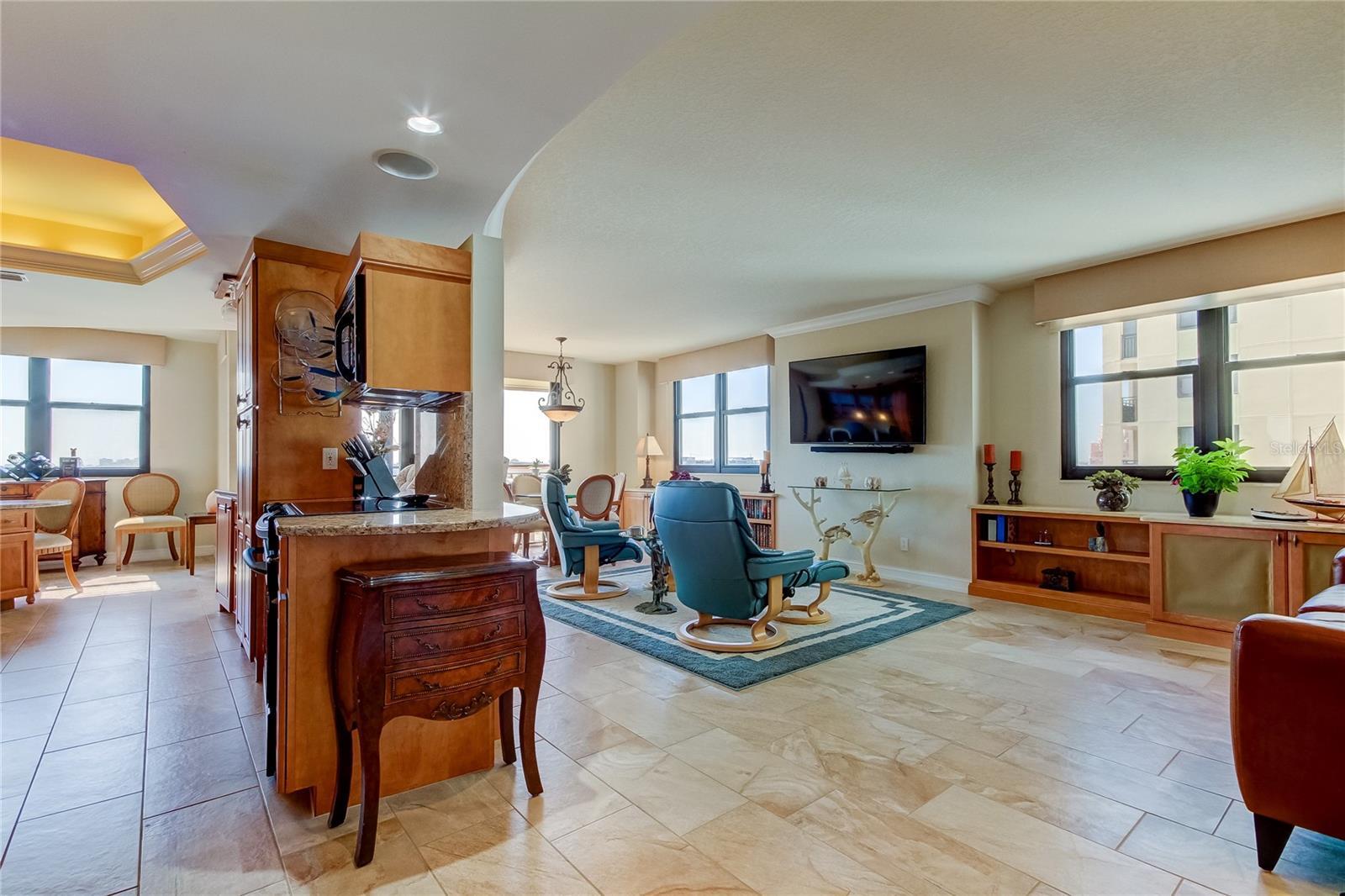 - Built-in Features, Eat-in Kitchen, Living Room/Dining Room Combo, Open Floorplan, Solid Surface Counters, Solid Wood Cabinets, Window Treatments