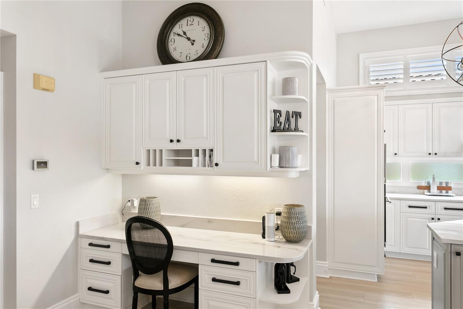 - Built-in Features, Cathedral Ceiling(s), Ceiling Fans(s), Coffered Ceiling(s), Eat-in Kitchen, High Ceilings, Kitchen/Family Room Combo, Primary Bedroom Main Floor, Open Floorplan, Solid Wood Cabinets, Split Bedroom, Stone Counters, Vaulted Ceiling(s), Walk-In Closet(s), Window Treatments