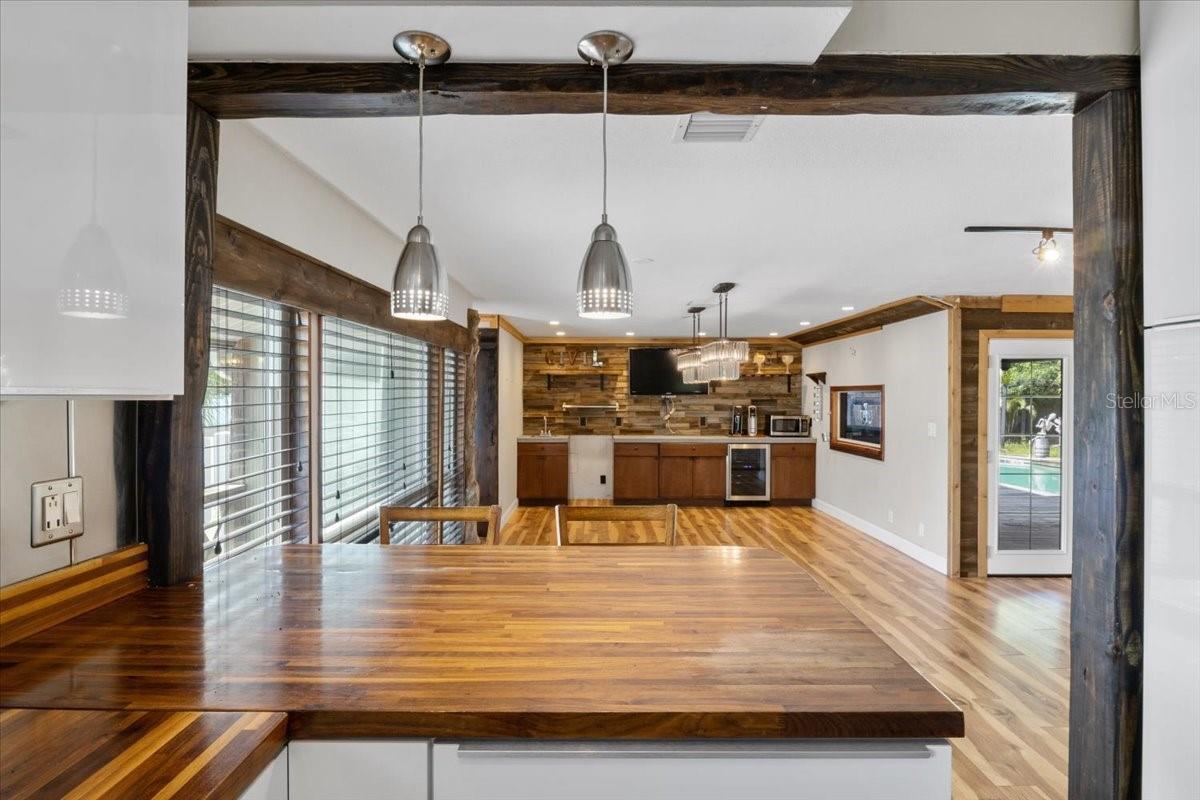 - Ceiling Fans(s), High Ceilings, Kitchen/Family Room Combo, L Dining, Living Room/Dining Room Combo, Open Floorplan, Primary Bedroom Main Floor, Thermostat, Walk-In Closet(s), Wet Bar, Window Treatments