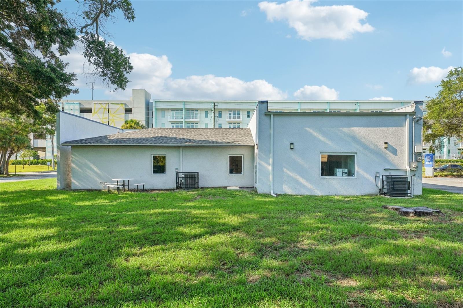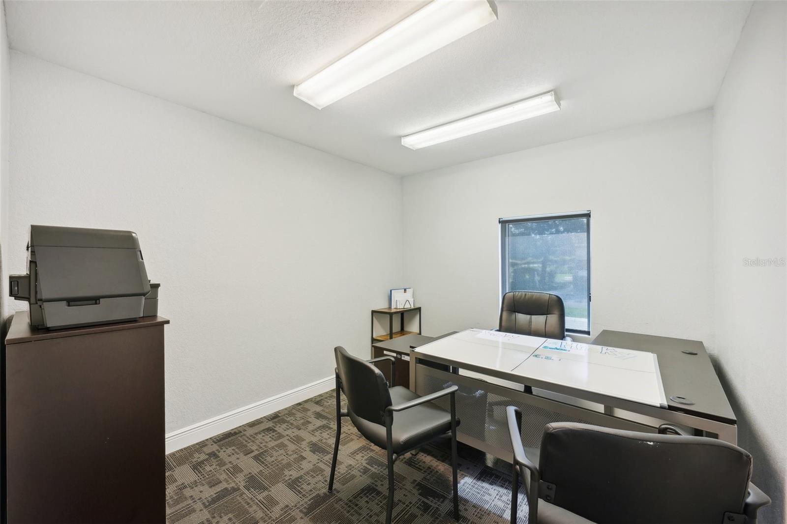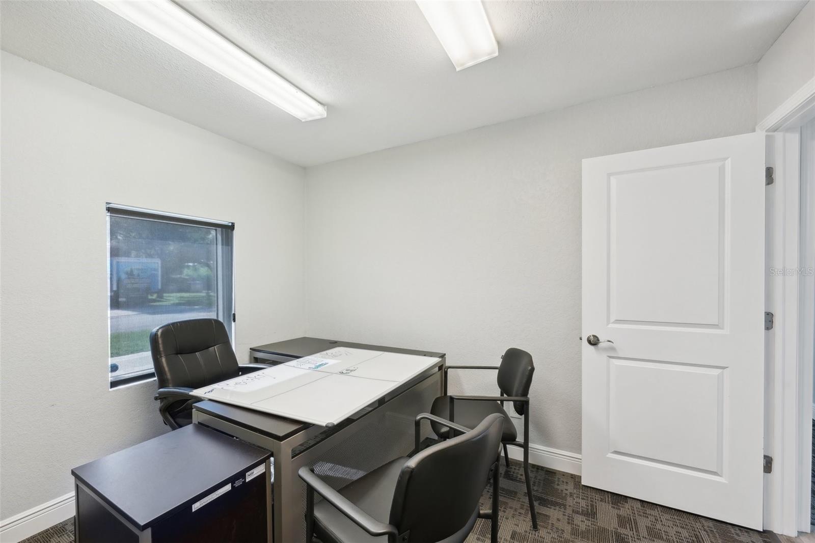Spacious professional office space remodeled in 2017 with modern finishes, tall ceilings, and storm-rated windows. Fully ADA accessible from the street to all interior floor spaces. There are 6 private offices, plus a flex space space with 4 cubicles and room for more. Reception/lobby area, kitchen/break room, network/server room, 2 storage closets, 2 bathrooms, 5 parking spaces and 1 handicap space, rear patio with picnic table. Designed for networks with cables in every office all centralized in the network room. 2 zoned A/C systems. Flood Zone X500. Any professional office user, including attorneys, title companies, accountants, financial advisors, insurance agencies, real estate brokerages and similar users should tour these spaces. Virtual tour available or better yet schedule private showing.