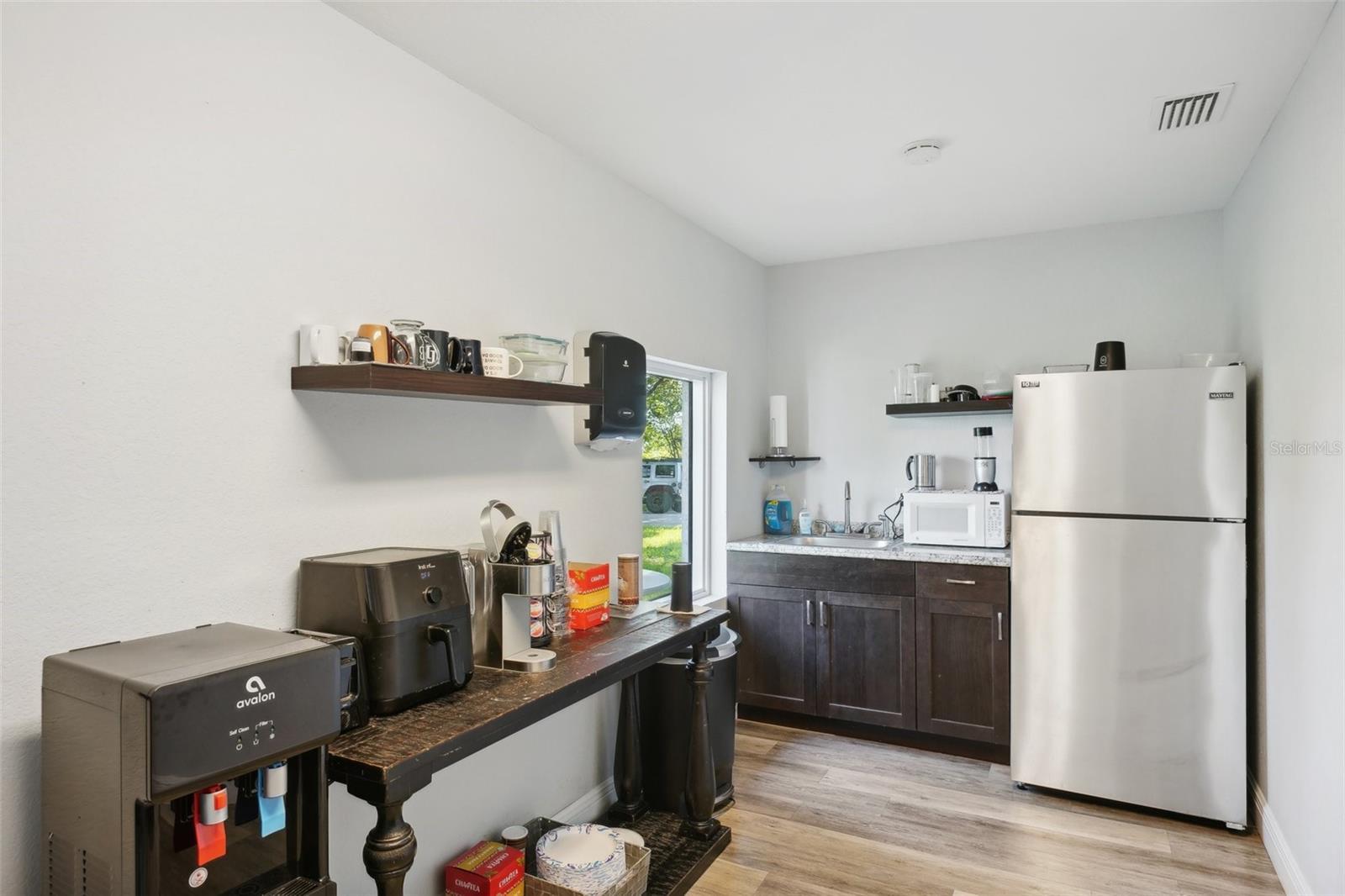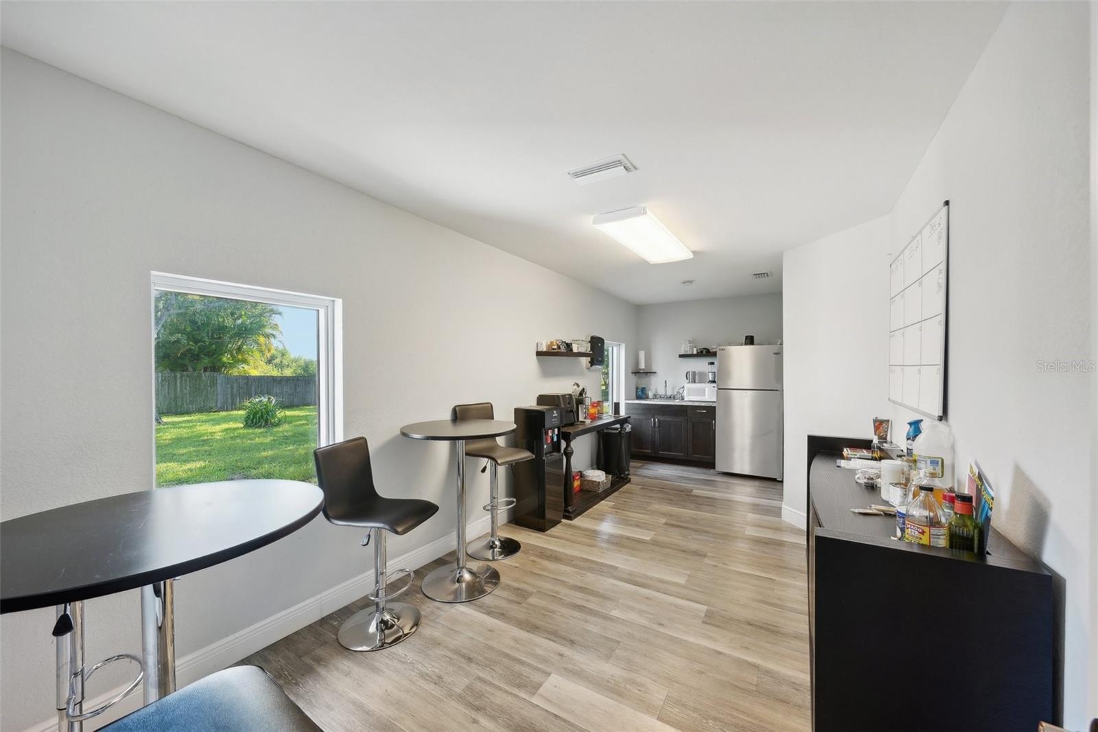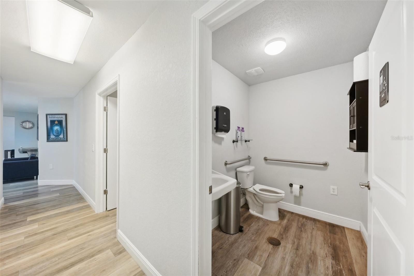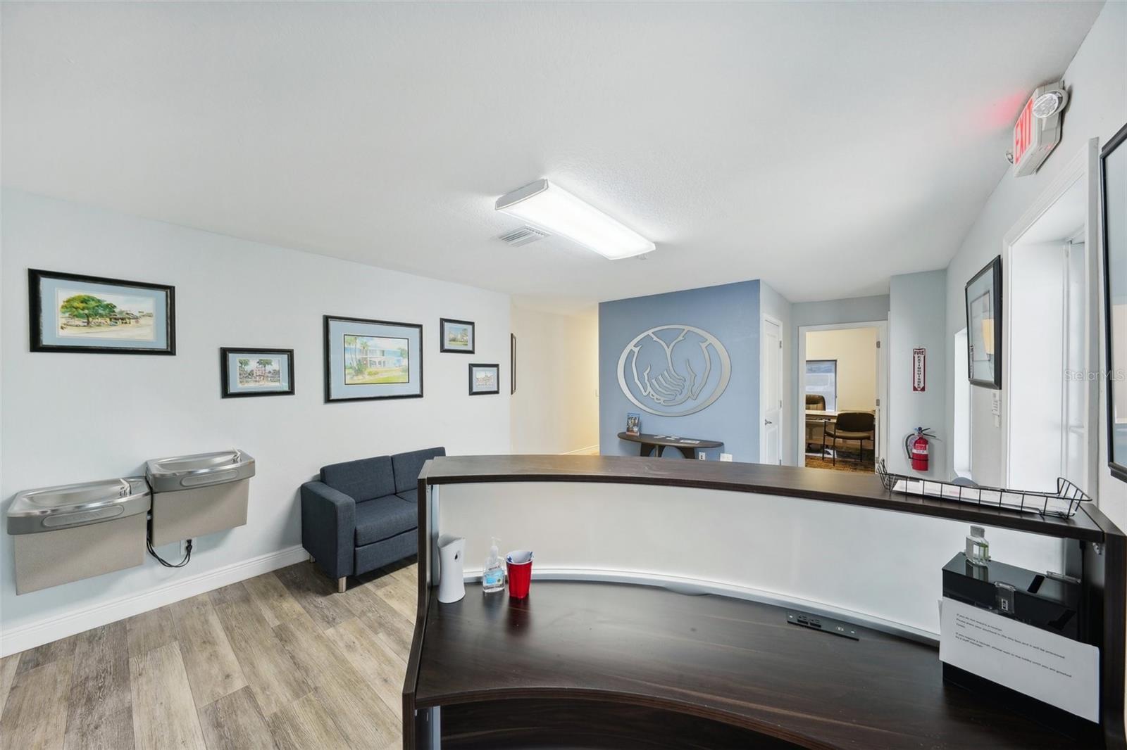 Spacious professional office space remodeled in 2017 with modern finishes, tall ceilings, and storm-rated windows. Fully ADA accessible from the street to all interior floor spaces. There are 6 private offices, plus a flex space space with 4 cubicles and room for more. Reception/lobby area, kitchen/break room, network/server room, 2 storage closets, 2 bathrooms, 5 parking spaces and 1 handicap space, rear patio with picnic table. Designed for networks with cables in every office all centralized in the network room. 2 zoned A/C systems. Flood Zone X500. Any professional office user, including attorneys, title companies, accountants, financial advisors, insurance agencies, real estate brokerages and similar users should tour these spaces. Virtual tour available or better yet schedule private showing.