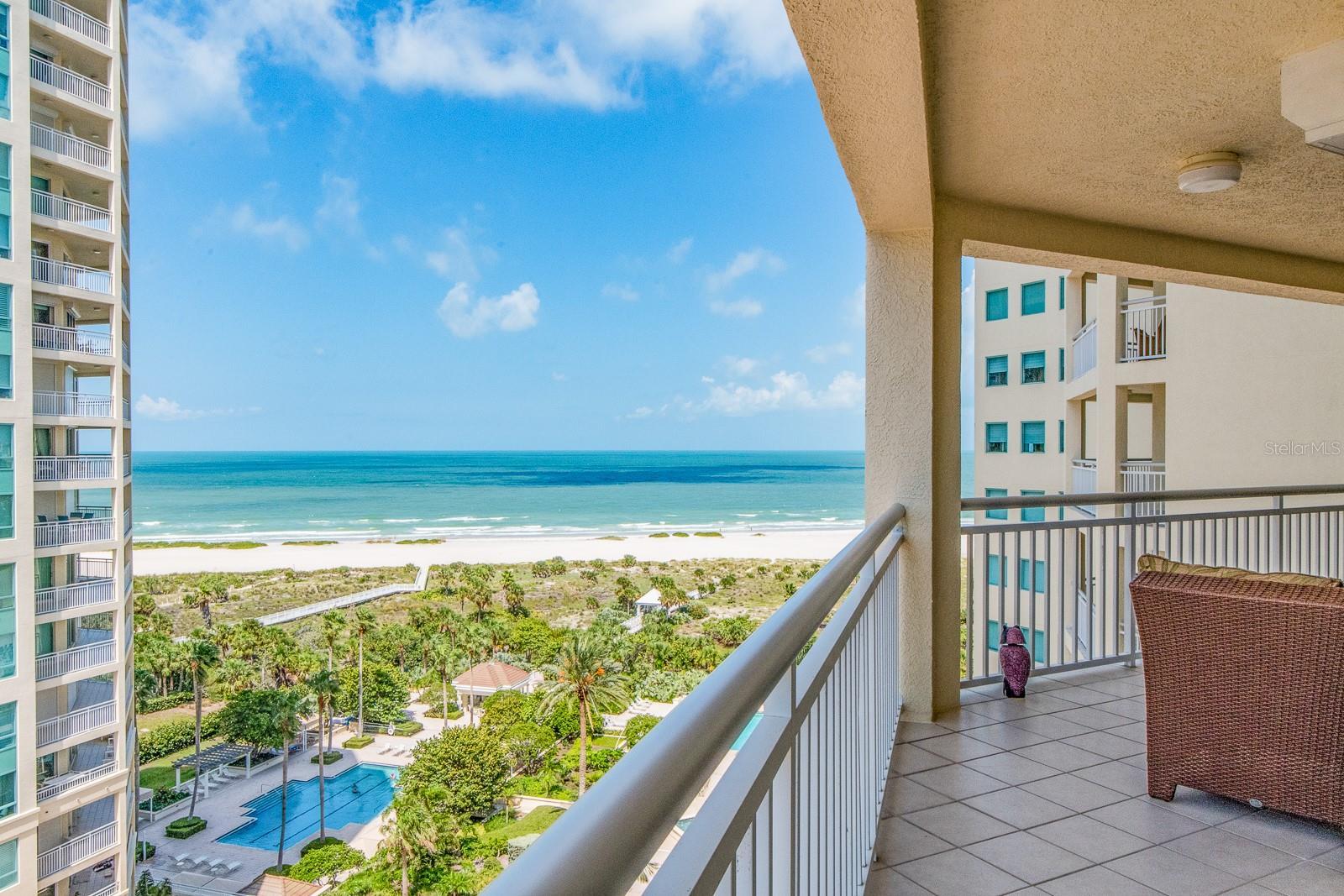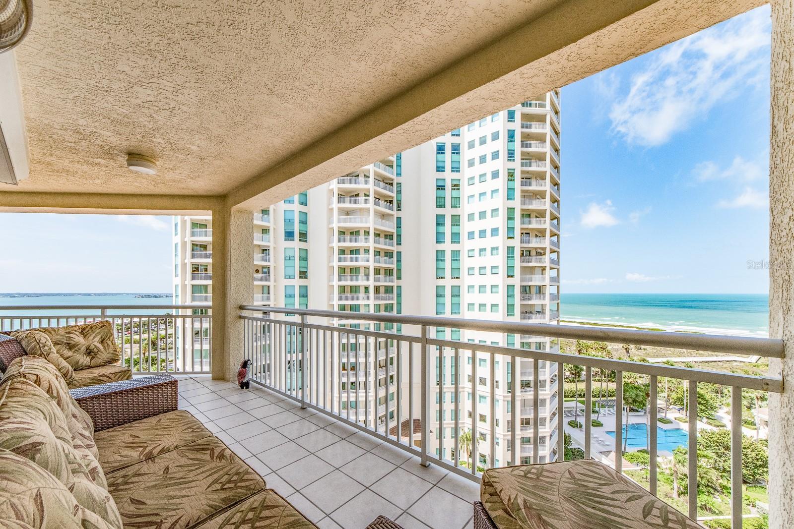 MOTIVATED SELLER, ALL OFFERS WILL BE Considered. TY! WELCOME to one of the most prestigious BEACH FRONT development located in all of Tampa Bay / Clearwater / St. Pete, The GRANDE on SANDKEY. This beautiful, well maintained Southeast corner residence has been recently updated featuring: neutral ceramic tile throughout, solid stone kitchen countertops, solid wood cabinetry, back flow unit installed in kitchen sink, hurricane storm shutters, murphy bed in bonus den room, new AC unit, new water heater, new washer & dryer, & duct work cleaned and disinfected in 2024. Balcony views from the primary bedroom view North Eastward to the intracoastal waterways, Sand Key bridge, Memorial cswy, and Clearwater / Belleair inland. The wrap around balcony (kitchen, living room, bonus room) views span across the intracoastal waterways, main inland, overlooking the pool grounds and out to the open Gulf of Mexico. The Grande's superb amenities include: two swimming pools, large outdoor spa, cabanas, outdoor pavilion for your grilling pleasure, fitness center, tennis courts, spacious social room for gatherings or events, billiard room, concierge services, and 24 hour security. In addition, the Sand Key Plaza (directly across the street) houses small boutiques, several restaurants, and Sand Key Realty. Take a tranquil stroll on Sand Key beach, or travel 1 mile North to visit North Americas #1 beach. As the day comes to a conclusion, you will witness the most serene and majestic sunsets while relaxing by the pool side or your wrapped around balcony. Paradise awaits you at The Grande on Sand Key...