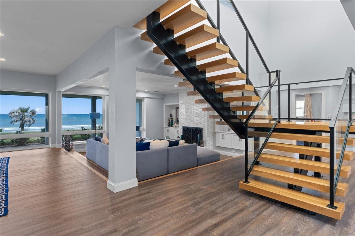 Welcome to your dream oceanfront retreat in Ormond Beach, where luxury meets contemporary elegance in this extensively remodeled haven. Step into over 5000 sq ft of pure opulence, featuring unobstructed direct ocean views that will take your breath away. As you enter, you are greeted by a lavish space adorned with contemporary flair and timeless modern architecture. The main floor beckons with a sunken living room, accentuated by a striking stacked marble fireplace wall with built-ins. Let the floating staircase guide you to the owner's suite sprawling across the entire first floor, offering a sanctuary of luxury like no other. Indulge in wall-to-wall glass that frames the mesmerizing ocean views, allowing you to soak in the stunning vistas and relish the soothing ocean breeze from your private balcony. A colossal walk-in closet, a marble owner's bath with ocean views, and even a convenient laundry room complete the second-floor amenities, ensuring comfort and luxury at every turn. The modern architecture boasts clean, simple lines and a vast open floor plan that exudes sophistication and style. Descend downstairs to discover four guest bedrooms, 2 1/2 baths, an additional laundry room, and an oversized 3-car garage, providing ample space for you and your guests to unwind and enjoy the coastal lifestyle. However, the highlight of this residence lies in the panoramic ocean views and direct beach access that await you. Nestled among other million-dollar homes along a highly coveted stretch of Ormond Beachside, this property promises unparalleled luxury and elegance. If you crave the finer things in life and yearn for a home that embodies true sophistication, look no further. This residence is the epitome of luxury living by the ocean, where every glance outside your window is a reminder of the beauty that surrounds you. Don't miss the opportunity to make this extraordinary property your own. Discover the allure of oceanfront living in Ormond Beach where luxury becomes your lifestyle. Your dream home awaits you, schedule your showing today and step into a world of refined elegance!