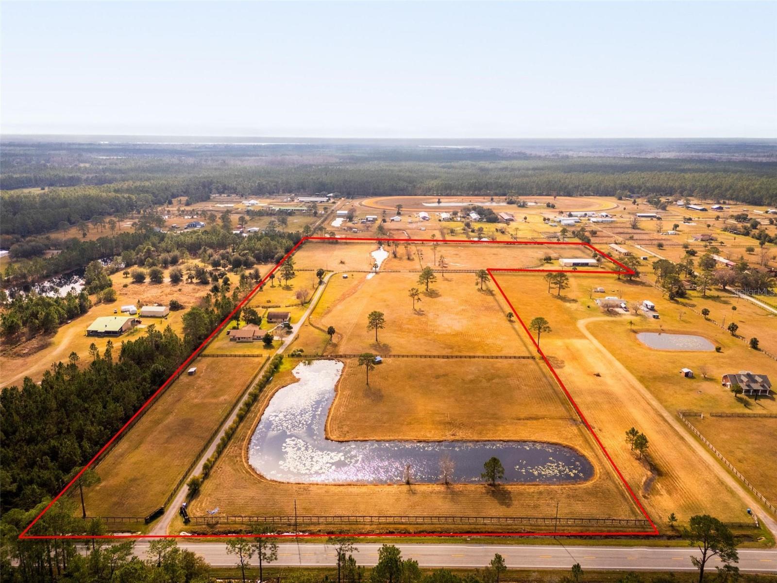 **Sellers are highly motivated-don't miss this opportunity to own a one-of-a-kind property** Discover the perfect blend of modern sustainability and rural charm on this 25-acre farm, designed for equestrian enthusiasts, animal lover and nature lovers alike. This turn-key property offers a beautifully maintained 3-bedroom, 2-bathroom home, two barns, six lush pastures, and a eco-friendly energy system that makes off-grid living a reality during the day. Kubota L3010 GST 4 WD, Loader 6 ft Rotary Bush hog to make maintaining the open paddocks easier. Two Barns- 60x96 and 30x40 with stalls. Storage and room for equipment. 2 paddocks with run in sheds, one with a 12x6 shed Both Barns have a 1/1 apartment with kitchen and living room. Solar-powered efficiency- 28 solar panel provide daytime off-grid electricity for the home and one apartment. Advanced climate control- a heat and cooling transfer system utilizing the 1.5- acre pond and fountain for energy efficiency. Whether you're looking for a private equestrian retreat, sustainable farm living, or an investment opportunity, This property is a rare find with its modern amenities, energy independence, and premium equestrian facilities. Located in North Central Florida, near boating, fishing, and outdoor recreation, this farm offers serenity and convenience just minutes from town.