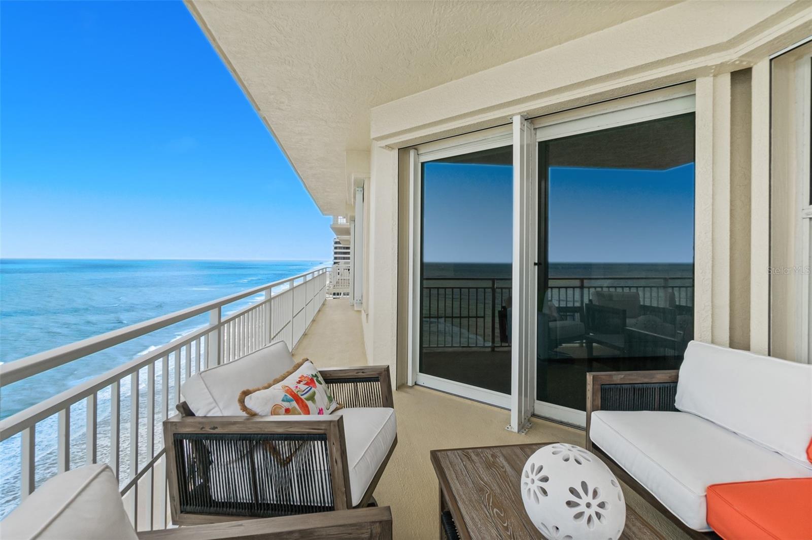 THE 17TH FLOOR ELEVATION IS BEAUTIFULLY POSITIONED AND RINGED BY OEAN VIEWS! THE CURRENT OWNERS PERSONALIZED THE SPACE TO TAKE ADVANTAGE OF THE UNSPOILED VIEWS AND THE INDOOR-OUTDOOR LIFESTYLE. THE COLOR PALETTE PROVIDES A CREATIVE SPIRIT THAT OFFERS AN INTANGIBLE ASSET IN THE HOME'S CREATIVE ENERGY. THE UPGRADED OCEANFRONT HOME MEASURES 2,433 SQ FT. PLUS MULTIPLE BALCONIES. THE GREAT ROOM FEATURES WALLS OF GLASS, DECORATOR LIGHTING AND BALCONY ACCESS. THE GOURMET CHEF'S KITCHEN IS EQUIPPED WITH TOP-OF-THE-LINE APPLIANCES, STONE COUNTERS, A MOSAIC TILE BACKSPLASH, A BREAKFAST NOOK AND GENEROUS PANTRY. YOU'LL BE IMMEDIATELY STRUCK BY THE WARMTH OF THIS CORNER CONDOMINUM HOME, WITH ITS LIGHT FILLED ROOMS, AS WELL AS THE IMPRESSIVE VIEWS. EQUALLY IMPRESSIVE IS THE PRIVACY, WITH A SECURE ACCESS ELEVATOR, AND SEMI PRIVATE ELEVATOR VESTIBULE AND EVERY WINDOW AND DOOR FACING THE WATER VIEWS. THIS PROPERTY IS MOVE-IN READY AND DELIVERED FULLY FURNISHED IN A RANGE OF COASTAL ELEMENTS. LOCATED WITHIN WALKING DISTANCE TO STORES AND RESTAURANTS MINUTES TO THE AIRPORT AND DIRECTLY ON THE SANDS OF THE ATLANTIC OCEAN. THE COMMUNITY OFFERS A STRENGTH TRAINING CENTER AS WELL AS A CARDIO FITNESS ROOM, A THEATRE ROOM, A SOCIAL ROOM AND A BEAUTIFUL OCEANFRONT SWIMMING POOL & SPA. RIDING BIKES ALONG THE BEACH OFFERS A FRIENDLY VIBE AND EXCHANGING GREETINGS WITH OTHER BEACH LOVERS. MILES OF JET LINER VIEWS IN ULTIMATE LUXURY IS WAITING FOR A NEW OWNER.