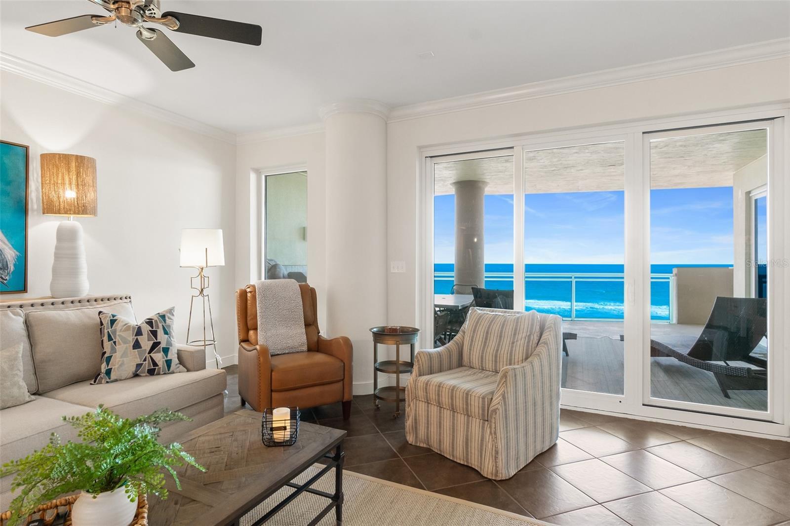 DISCOVER THE THRILLING ALLURE OF COASTAL LIVING WITH THIS ICONIC, *HGTV-WORTHY* OCEANFRONT PROPERTY! IMMERSE YOURSELF IN A STUNNING DESIGN THAT PERFECTLY COMBINES THE INVITING WARMTH OF A *COASTAL FARMHOUSE* WITH THE VIBRANT ENERGY OF DAYTONA BEACH SHORES. *THIS RESIDENCE GRANTS YOU THE OPPORTUNITY TO PURCHASE A BUSINESS WITH WEEKLY RENTALS ALREADY IN PLACE. ($66K NET) OR ENJOY IT AS AN EXCLUSIVE OASIS. ** OFFERING A FULLY FURNISHED INTERIOR, THE HIGHLY COVETED LAGUNA FLOOR PLAN BOASTS 3 BEDROOMS AND 3.5 BATHROOMS WITH A SPACIOUS 2,848 SQUARE FEET OF LIVING AREA. SHOWCASING ONE OF THE LARGEST OCEANFRONT BALCONIES ON THE BEACH. PLUS, A RIVERFRONT BALCONY TO ENJOY THE SUNSETS. YOUR SEMI-PRIVATE ELEVATOR BRINGS YOU TO YOUR PERSONAL DESTINATION, WHICH ENSURES EXCLUSIVITY AND PRIVACY. STEP INTO THE GRAND ENTRANCE COMPLIMENTED BY A PRESIDENTIAL DOUBLE DOOR FOYER WITH ROTUNDA, CURVED WALLS, AND DESIGNER NICHE OUTFITTED WITH SHIP-LAP FEATURE WALL. DINNER PARTY READY, THE SOFT COLOR PALATE, AND TOUCHES OF NATURAL WOOD TONES ALLOW THE OCEAN VIEWS TO TAKE CENTER STAGE FROM THE LIVING ROOM/DINING ROOM. THE LARGE TRESTLE FARMHOUSE TABLE MELDS PERFECTLY WITH THE FLANKED WINDSOR CHAIRS. WHILE THE GLISTENING LIGHT OF THE CANDELABRA IN A RECTANGULAR OPEN FLAME CHANDELIER INCORPORATES BEACHFRONT SIMPLICITY ACCENTED AGAINST A GLAM MIRROR. THE SPACIOUS LIVING ROOM IS BEAUTIFULLY APPOINTED WITH A FIREPLACE ADORNED WITH A QUARTZ SURROUND AND A CONTEMPORARY INSERT WITH FIRE GLASS DIAMONDS. GET COZY ON THE COUCH AND TAKE IN THE INVIGORATING OCEAN VIEWS AS THE WALL OF GLASS REFLECTS ONTO THE COASTAL WORLD OF PALM TREES AND OCEAN WAVES WHERE THE TROPICAL ISLAND TAKES YOU AWAY TO PARADISE! THE KITCHEN IS NICELY APPOINTED WITH FINE EUROPEAN CABINETRY ACCENTED WITH CALACATTA VALENTIN QUARTZ COUNTERS WITH SUBTLE VEINING AND A CRISP BACKGROUND. THE SHINY SUBWAY TILE BACKSPLASH PLAYS NICELY AGAINST THE DARK CABINETS. STAINLESS PULLS, TOP-OF-THE-LINE FISHER & PAYKELL DISHWASHER DRAWERS, STAINLESS STEEL APPLIANCES, AND A WINE FRIDGE MAKE THIS CHEF-INSPIRED KITCHEN A DREAM TO ENTERTAIN IN. FOR ADDED CONVENIENCE, THE KITCHEN CORRIDOR OFFERS A SIDE ENTRY OR EXIT WITH ACCESS TO A SECOND ELEVATOR. (1 of 3 elevators within range). THE PRIMARY BEDROOM IS AN IDEAL RETREAT WITH CAPTIVATING OCEAN VIEWS AT EVERY TURN AND AN UPSCALE APPEAL WITH HIGH CEILINGS, CROWN MOULDING, DOUBLE DOOR ENTRY, AND OCEAN VIEWS ON FULL DISPLAY. RUSTIC INSPIRED FLOORING SET AGAINST THE MONOCHROMATIC FURNISHINGS MAKE THIS A LUSH OASIS. THE PRIMARY BATH FEATURES A LARGE SUMPTUOUS SOAKING TUB, DOUBLE VANITY, DUAL SHOWER HEAD, AND SPA-INSPIRED FINISHES. TWO ADDITIONAL BEDROOMS WITH ENSUITE ON THE WEST WING WITH BALCONY PROVIDE INTRACOASTAL VIEWS, *MAKING THIS FRONT TO BACK FLOOR PLAN THE MOST DESIRABLE IN THE BUILDING!* PRIVATE COVERED BALCONY WITH KENYON GRILL MAKES A WONDERFUL SUMMER KITCHEN. THIS PERSONAL SANCTUARY INCORPORATES PICTURESQUE VIEWS, BALMY BREEZES, AND SYMPHONIES OF LAPPING OCEAN WAVES. LAUNDRY ROOM ON THE WEST WING WITH SAMSUNG FRONT LOAD WASHER AND DRYER WITH PEDESTALS, SINK, AND EXTRA CABINETRY. THE AMENITIES ARE TOP-NOTCH AT OCEAN VISTAS! HEATED OCEANFRONT POOL, 400-FOOT BEACHFRONT SUNDECK W HOT TUB, FIRE PIT, LUSH GROUNDS, AND FOUNTAIN. 5-STAR CLUB ROOM WITH BILLIARD TABLE, FIREPLACE, KITCHEN, ELEVATED SUNDECK ADJACENT TO CLUBROOM, STATE-OF-THE-ART FITNESS CENTER, AND A TOP-NOTCH LIFESTYLE! All information deemed to be accurate but should be verified.
