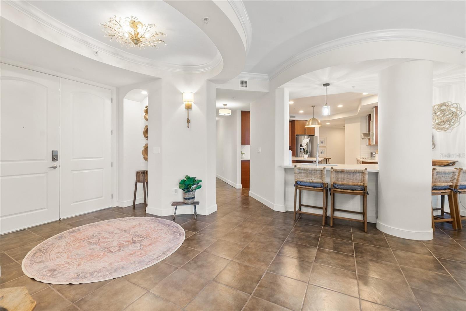 - Coffered Ceiling(s), Crown Molding, Elevator, High Ceilings, L Dining, Open Floorplan, Primary Bedroom Main Floor, Solid Surface Counters, Solid Wood Cabinets, Split Bedroom