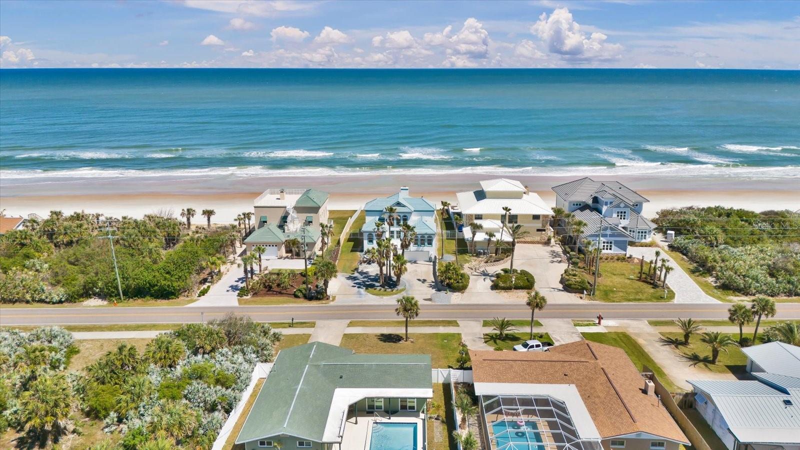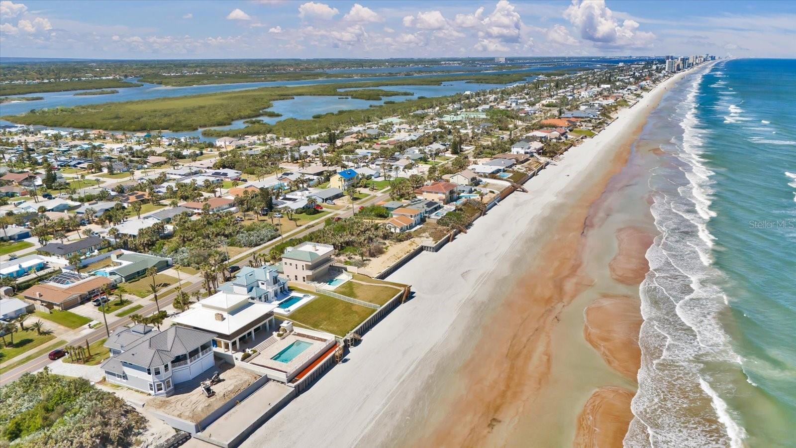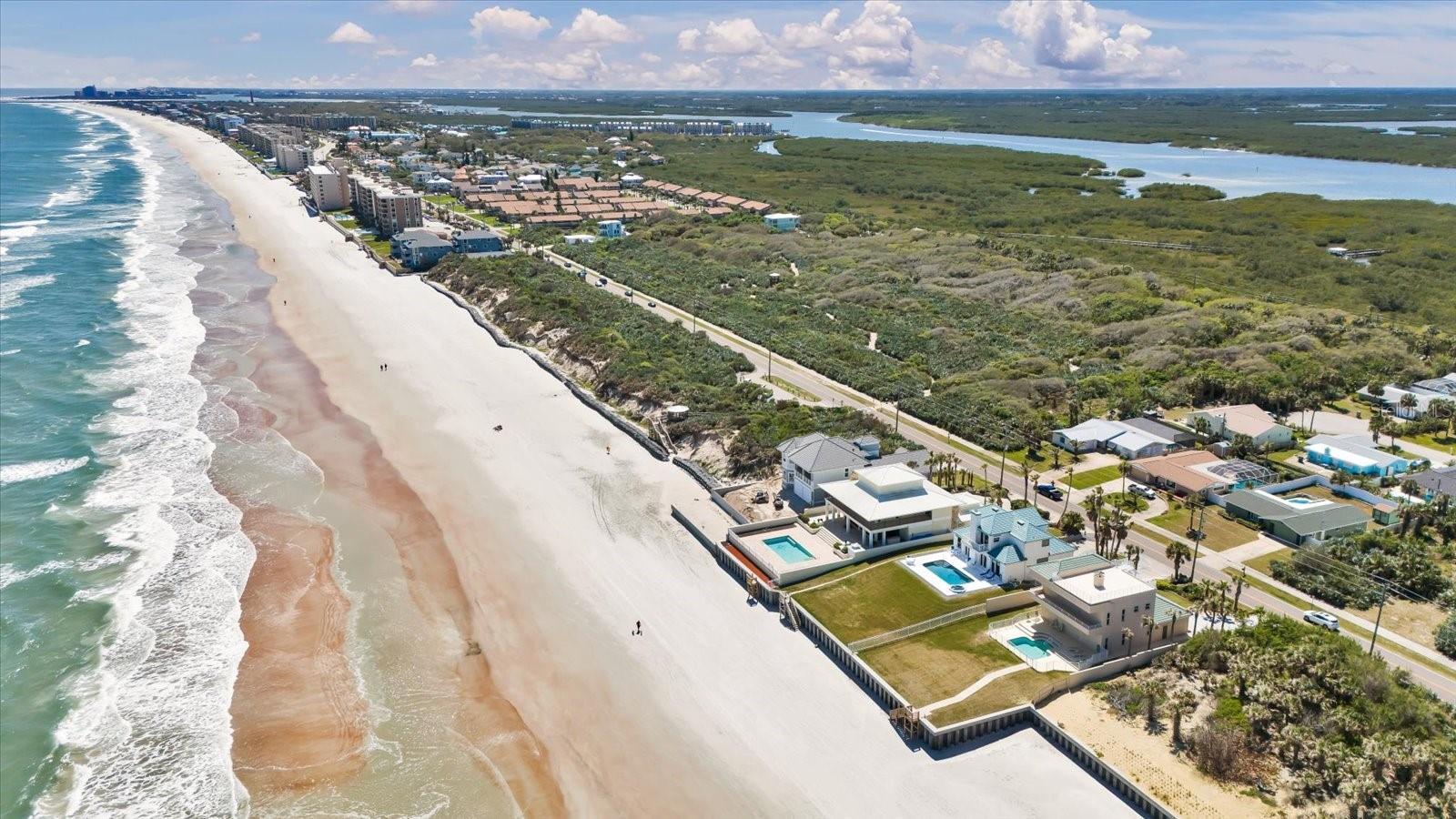 One or more photo(s) has been virtually staged. Oceanfront Luxury in Ponce Inlet! This stunning 3-story Home sits high on the coastline along a pristine no-drive beach, offering panoramic ocean and river views. Designed for elegance and durability, this home features a tile roof, soaring ceilings, spacious bedrooms, a 2-car garage, and a sparkling oceanfront pool. The Entire top floor is dedicated to the Luxurious Master suite, boasting Breathtaking Ocean and River views, a spa-like bath, and a Custom Closet. A Private Mother-in-law suite/guest quarters offers flexible living space. The Property is Protected with a Double seawall, standing 10 feet high and linked with neighboring properties for superior coastal defense. Additionally, Ponce Inlet beach is scheduled for Enhancement by Volusia County, Enhancing the shoreline and providing long-term protection for this oceanfront property. Just minutes from Waterfront dining, Fishing, and the Ponce Inlet Light House.