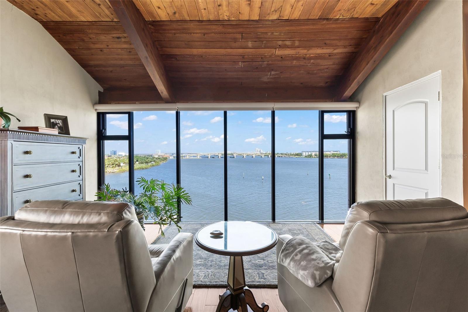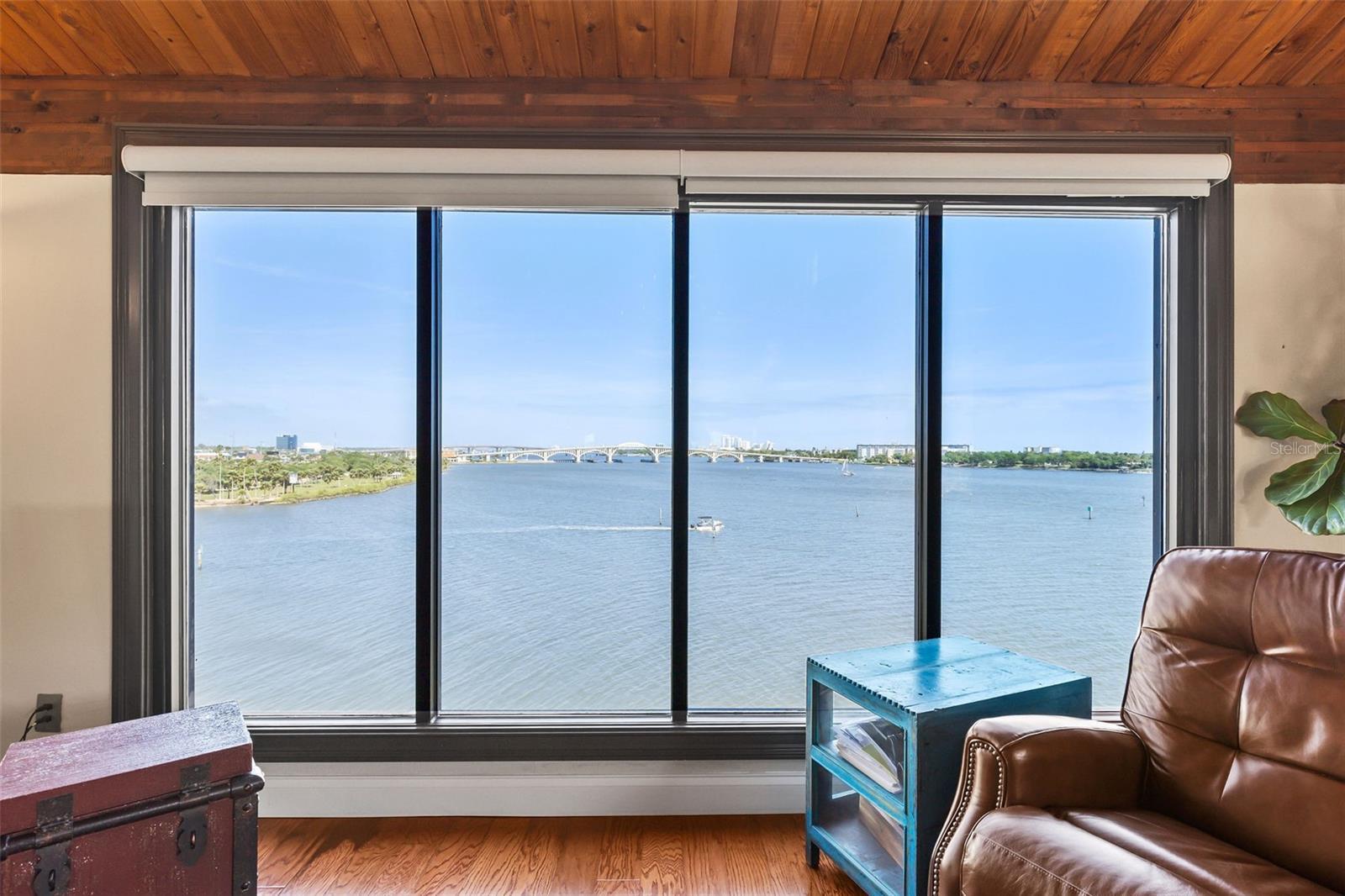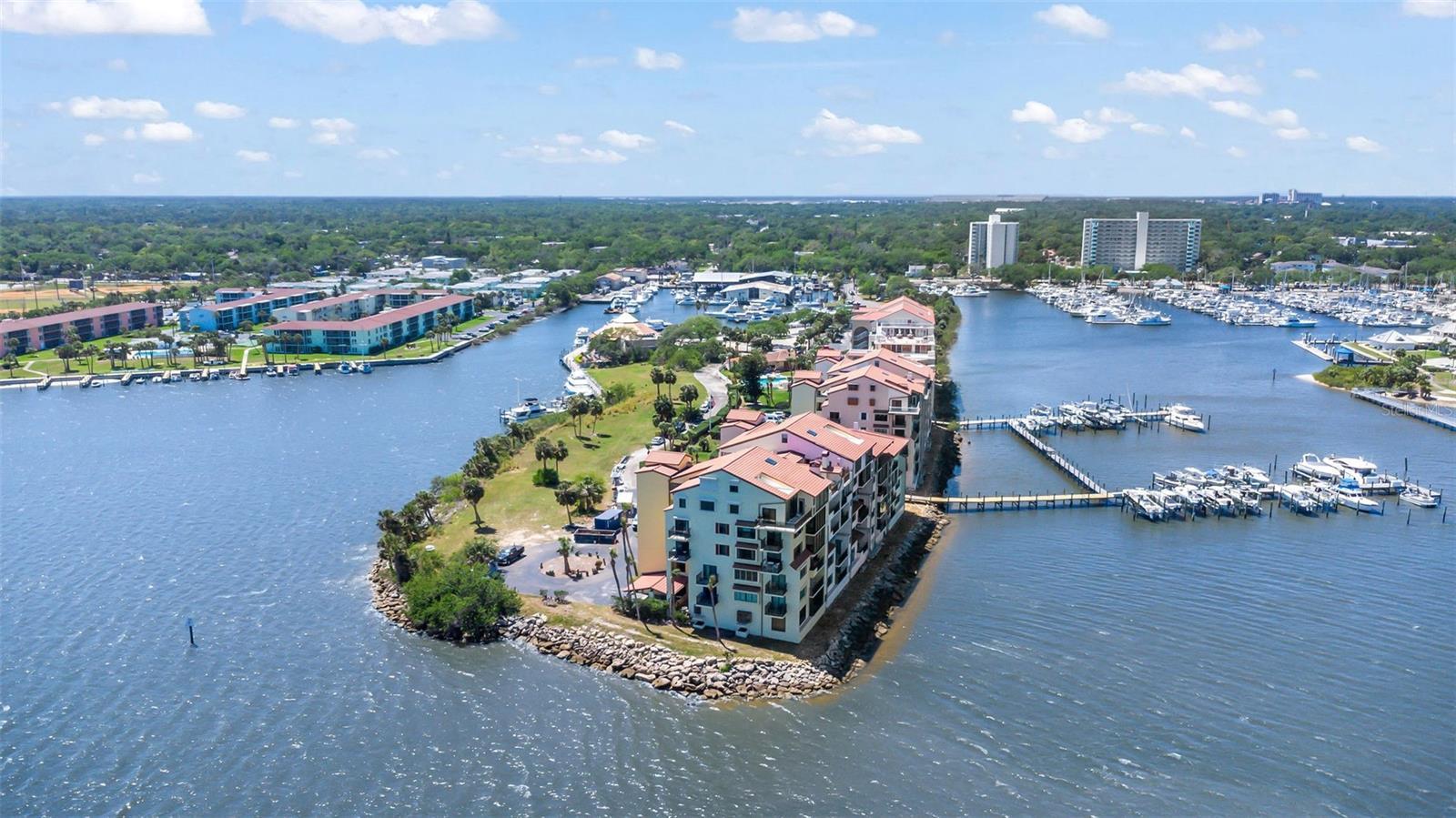 Every once in a while, a property comes along that is so elegant and grand it completely exceeds all expectations. This is one of those rare occasions. This condo unit has undergone a spectacular renovation that spanned several years, and it is now a complete showcase of elegance, style, and grace. Coined as 'nautical Mediterranean' in concept, this is a stunning penthouse until with unbelievable views, and offering tremendous space and comfort. Add to this the renovations the facility has undergone as a whole ($4 million in capital improvements to the roof, exterior structures, waterproofing, pool, parking areas, and more) and you will not have to do anything in Marina Point for decades to come. Adorning the Halifax River and Intercoastal Waterway is this very spacious three-bedroom, three-bath residence that features multiple outdoor terraces for dining and entertaining, as well as the full enjoyment of a private peninsula. You will be greeted by magnificent entry doors and beautiful, warm wood floors, a fully renovated kitchen with expansive cabinet space, stainless steel counters, stainless appliances, and a custom window with amazing south-facing views of the Intracoastal. The kitchen has an eat-in area, and is open to the main living space with its floor to ceiling views of the Silver Beach Bridge, which is a sight to behold at night. You can step onto the large outdoor terrace (which also features a custom picture window for additional light) where you can enjoy dinner and cocktails under a serene breeze and watch the boats going by. This terrace is large enough for entertaining all of your guests in front of the outdoor fireplace, while you dine and watch the sunset. There are three large bedrooms, each with an en suite, extensively renovated bath, an in-unit laundry room with plenty of space for folding and for storage, and several large closets within every bedroom. The primary suite also features floor to ceiling windows with a direct view of the Halifax River/Intracoastal Waterway. The loft provides ample space for reading, playing games, enjoying family time, and also contains a large closet for storage of personal items, photos and more. A second interior story guest room and private bath make hosting guests a true pleasure. Within this community you can enjoy a recently renovated pool, dog walking areas, full river views, views of the magnificent Silver Beach Bridge, boat slips that are managed by the association and available on an first-come, first-serve basis, and the Chart House, for dinner and drinks, which is only a short walk away. Nearby you will enjoy the Esplanade Park, downtown Daytona Beach's many restaurants, shops and conveniences, and the beautiful beach, which is only a five-minute drive. This home is only one mile to Jackie Robinson Historic Ballpark, and less than five miles to the Daytona International Speedway, the Daytona Beach International Airport, I-95, and the shoppes of One Daytona. The Milestone and SIRS Reports are completed and available upon request. All information taken from the tax record, and while deemed reliable, cannot be guaranteed.