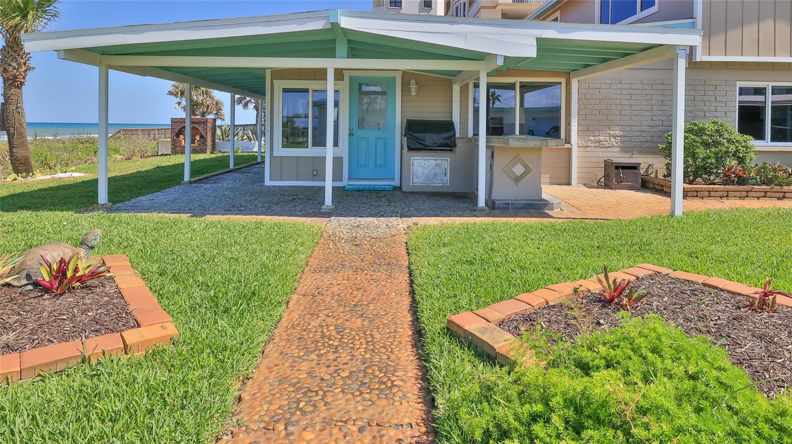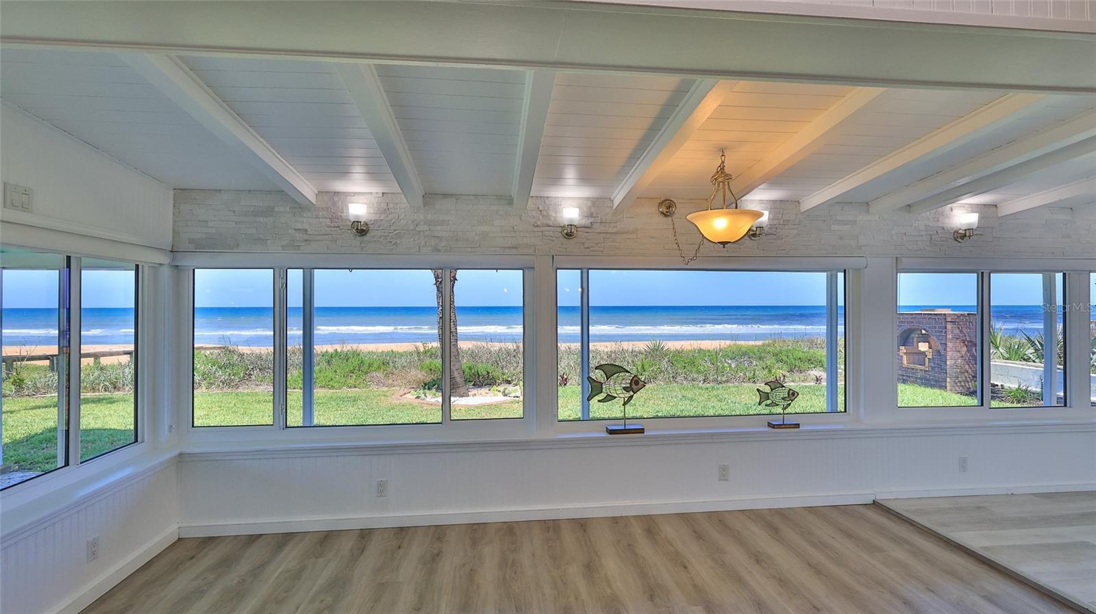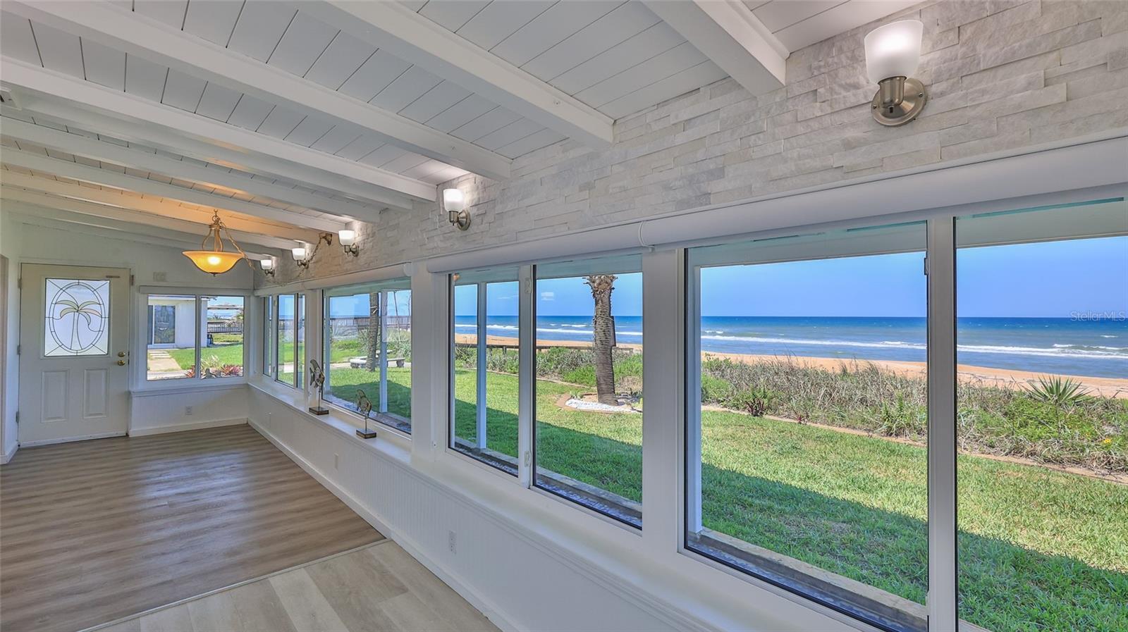 One or more photo(s) has been virtually staged. Oceanfront Serene Two Story Coastal Home. This home is thoughtfully offered at its "recent independent appraised value" to provide buyers a transparent and data backed opportunity on a truly exceptional oceanfront retreat. Indulge in the unmatched elegance of direct oceanfront living in this wonderful two story coastal haven, where every detail has been thoughtfully curated to enhance comfort, beauty and tranquility. Nestled along one of Florida’s most pristine stretches of shoreline, this serene residence offers a front row seat to endless Atlantic views, golden sunrises and the soothing rhythm of rolling waves. Enter a luminous coastal sanctuary where hurricane rated windows showcase panoramic ocean vistas and bathe the interior in radiant natural light. A dramatic expanse of glass spanning both floors blurs the boundary between indoors and out, creating an immersive connection to the sea. Anchoring the home is a classic spiral staircase that creates a graceful transition to the upper level, where the views become even more captivating. The open concept layout is designed for modern coastal living and features wood look flooring, elegant quartz countertops and a sleek Whirlpool stainless steel appliance package. A welcoming breakfast bar connects the kitchen and living space and is ideal for casual meals or gatherings. The living room centers around an electric fireplace that adds warmth and ambiance as you enjoy the ocean backdrop. Upstairs you will find a spacious bonus room that can be used as a home office, guest suite, media room or private retreat. The beautifully appointed oceanfront bedroom embraces the breathtaking setting with walls of glass and endless views. Every space is filled with natural light and oriented toward the spectacular ocean panorama, whether you are relaxing indoors or unwinding on your private porch with the salt kissed breeze. Step outside to discover an outdoor kitchen area that is perfect for al fresco dining and entertaining just steps from the shore. For added peace of mind and everyday convenience, this home includes a newer roof from 2017 and an upgraded air conditioning system from 2021, an Energy Smart hot water heater for enhanced efficiency, private beach access with a dedicated walkway, a durable sea wall for shoreline protection, luxurious quartz surfaces and refined coastal finishes throughout, and generous storage for all your coastal lifestyle needs. This is more than a home. It is a lifestyle of serenity, sophistication and reward. Every sunrise feels like a personal gift and every evening is a celebration of the ocean’s timeless beauty. If you have ever dreamed of owning a coastal sanctuary, this is your moment.