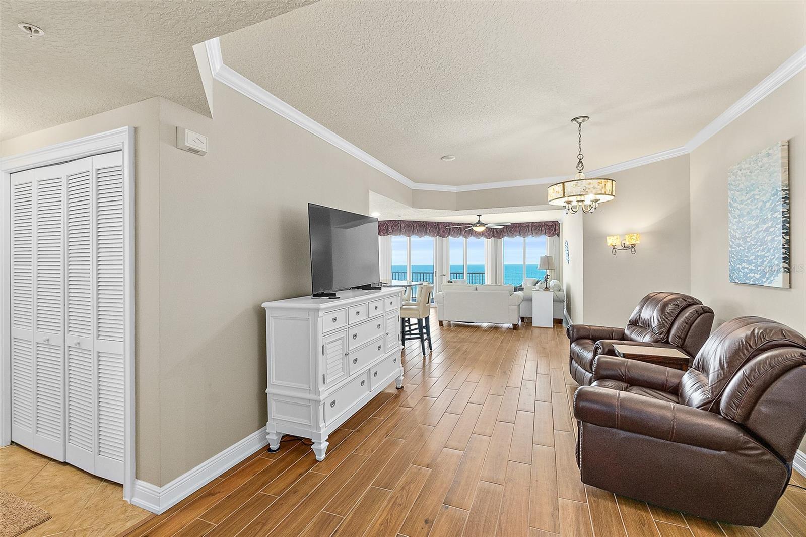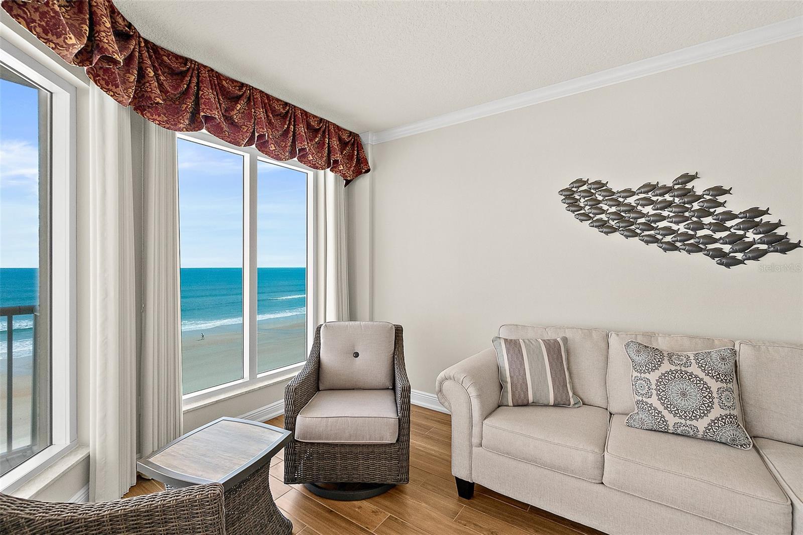 OCEANFRONT SOPHISTICATION AT TUSCANY SHORES- A RARE COASTAL MASTERPIECE. A PRIVATE OASIS OF LUXURY AND ENDLESS OCEAN VIEWS. AN EXCLUSIVE CORNER CONDOMINIUM HOME WHERE REFINED ELEGANCE MEETS CONTEMPORARY COMFORT. JUST UNDER 2500 SQ FT OF METICULOUSLY DESIGNED LIVING SPACE, ENVELOPED IN FLOOR-TO-CEILING GLASS, THIS ELEVATED HAVEN FRAMES BREATHTAKING, PANORAMIC VIEWS. SUNRISES PAINT THE HORIZON IN SOFT PASTELS, WHILE RHYTHMIC WAVES PROVIDE A SERENE, EVER-CHANGING SCENERY TO BEACH LIFE. A SECURED SEMI-PRIVATE ELEVATOR SETS THE TONE OF PRESTIGE AND TRANQUILITY THAT DEFINE THIS REMARKABLE HOME. EVERY DETAIL HAS BEEN THOUGHTFULLY CURATED TO MAXIMIZE OCEAN VIEWS. THE OPEN-CONCEPT LIVING AND DINING AREAS ARE BATHED IN NATURAL LIGHT WITH EXPANSIVE WALLS OF GLASS MAKING THE CONTINUOUS BLUE WATERS OF THE ATLANTIC CENTER STAGE. COASTAL TILE FLOORING EXTENDS THROUGHOUT THE MAIN LIVING AREAS, REFLECTING THE SHIFTING HUES OF THE WATER, WHILE PLUSH CARPET IN THE BEDROOMS PROVIDE A SOFT RETREAT. THE CHEF'S KICHEN IS A MASTERPIECE OF FORM AND FUNCTION, FEATURING A SEAMLESS FLOW INTO THE LIVING AND DINING AREAS. THE SPACIOUS PRIMARY SUITE SHOWCASES UNINTERRUPTED SUNSET VIEWS OVER THE RIVER. THE ENSUITE BATH IS A STUDY OF ELEGANCE WITH A LUXURIOUS SPA-LIKE TUB AND SHOWER. AN OVER-SIZED WALK-IN CLOSET IS EVERYTHING YOU WOULD HOPE FOR IN A CLOSET AND MORE. A LIFESTYLE DEFINED BY UNPARALLELED OCEANFRONT LUXURY AWAITS. THE SHIMMERING OCEANFRONT SWIMMING POOL INVITED YOU TO LOUNGE BENEATH THE SWAYING PALMS. TENNIS, PICKLEBALL AND GOLF ARE STEPS AWAY. LUXURY ISN'T JUST A LIFESTYLE - IT'S A STATE OF BEING.