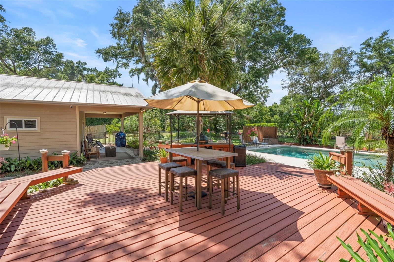 TWO PARCELS – OVER 20 ACRES – INCOME-PRODUCING GRAPE FARM WITH RESIDENCE, RETAIL SHOP & AGRICULTURAL EXEMPTION A rare opportunity to own land, residence and ESTABLISHED YOU-PICK BUSINESS AND VINYARD in De Leon Springs—1056 & 980 Reynolds Rd—offering residential comfort, active farming, and retail potential in one unique package. ----1056 REYNOLDS RD – 7.25 Acres (Set Back from Road)----: Privately tucked away from the street, this updated ranch-style home features 4 bedrooms and 4 bathrooms, including a fully FINISHED BASEMENT with two bedrooms, a bathroom, and a living room. Upstairs offers a spacious living room with high ceilings and a classic wood-burning BRICK FIREPLACE, two bedrooms, two bathrooms, kitchen, dining area, and laundry. Step outside to a wood deck overlooking a 9.5-ft deep inground POOL. The property includes multiple outbuildings—a POLE BARN, DIESEL GENERATOR, WORKSHOP, diesel generator shed—and a detached garage with its own bathroom and a finished MAN CAVE WITH BAR. The lot is oversized, level, and fully fenced, with a dedicated dog run. The house has double-pane insulated windows for energy efficiency. Built in 1973, the home has been modernized over the years while maintaining its rural charm. ----980 REYNOLDS RD – 13.18 Acres (Frontage on Reynolds Rd)----: Positioned with direct street frontage, this parcel operates as the public-facing side of the grape farm, complete with a nostalgic retail and tasting shop where customers can check out after picking grapes, and enjoy home-made grape jelly and popsicles. A large pole barn, workshop, and carport provide ample storage and workspace. Approximately five acres are fenced and used for cattle, supporting the agricultural exemption. The entire lot is high and dry (not in a flood zone) and fully fenced for security. COMBINED PROPERTY FEATURES: ** Total of 20.43 acres (7.25 + 13.18) ** Two parcels sold together—live on one, operate on the other ** Fully fenced, gated, and agriculturally exempt ** Updated 4BR/4BA home with pool, fireplace, and basement ** Income-producing grape farm with retail/tasting operation ** Multiple barns, sheds, workshops, and storage buildings ** Private living with road-front visibility for business ** Zoned for agricultural use and farm animals and hobby farming This is a versatile and truly special offering—ideal for anyone seeking space, privacy, and business potential in a peaceful rural setting.