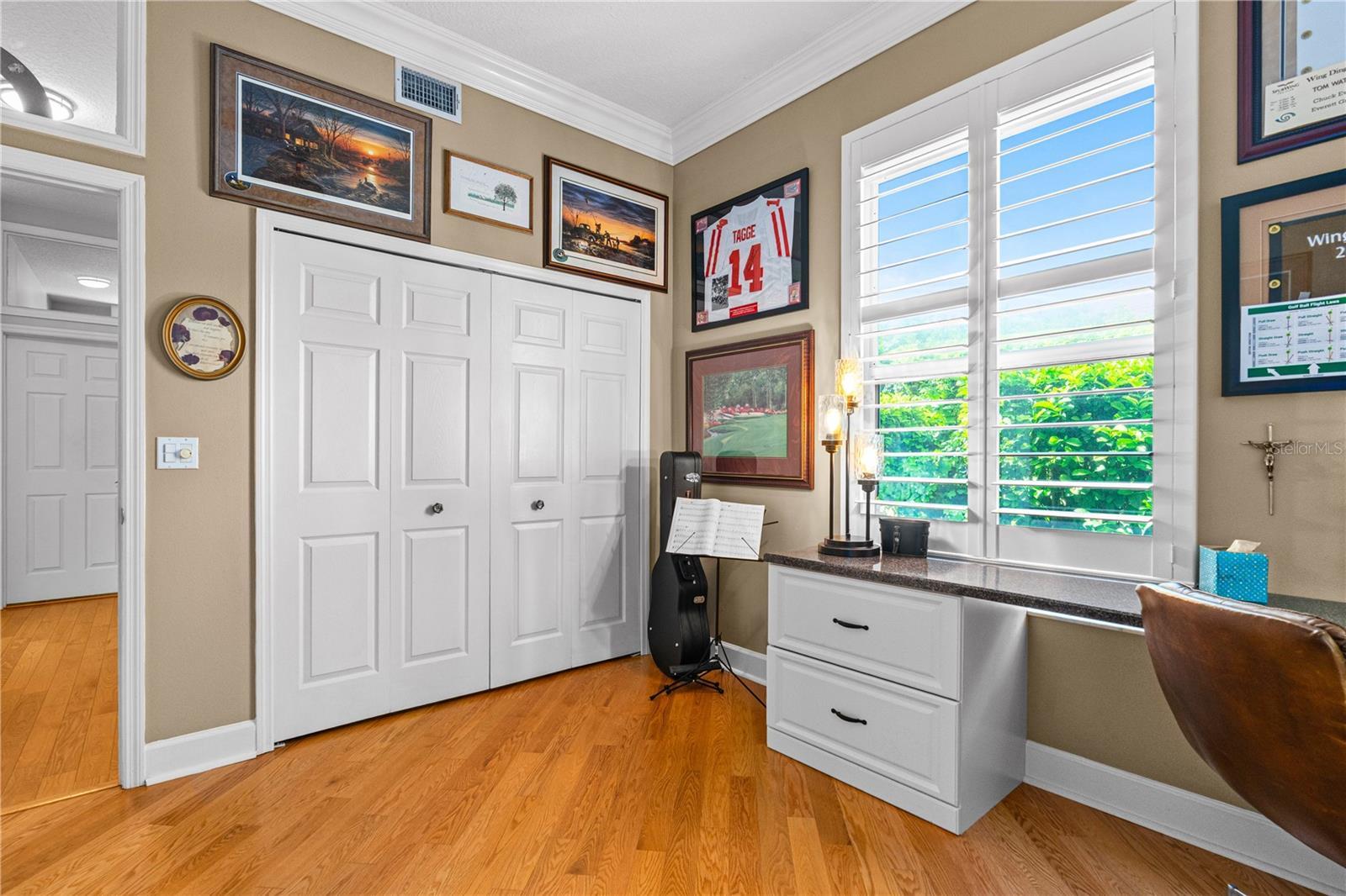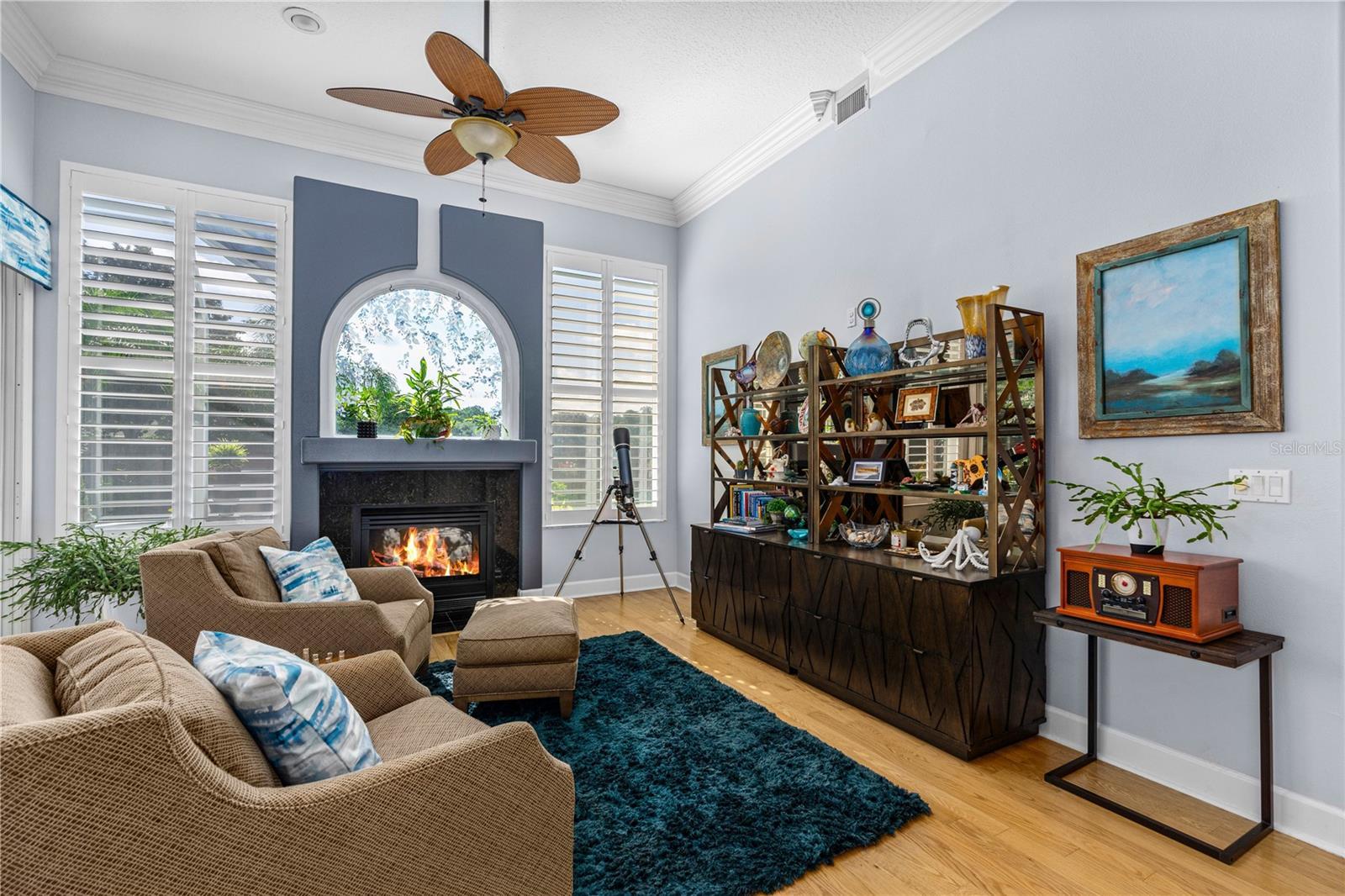 - Ceiling Fans(s), High Ceilings, Kitchen/Family Room Combo, Living Room/Dining Room Combo, Primary Bedroom Main Floor, Solid Surface Counters, Split Bedroom, Thermostat, Vaulted Ceiling(s), Walk-In Closet(s), Window Treatments