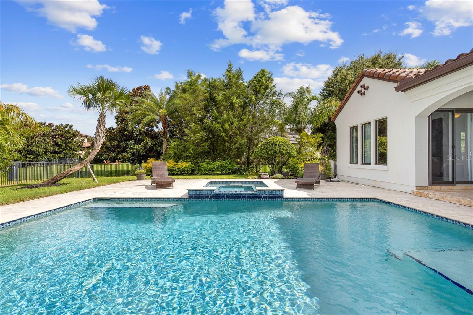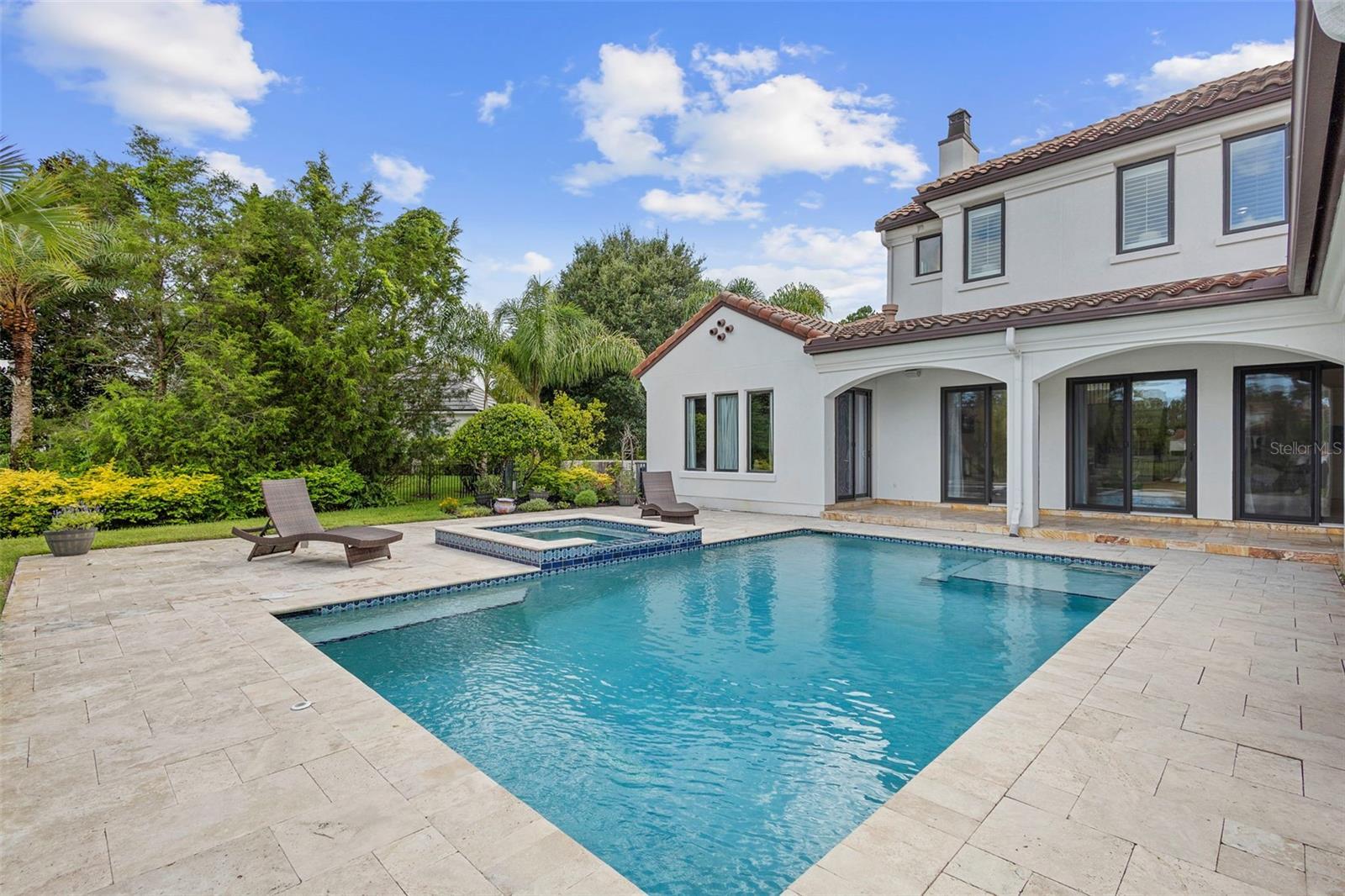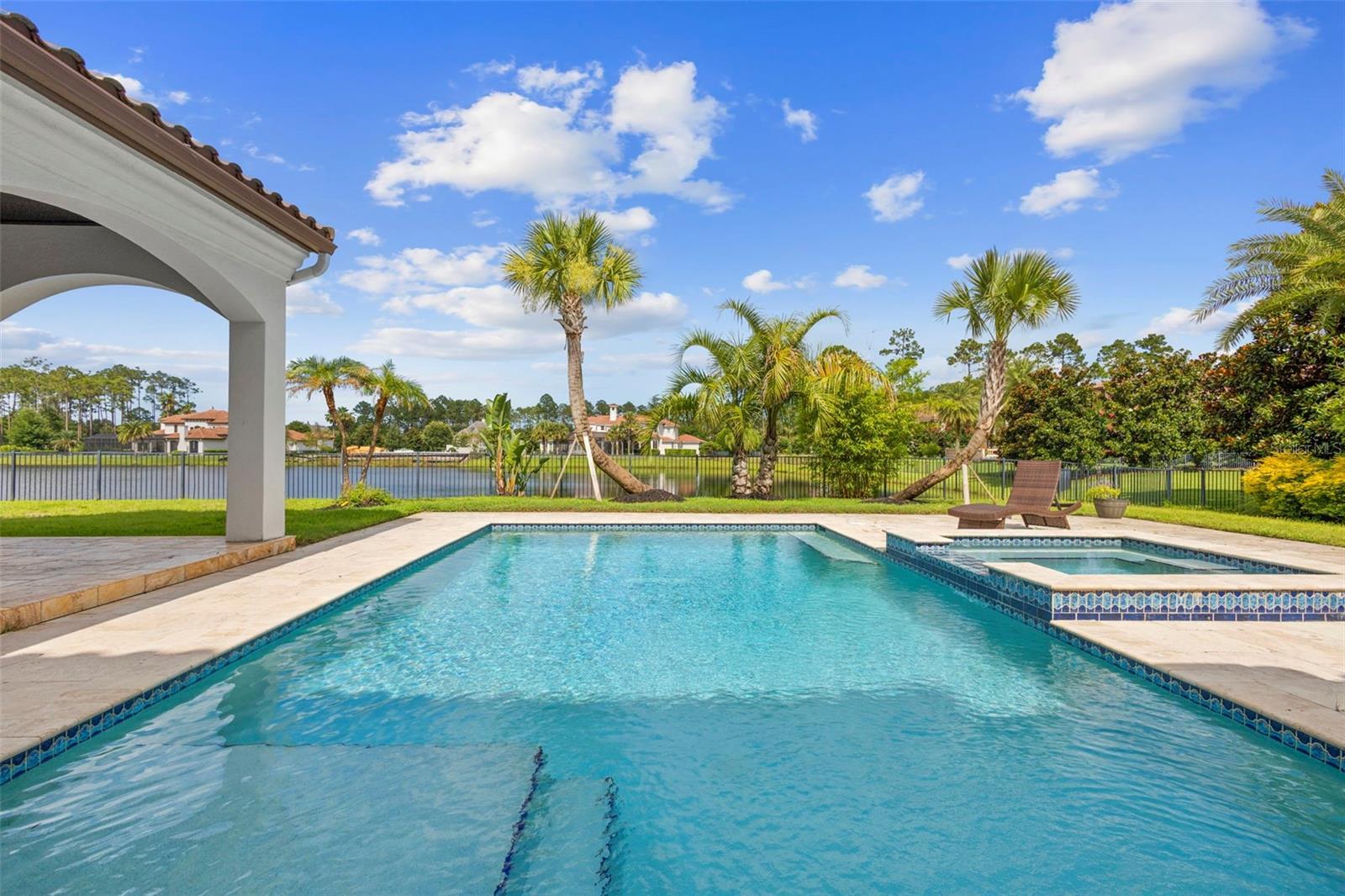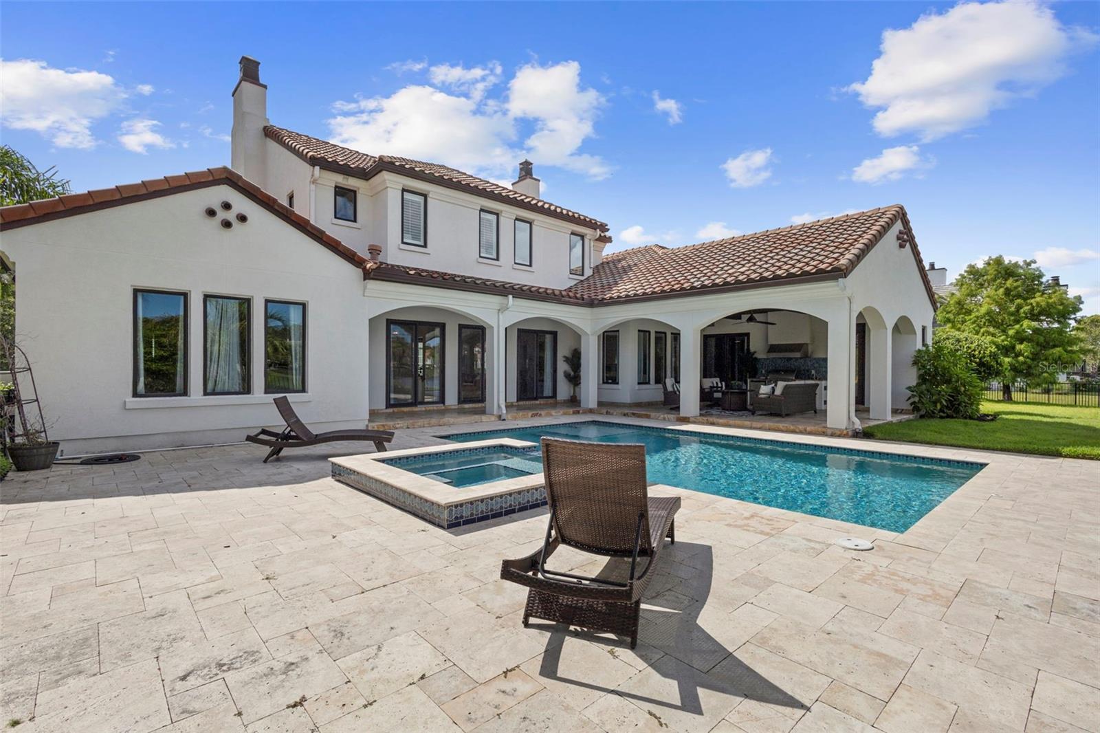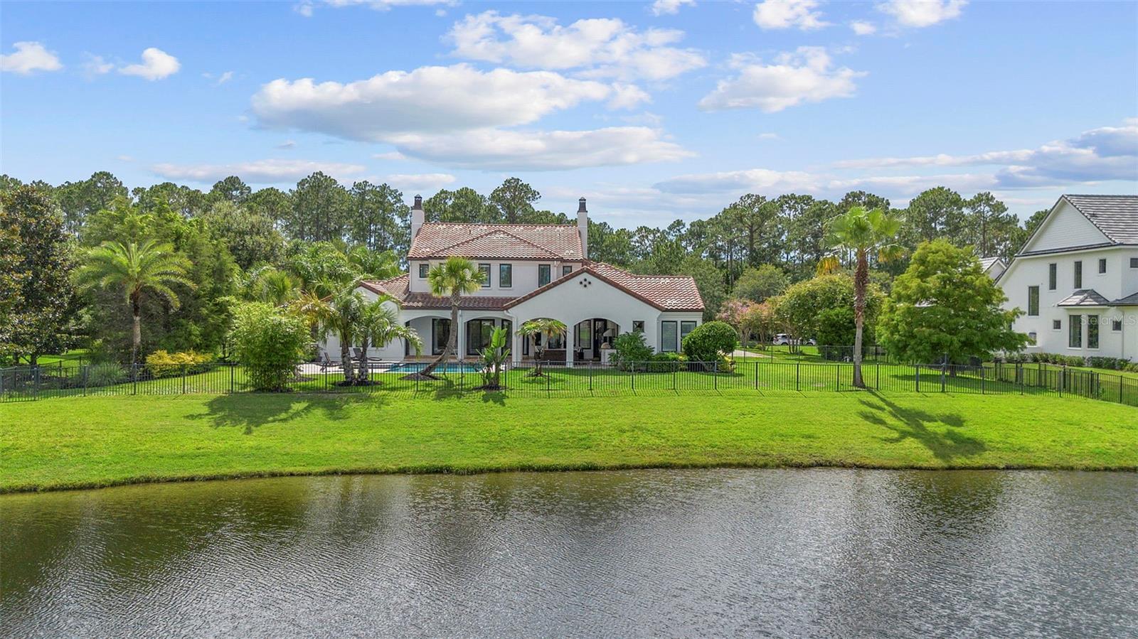 Located within the exclusive guard-gated community of Pablo Creek Reserve in Jacksonville, FL, this well-appointed custom Mediterranean-style estate offers the perfect blend of luxury, functionality, and timeless design. Boasting 5 BEDROOMS, 5.5 BATHROOMS, a 3-CAR GARAGE, and over 4,800 SQFT of elevated living space, this home is designed for both grand entertaining and comfortable everyday living. The heart of the home is the chef’s kitchen, a dream for entertainers and culinary enthusiasts alike. Featuring dual islands, two farmhouse sinks, two dishwashers, TWO HIGH-END REFRIGERATORS, a gas cooktop with custom range hood, wet bar with wine fridge and ice maker, walk-in pantry, and new quartz countertops—this space is thoughtfully crafted for both form and function. The open-concept living area showcases new luxury vinyl plank flooring, a gas fireplace with floating built-ins, and gorgeous views of the pool and tranquil water beyond. Just off the main living area is the moody, design-forward primary suite, completely blacked out for serenity, with oversized drapes, tray ceiling, and an en-suite spa bathroom featuring dual vanities, a steam shower, and an oversized walk-in closet with built-ins and a center island ideal for watches, jewelry, or outfit planning. The first-floor office offers built-in cabinetry, French doors, and a shared view of the impressive saltwater pass-through fish tank. Nearby, you'll find a designer half bath, stylish mudroom cubbies, and a functional laundry space off the hallway leading to the garage. A versatile fifth bedroom on the main floor, currently used as a card room, offers direct access to the expansive covered patio. Outdoors, enjoy travertine tile flooring, built-in speakers, and a full summer kitchen, all overlooking the saltwater pool and spa. A bug-misting repellent system lines the gutters and fence for ultimate outdoor comfort. Upstairs, you'll find a spacious loft, three additional bedrooms—each with its own en-suite bath, and a second laundry room with space for stackable washer/dryer. Featuring a WHOLE HOME GENERAC GENERATOR this property is sure to give you peace of mind in the event of a power outage. This exceptional property is a rare opportunity to own in one of Jacksonville’s most coveted communities, where luxury meets thoughtful design in every detail. Call to schedule your private tour today!