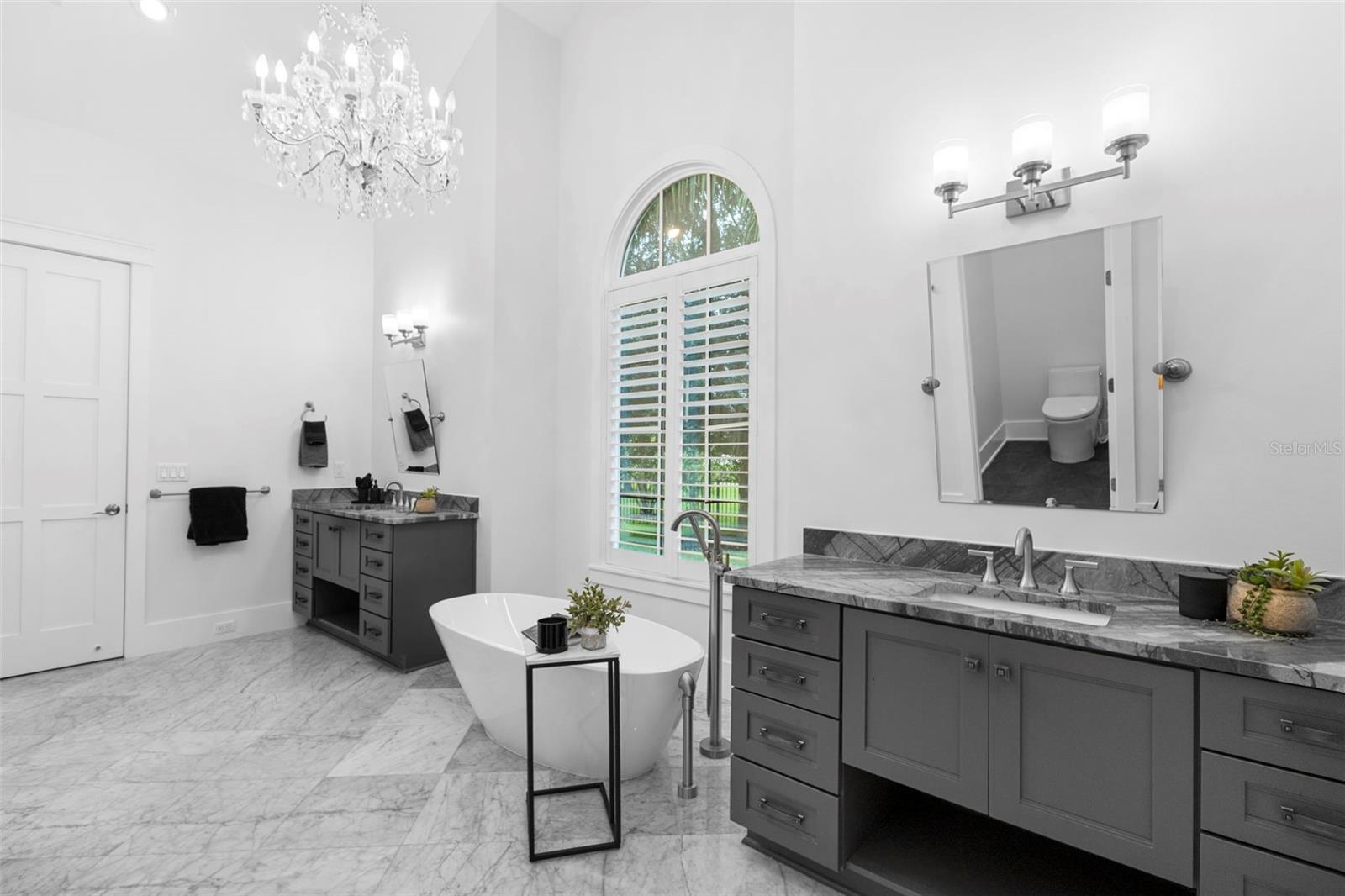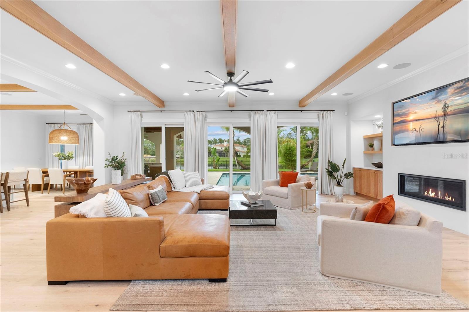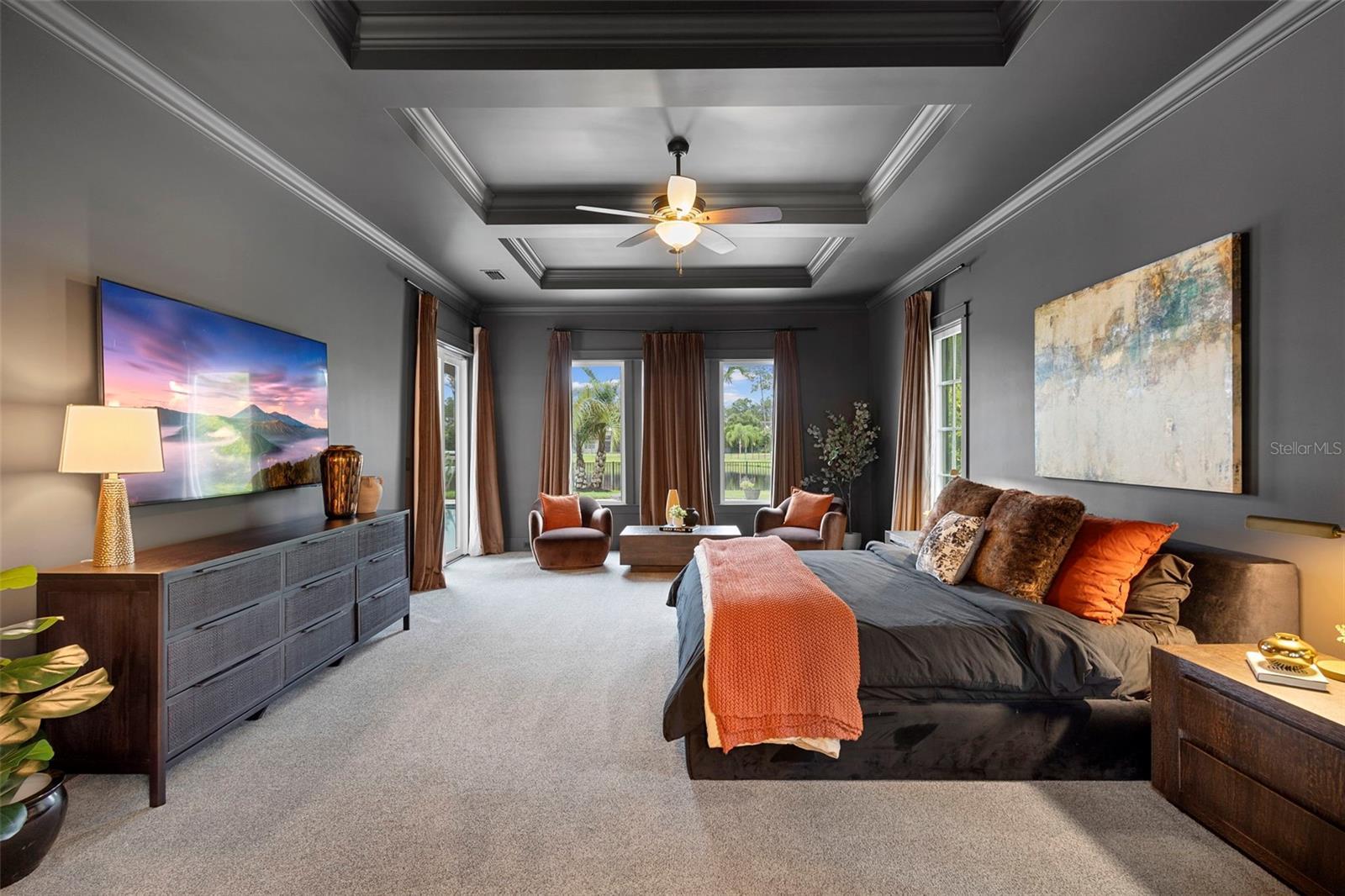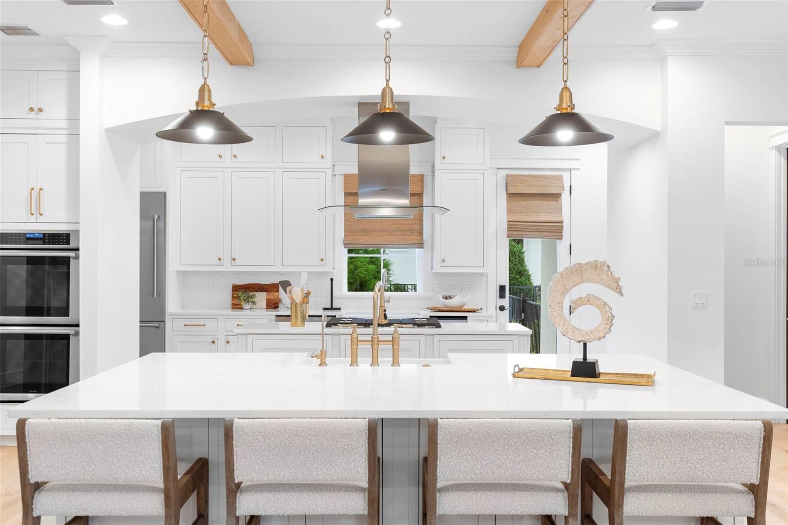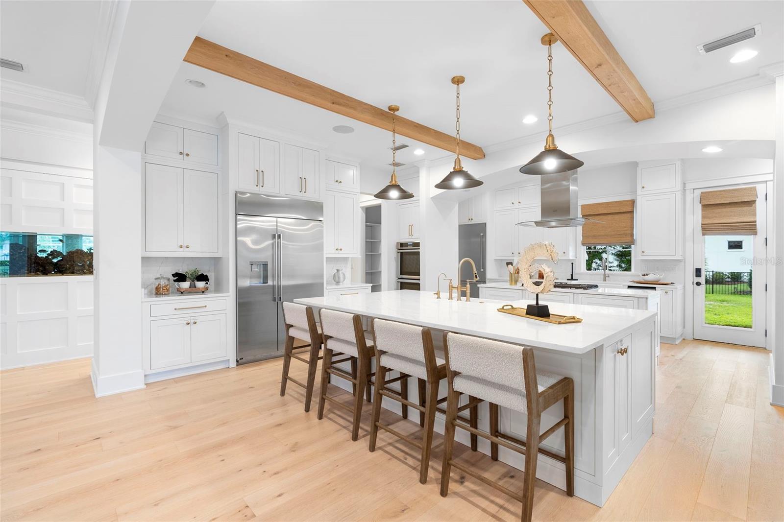 Located within the exclusive guard-gated community of Pablo Creek Reserve in Jacksonville, FL, this well-appointed custom Mediterranean-style estate offers the perfect blend of luxury, functionality, and timeless design. Boasting 5 BEDROOMS, 5.5 BATHROOMS, a 3-CAR GARAGE, and over 4,800 SQFT of elevated living space, this home is designed for both grand entertaining and comfortable everyday living. The heart of the home is the chef’s kitchen, a dream for entertainers and culinary enthusiasts alike. Featuring dual islands, two farmhouse sinks, two dishwashers, TWO HIGH-END REFRIGERATORS, a gas cooktop with custom range hood, wet bar with wine fridge and ice maker, walk-in pantry, and new quartz countertops—this space is thoughtfully crafted for both form and function. The open-concept living area showcases new luxury vinyl plank flooring, a gas fireplace with floating built-ins, and gorgeous views of the pool and tranquil water beyond. Just off the main living area is the moody, design-forward primary suite, completely blacked out for serenity, with oversized drapes, tray ceiling, and an en-suite spa bathroom featuring dual vanities, a steam shower, and an oversized walk-in closet with built-ins and a center island ideal for watches, jewelry, or outfit planning. The first-floor office offers built-in cabinetry, French doors, and a shared view of the impressive saltwater pass-through fish tank. Nearby, you'll find a designer half bath, stylish mudroom cubbies, and a functional laundry space off the hallway leading to the garage. A versatile fifth bedroom on the main floor, currently used as a card room, offers direct access to the expansive covered patio. Outdoors, enjoy travertine tile flooring, built-in speakers, and a full summer kitchen, all overlooking the saltwater pool and spa. A bug-misting repellent system lines the gutters and fence for ultimate outdoor comfort. Upstairs, you'll find a spacious loft, three additional bedrooms—each with its own en-suite bath, and a second laundry room with space for stackable washer/dryer. Featuring a WHOLE HOME GENERAC GENERATOR this property is sure to give you peace of mind in the event of a power outage. This exceptional property is a rare opportunity to own in one of Jacksonville’s most coveted communities, where luxury meets thoughtful design in every detail. Call to schedule your private tour today!