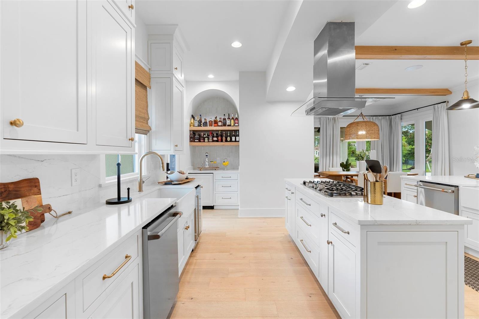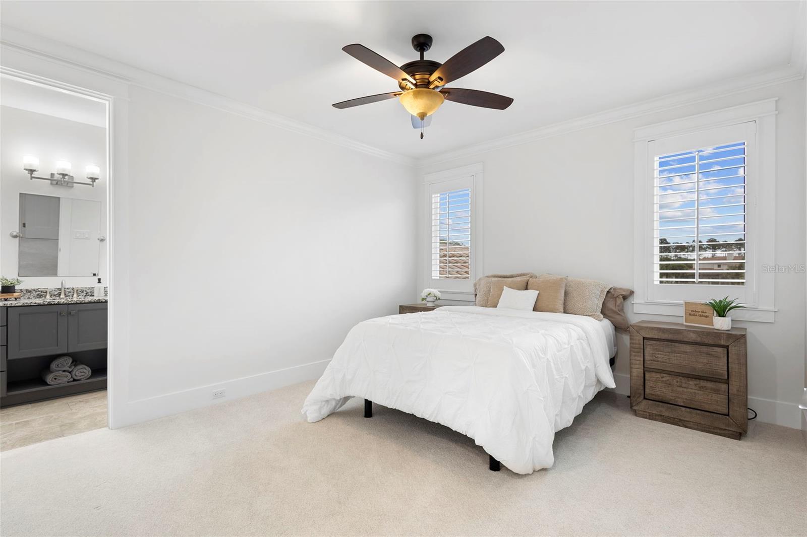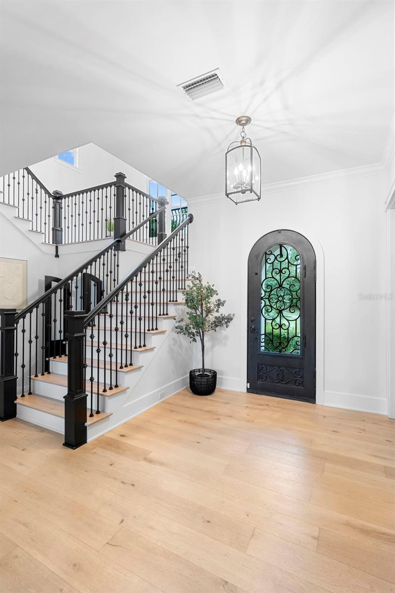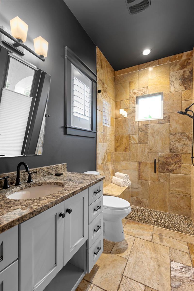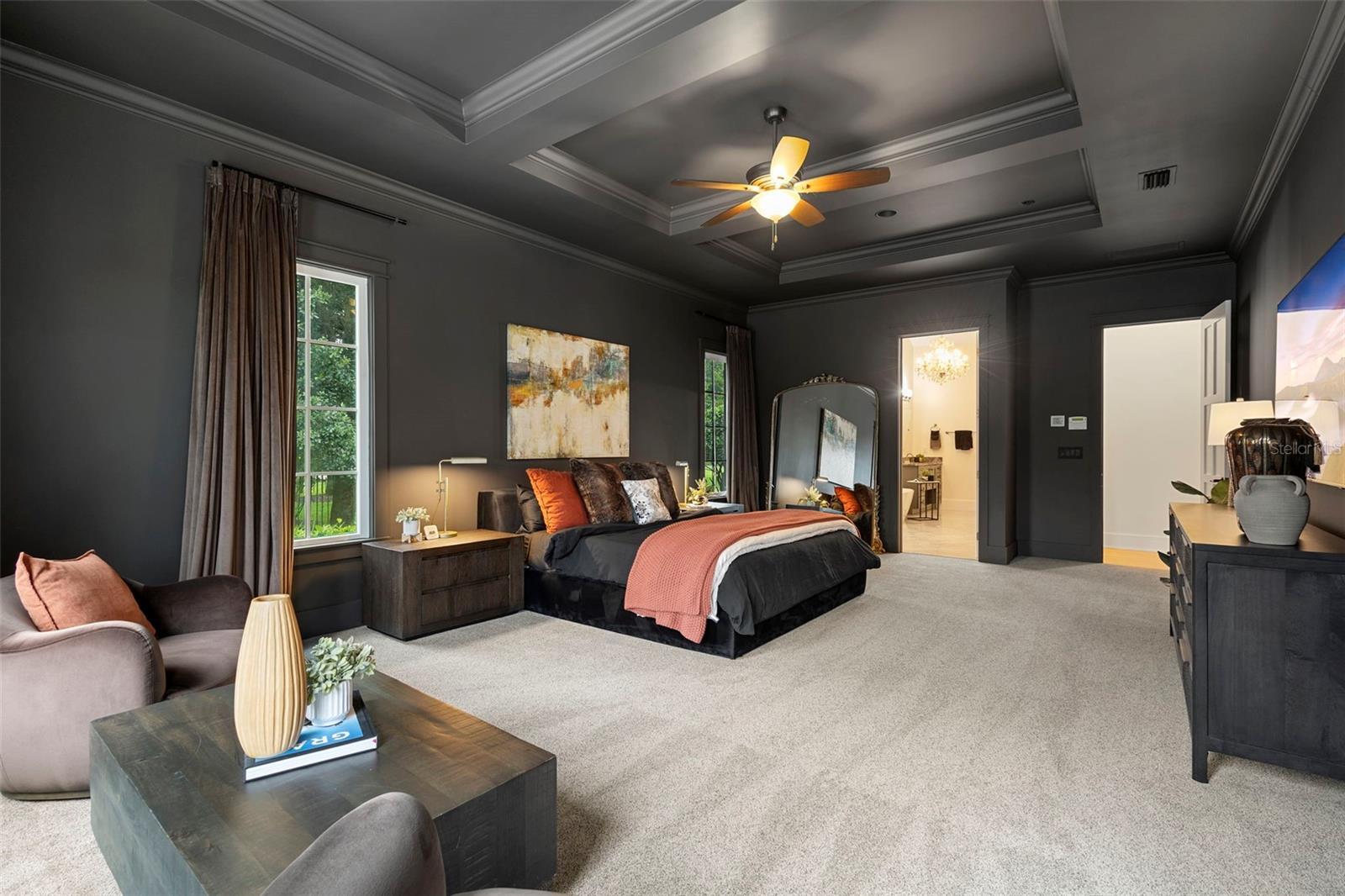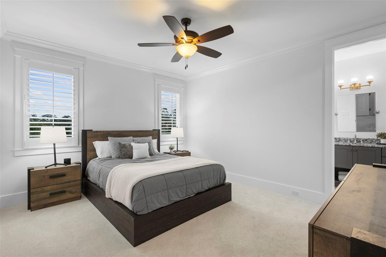 Located within the exclusive guard-gated community of Pablo Creek Reserve in Jacksonville, FL, this well-appointed custom Mediterranean-style estate offers the perfect blend of luxury, functionality, and timeless design. Boasting 5 BEDROOMS, 5.5 BATHROOMS, a 3-CAR GARAGE, and over 4,800 SQFT of elevated living space, this home is designed for both grand entertaining and comfortable everyday living. The heart of the home is the chef’s kitchen, a dream for entertainers and culinary enthusiasts alike. Featuring dual islands, two farmhouse sinks, two dishwashers, TWO HIGH-END REFRIGERATORS, a gas cooktop with custom range hood, wet bar with wine fridge and ice maker, walk-in pantry, and new quartz countertops—this space is thoughtfully crafted for both form and function. The open-concept living area showcases new luxury vinyl plank flooring, a gas fireplace with floating built-ins, and gorgeous views of the pool and tranquil water beyond. Just off the main living area is the moody, design-forward primary suite, completely blacked out for serenity, with oversized drapes, tray ceiling, and an en-suite spa bathroom featuring dual vanities, a steam shower, and an oversized walk-in closet with built-ins and a center island ideal for watches, jewelry, or outfit planning. The first-floor office offers built-in cabinetry, French doors, and a shared view of the impressive saltwater pass-through fish tank. Nearby, you'll find a designer half bath, stylish mudroom cubbies, and a functional laundry space off the hallway leading to the garage. A versatile fifth bedroom on the main floor, currently used as a card room, offers direct access to the expansive covered patio. Outdoors, enjoy travertine tile flooring, built-in speakers, and a full summer kitchen, all overlooking the saltwater pool and spa. A bug-misting repellent system lines the gutters and fence for ultimate outdoor comfort. Upstairs, you'll find a spacious loft, three additional bedrooms—each with its own en-suite bath, and a second laundry room with space for stackable washer/dryer. Featuring a WHOLE HOME GENERAC GENERATOR this property is sure to give you peace of mind in the event of a power outage. This exceptional property is a rare opportunity to own in one of Jacksonville’s most coveted communities, where luxury meets thoughtful design in every detail. Call to schedule your private tour today!