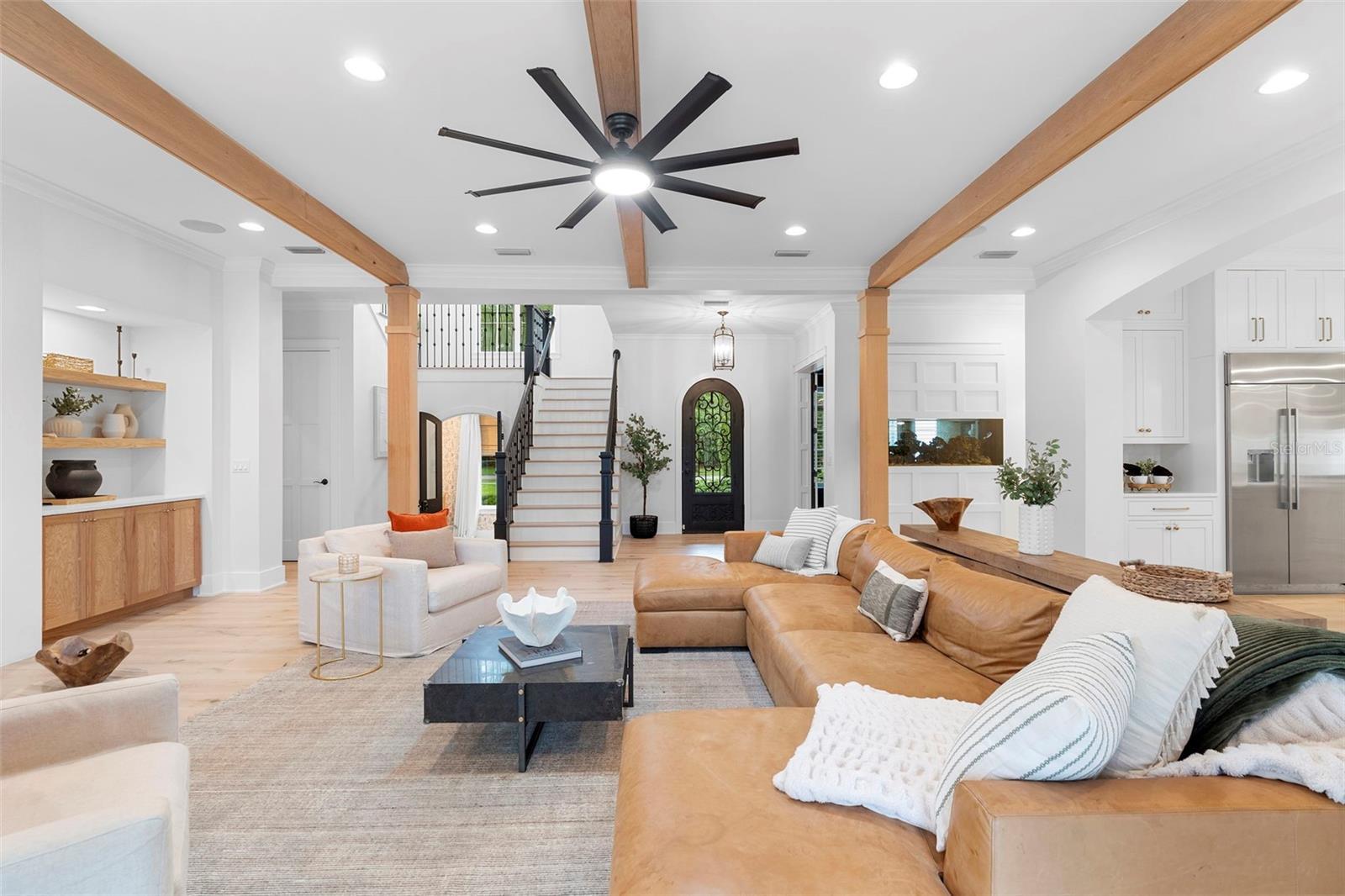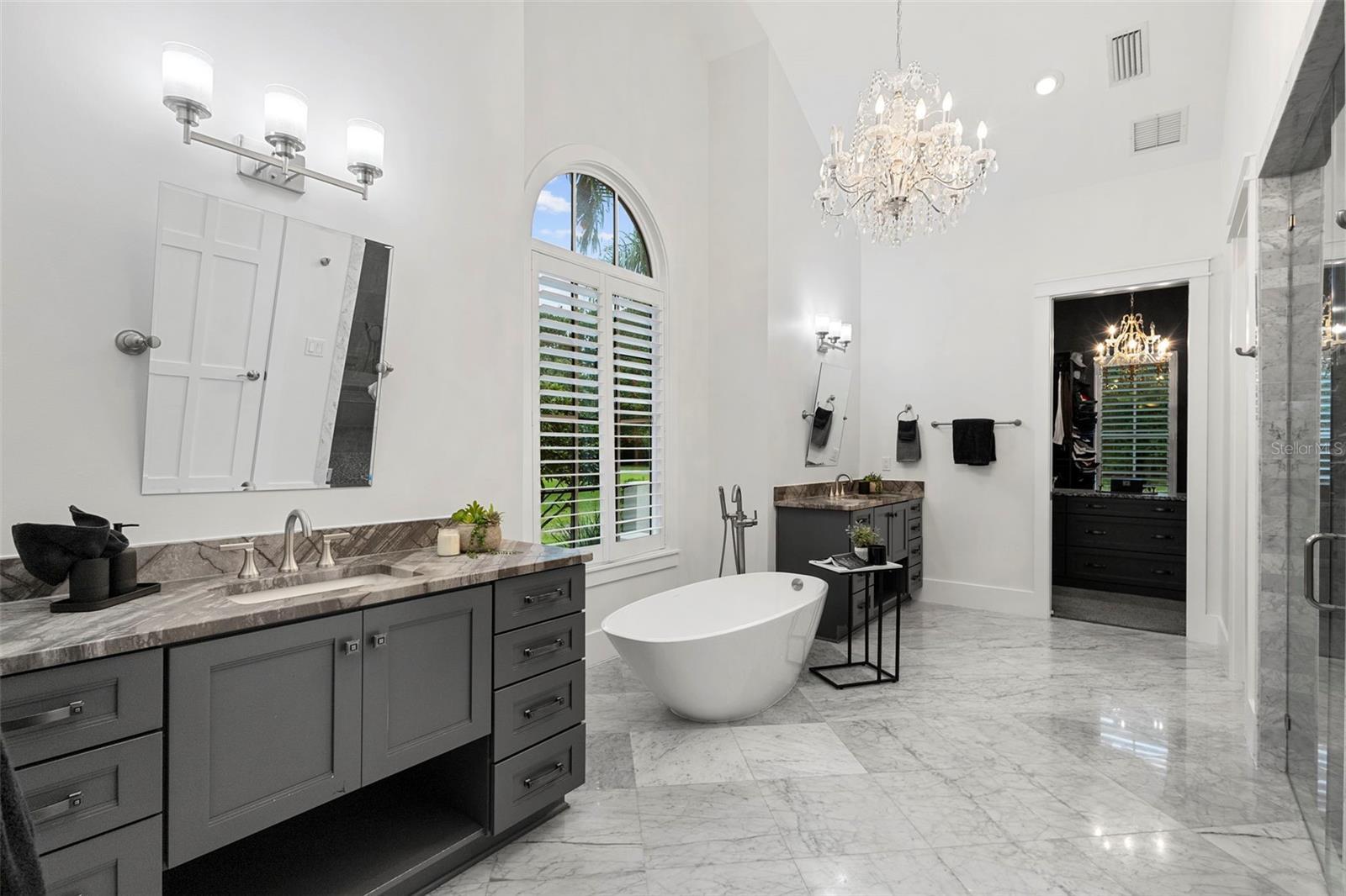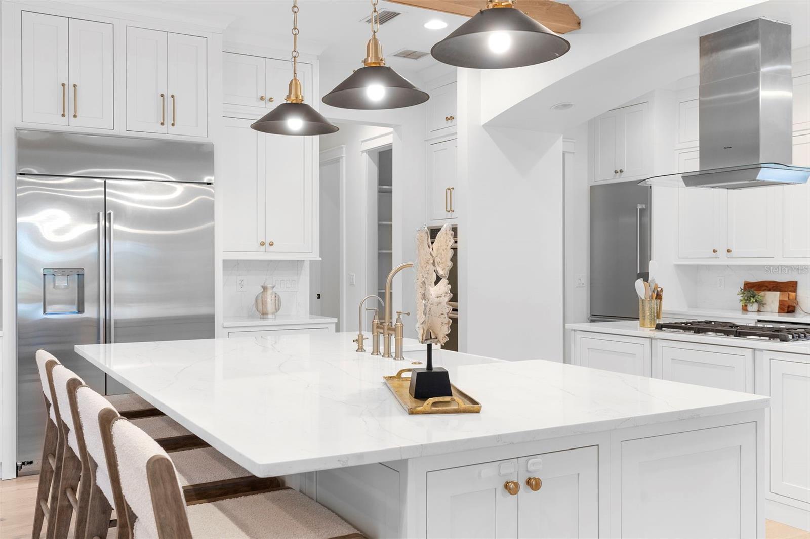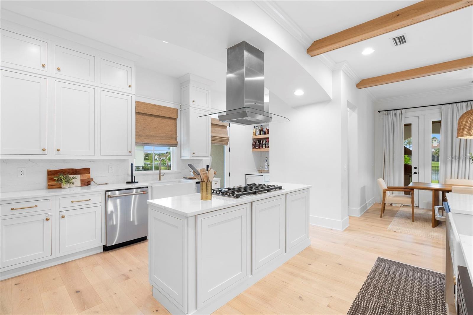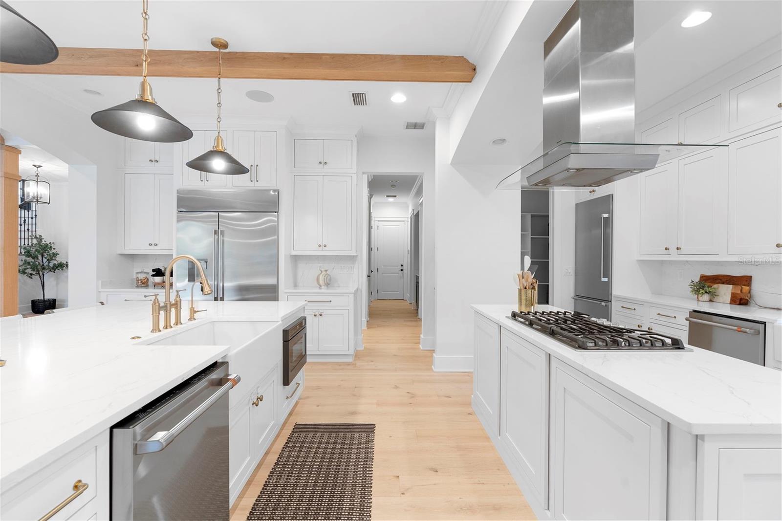 Located within the exclusive guard-gated community of Pablo Creek Reserve in Jacksonville, FL, this well-appointed custom Mediterranean-style estate offers the perfect blend of luxury, functionality, and timeless design. Boasting 5 BEDROOMS, 5.5 BATHROOMS, a 3-CAR GARAGE, and over 4,800 SQFT of elevated living space, this home is designed for both grand entertaining and comfortable everyday living. The heart of the home is the chef’s kitchen, a dream for entertainers and culinary enthusiasts alike. Featuring dual islands, two farmhouse sinks, two dishwashers, TWO HIGH-END REFRIGERATORS, a gas cooktop with custom range hood, wet bar with wine fridge and ice maker, walk-in pantry, and new quartz countertops—this space is thoughtfully crafted for both form and function. The open-concept living area showcases new luxury vinyl plank flooring, a gas fireplace with floating built-ins, and gorgeous views of the pool and tranquil water beyond. Just off the main living area is the moody, design-forward primary suite, completely blacked out for serenity, with oversized drapes, tray ceiling, and an en-suite spa bathroom featuring dual vanities, a steam shower, and an oversized walk-in closet with built-ins and a center island ideal for watches, jewelry, or outfit planning. The first-floor office offers built-in cabinetry, French doors, and a shared view of the impressive saltwater pass-through fish tank. Nearby, you'll find a designer half bath, stylish mudroom cubbies, and a functional laundry space off the hallway leading to the garage. A versatile fifth bedroom on the main floor, currently used as a card room, offers direct access to the expansive covered patio. Outdoors, enjoy travertine tile flooring, built-in speakers, and a full summer kitchen, all overlooking the saltwater pool and spa. A bug-misting repellent system lines the gutters and fence for ultimate outdoor comfort. Upstairs, you'll find a spacious loft, three additional bedrooms—each with its own en-suite bath, and a second laundry room with space for stackable washer/dryer. Featuring a WHOLE HOME GENERAC GENERATOR this property is sure to give you peace of mind in the event of a power outage. This exceptional property is a rare opportunity to own in one of Jacksonville’s most coveted communities, where luxury meets thoughtful design in every detail. Call to schedule your private tour today!