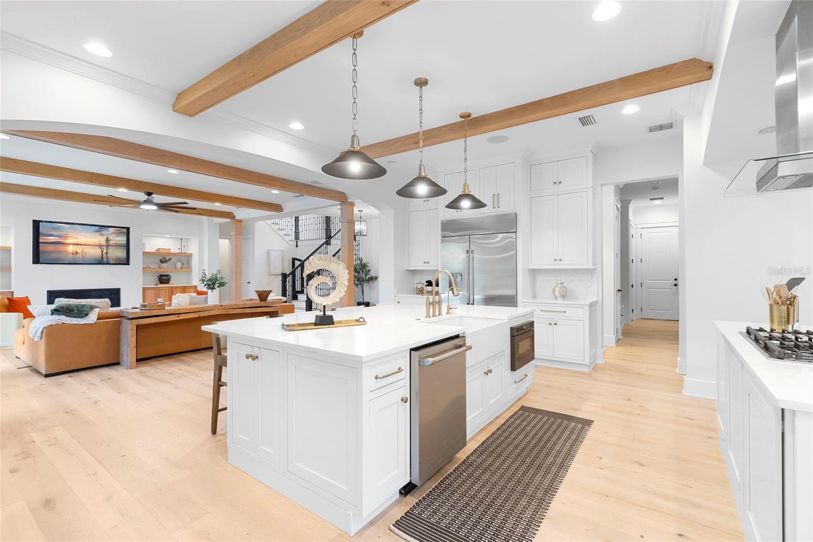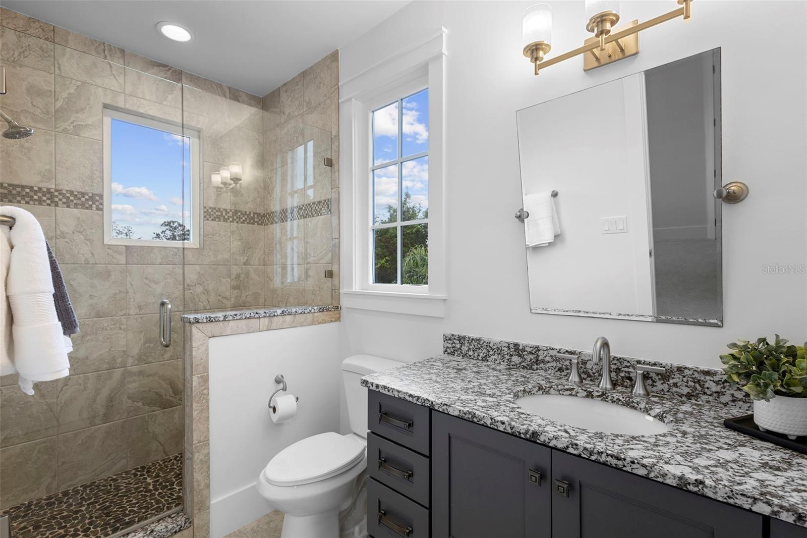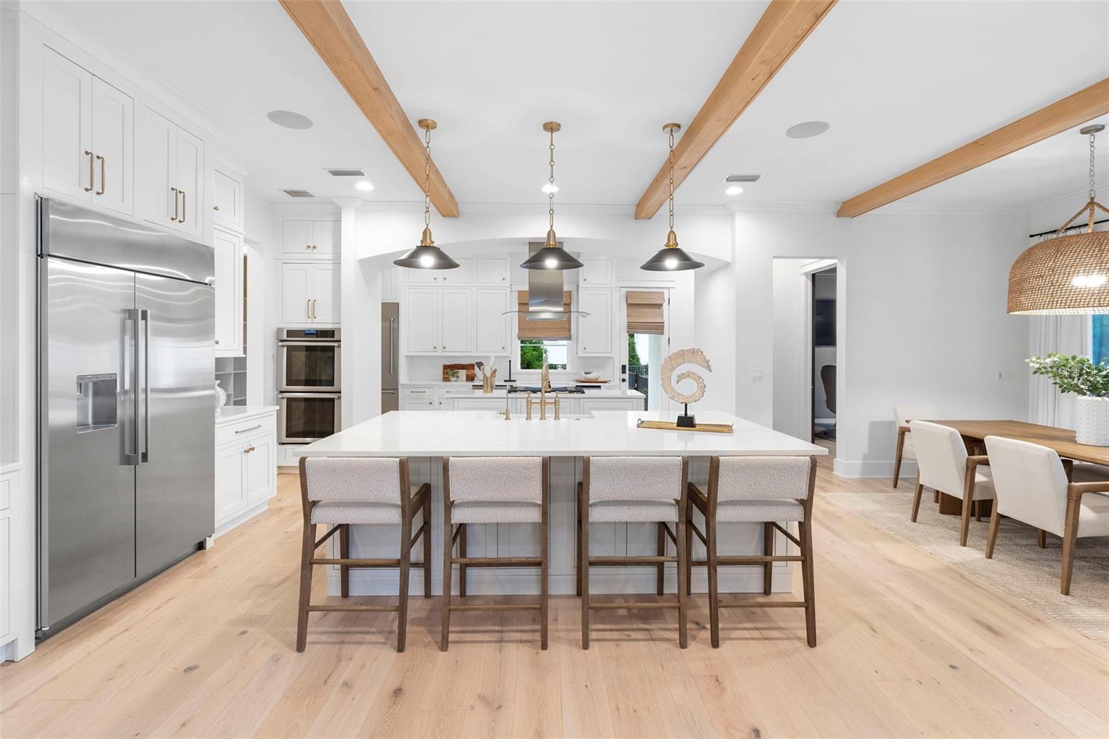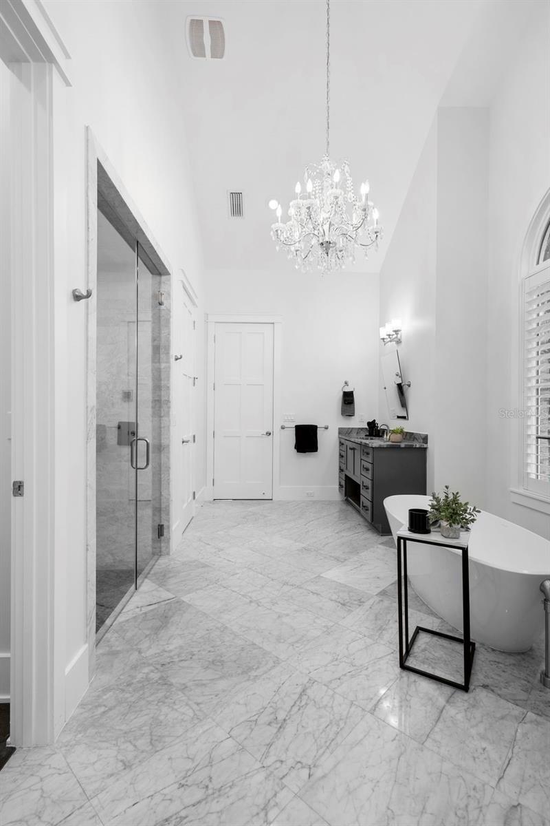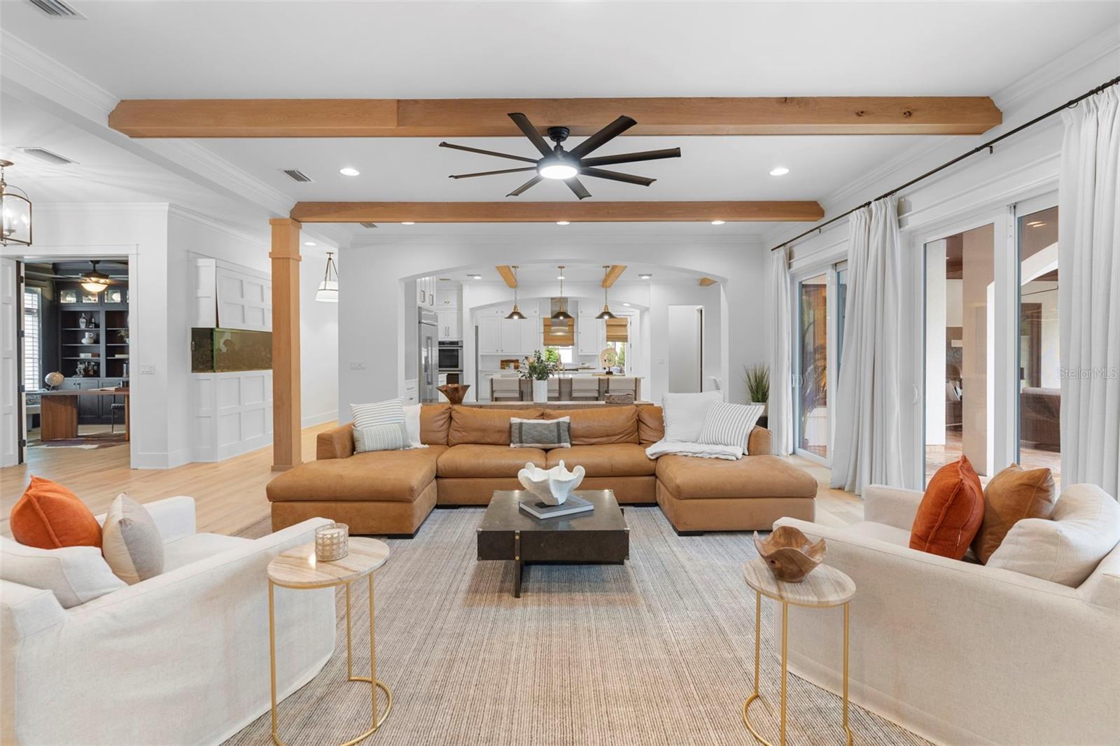 Located within the exclusive guard-gated community of Pablo Creek Reserve in Jacksonville, FL, this well-appointed custom Mediterranean-style estate offers the perfect blend of luxury, functionality, and timeless design. Boasting 5 BEDROOMS, 5.5 BATHROOMS, a 3-CAR GARAGE, and over 4,800 SQFT of elevated living space, this home is designed for both grand entertaining and comfortable everyday living. The heart of the home is the chef’s kitchen, a dream for entertainers and culinary enthusiasts alike. Featuring dual islands, two farmhouse sinks, two dishwashers, TWO HIGH-END REFRIGERATORS, a gas cooktop with custom range hood, wet bar with wine fridge and ice maker, walk-in pantry, and new quartz countertops—this space is thoughtfully crafted for both form and function. The open-concept living area showcases new luxury vinyl plank flooring, a gas fireplace with floating built-ins, and gorgeous views of the pool and tranquil water beyond. Just off the main living area is the moody, design-forward primary suite, completely blacked out for serenity, with oversized drapes, tray ceiling, and an en-suite spa bathroom featuring dual vanities, a steam shower, and an oversized walk-in closet with built-ins and a center island ideal for watches, jewelry, or outfit planning. The first-floor office offers built-in cabinetry, French doors, and a shared view of the impressive saltwater pass-through fish tank. Nearby, you'll find a designer half bath, stylish mudroom cubbies, and a functional laundry space off the hallway leading to the garage. A versatile fifth bedroom on the main floor, currently used as a card room, offers direct access to the expansive covered patio. Outdoors, enjoy travertine tile flooring, built-in speakers, and a full summer kitchen, all overlooking the saltwater pool and spa. A bug-misting repellent system lines the gutters and fence for ultimate outdoor comfort. Upstairs, you'll find a spacious loft, three additional bedrooms—each with its own en-suite bath, and a second laundry room with space for stackable washer/dryer. Featuring a WHOLE HOME GENERAC GENERATOR this property is sure to give you peace of mind in the event of a power outage. This exceptional property is a rare opportunity to own in one of Jacksonville’s most coveted communities, where luxury meets thoughtful design in every detail. Call to schedule your private tour today!