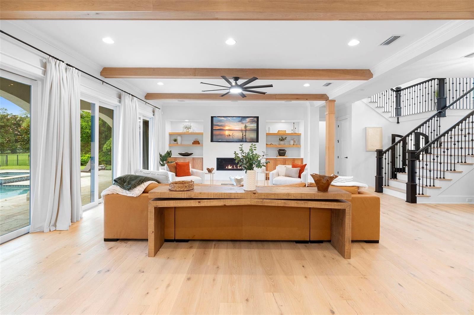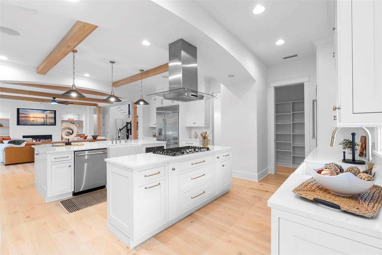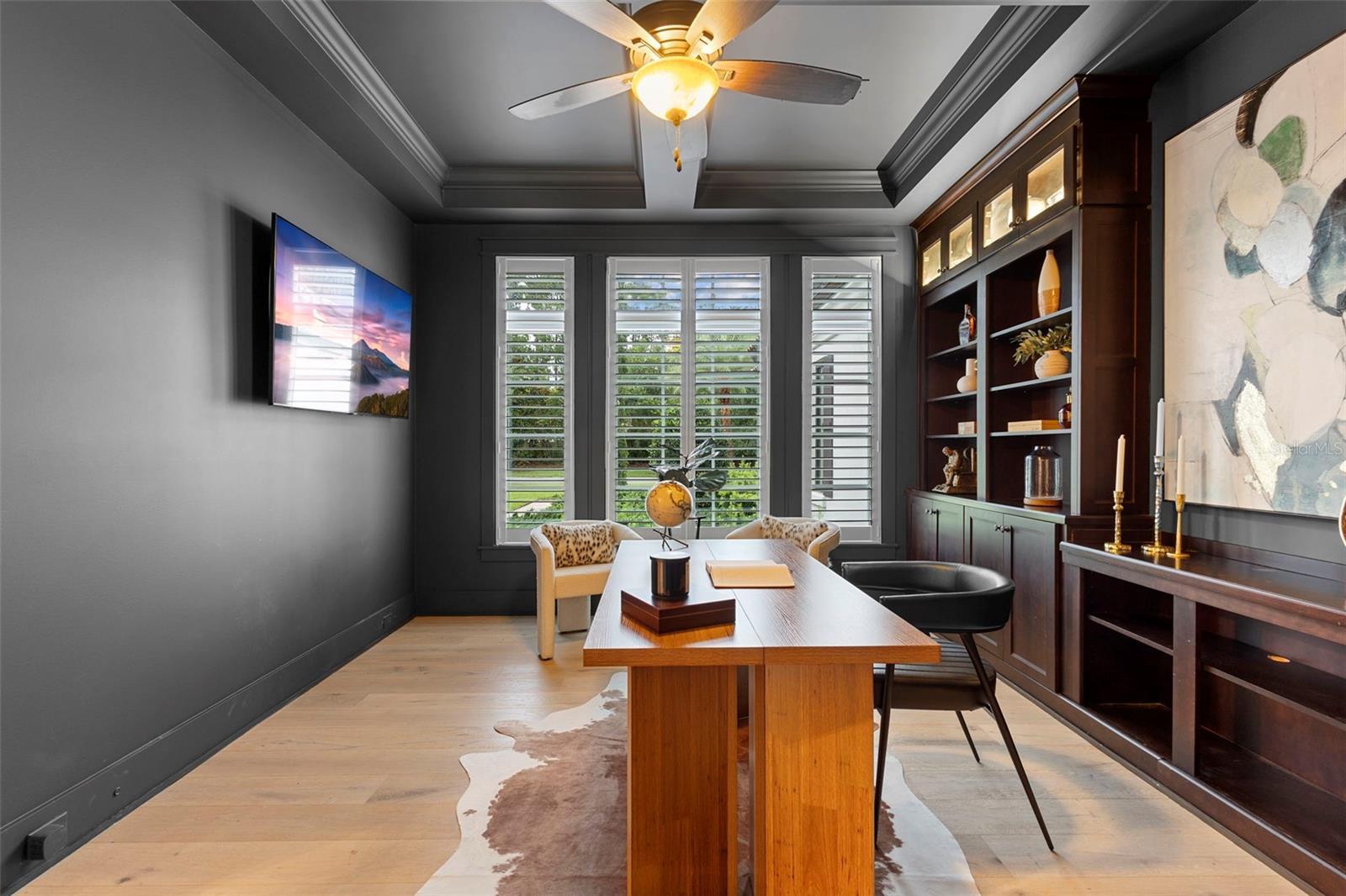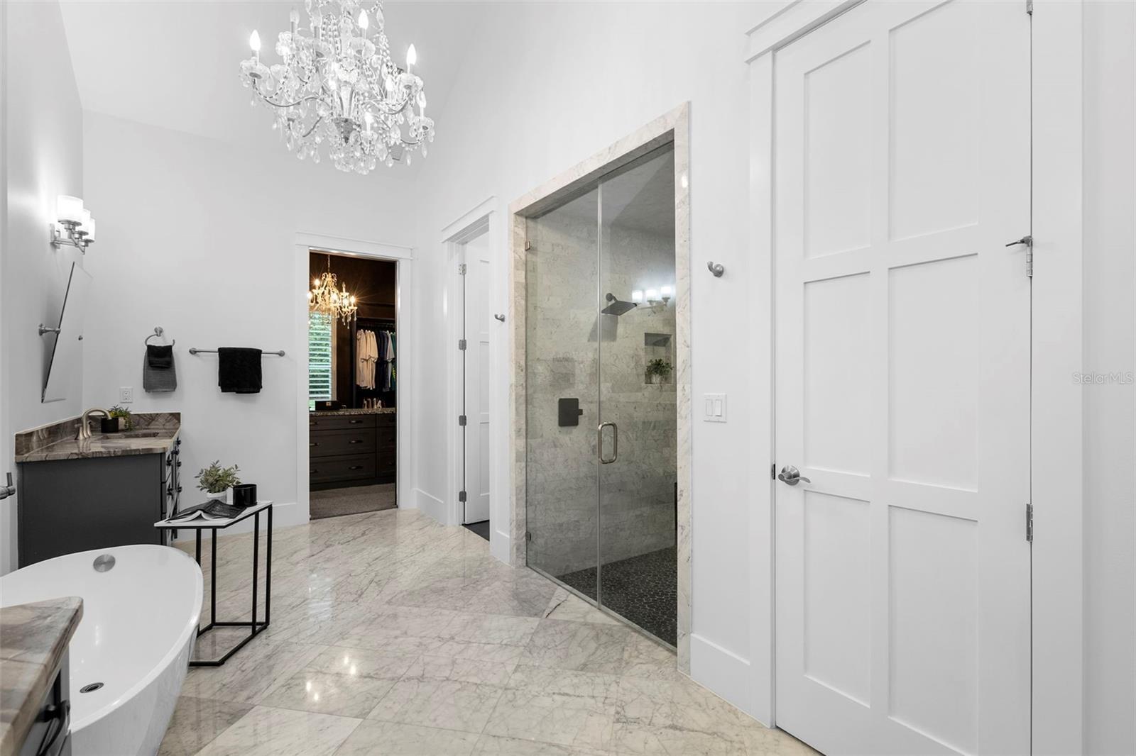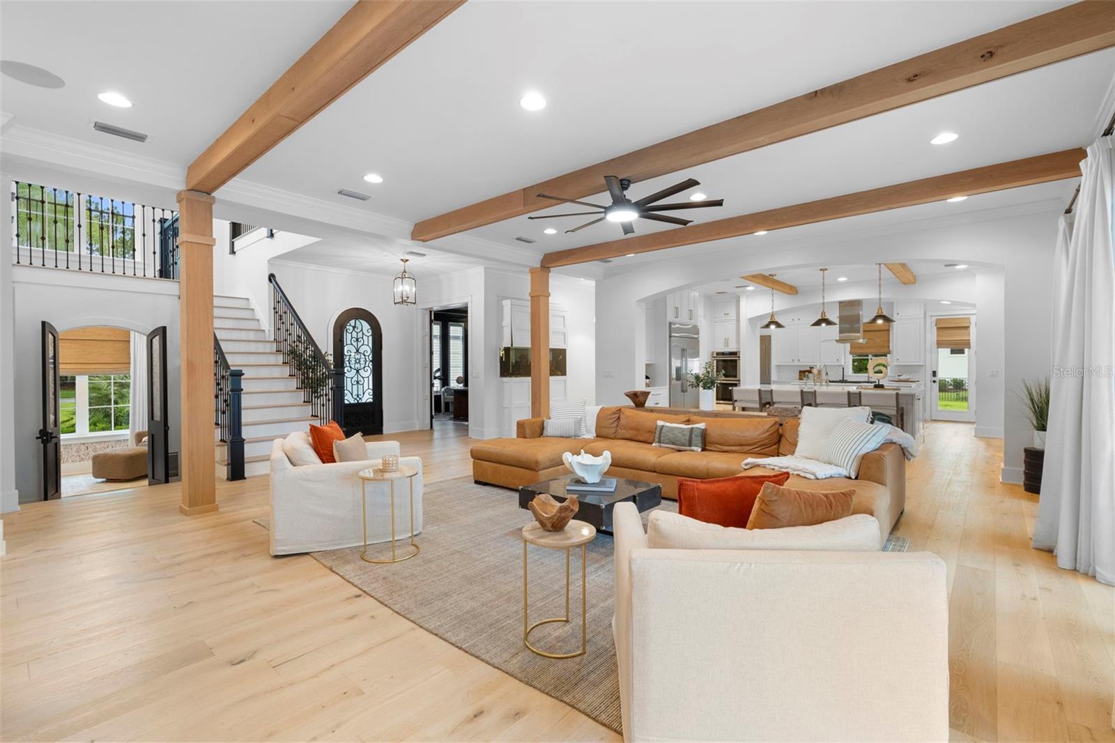 Located within the exclusive guard-gated community of Pablo Creek Reserve in Jacksonville, FL, this well-appointed custom Mediterranean-style estate offers the perfect blend of luxury, functionality, and timeless design. Boasting 5 BEDROOMS, 5.5 BATHROOMS, a 3-CAR GARAGE, and over 4,800 SQFT of elevated living space, this home is designed for both grand entertaining and comfortable everyday living. The heart of the home is the chef’s kitchen, a dream for entertainers and culinary enthusiasts alike. Featuring dual islands, two farmhouse sinks, two dishwashers, TWO HIGH-END REFRIGERATORS, a gas cooktop with custom range hood, wet bar with wine fridge and ice maker, walk-in pantry, and new quartz countertops—this space is thoughtfully crafted for both form and function. The open-concept living area showcases new luxury vinyl plank flooring, a gas fireplace with floating built-ins, and gorgeous views of the pool and tranquil water beyond. Just off the main living area is the moody, design-forward primary suite, completely blacked out for serenity, with oversized drapes, tray ceiling, and an en-suite spa bathroom featuring dual vanities, a steam shower, and an oversized walk-in closet with built-ins and a center island ideal for watches, jewelry, or outfit planning. The first-floor office offers built-in cabinetry, French doors, and a shared view of the impressive saltwater pass-through fish tank. Nearby, you'll find a designer half bath, stylish mudroom cubbies, and a functional laundry space off the hallway leading to the garage. A versatile fifth bedroom on the main floor, currently used as a card room, offers direct access to the expansive covered patio. Outdoors, enjoy travertine tile flooring, built-in speakers, and a full summer kitchen, all overlooking the saltwater pool and spa. A bug-misting repellent system lines the gutters and fence for ultimate outdoor comfort. Upstairs, you'll find a spacious loft, three additional bedrooms—each with its own en-suite bath, and a second laundry room with space for stackable washer/dryer. Featuring a WHOLE HOME GENERAC GENERATOR this property is sure to give you peace of mind in the event of a power outage. This exceptional property is a rare opportunity to own in one of Jacksonville’s most coveted communities, where luxury meets thoughtful design in every detail. Call to schedule your private tour today!