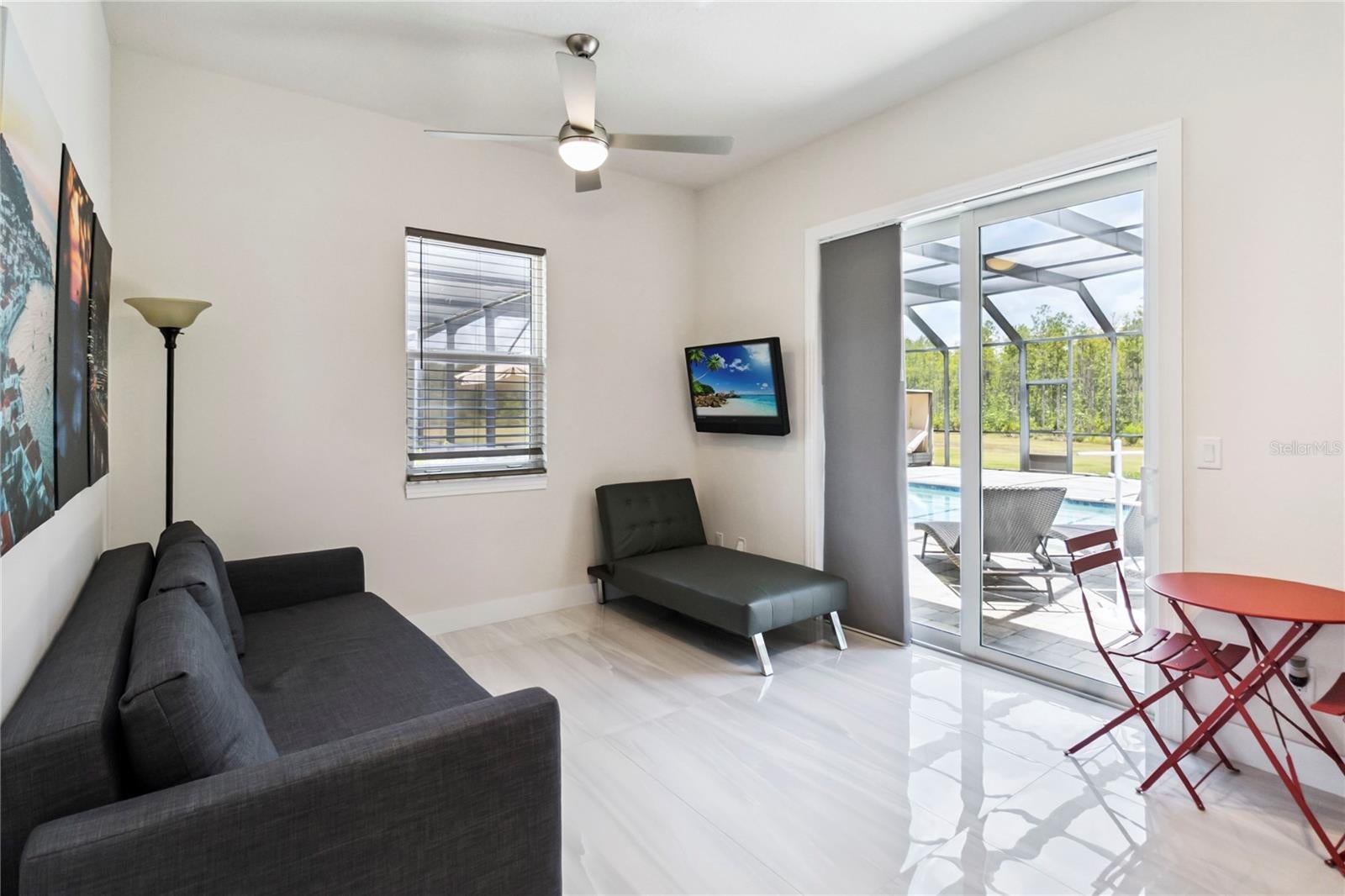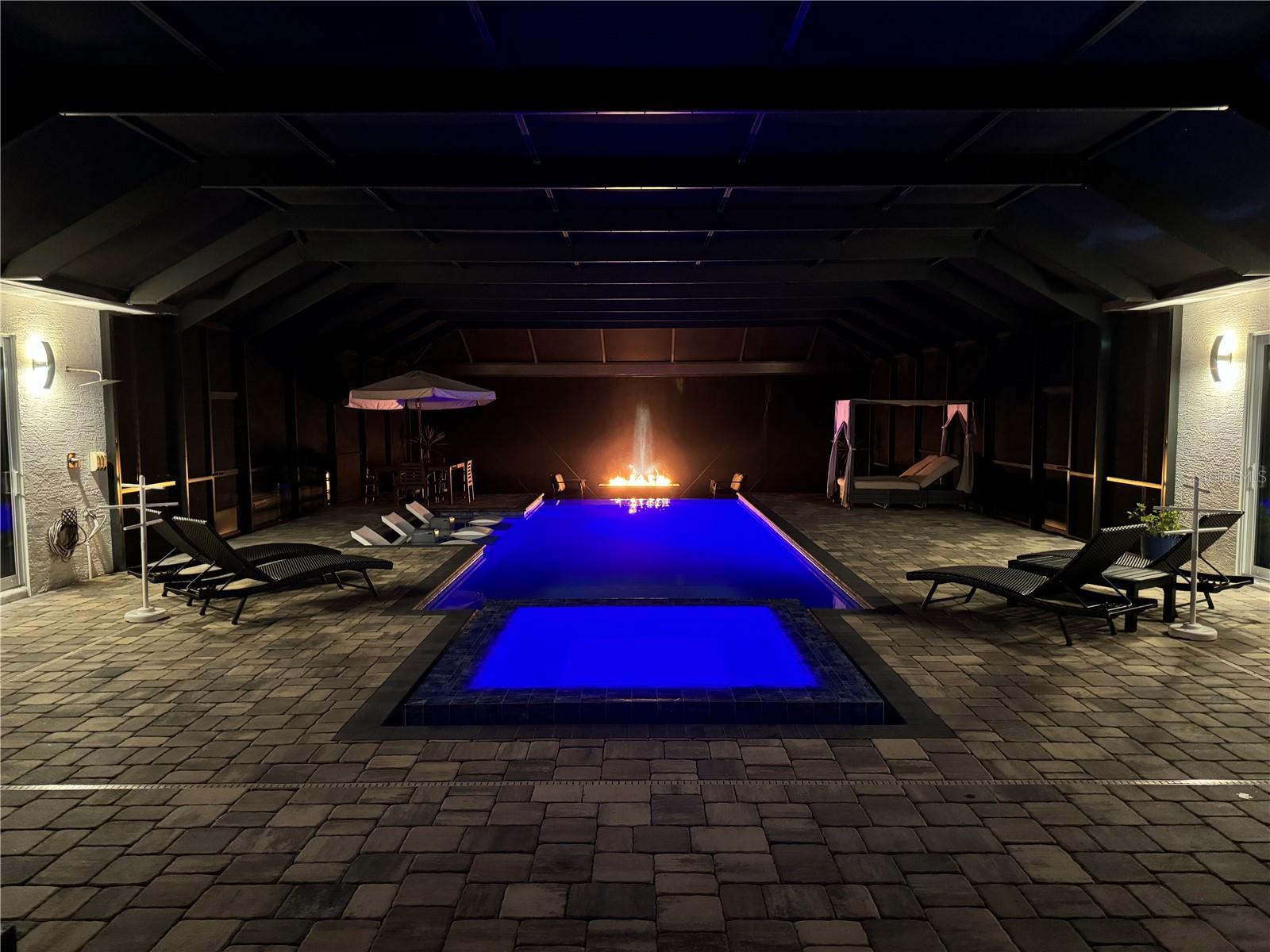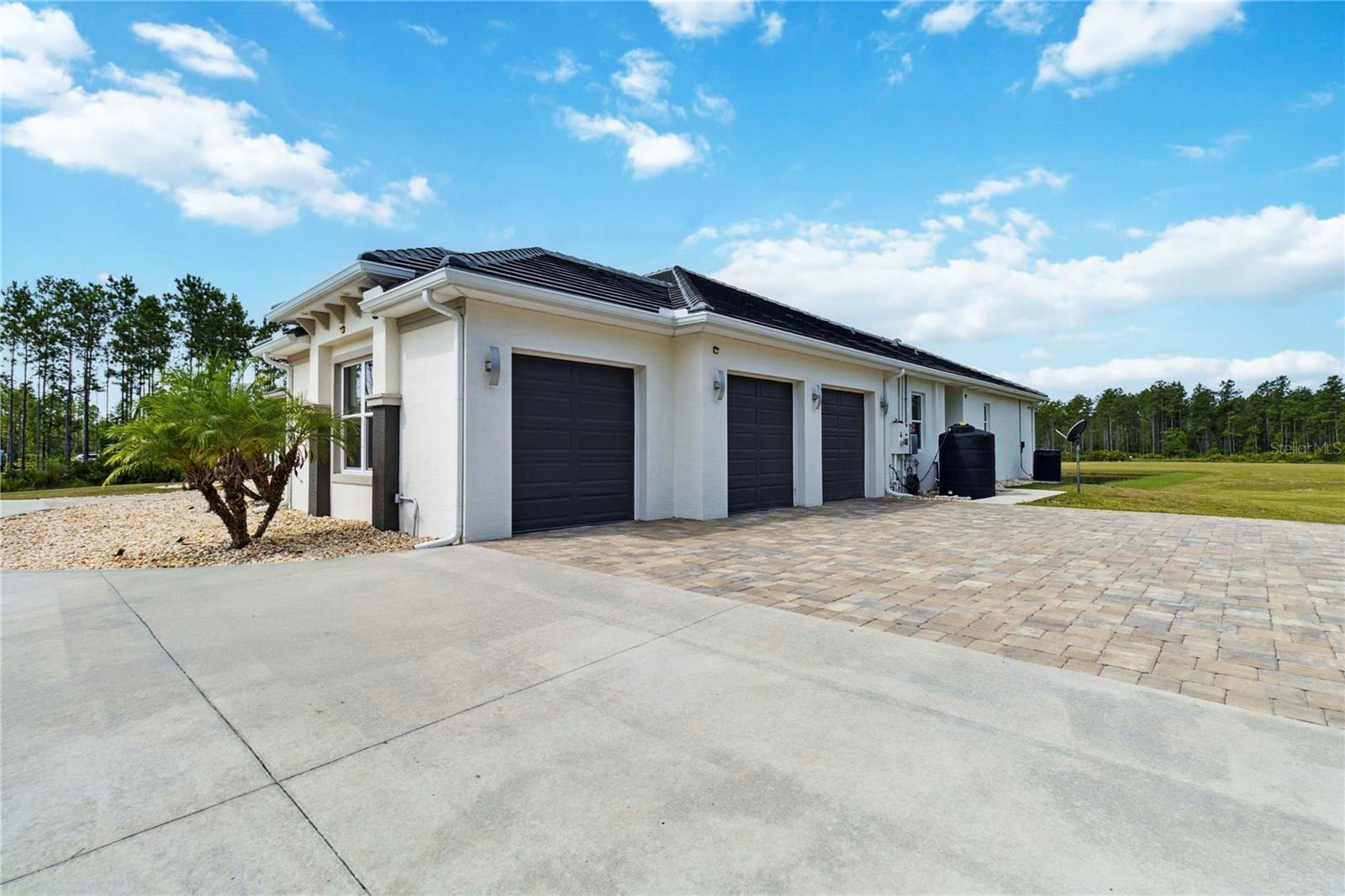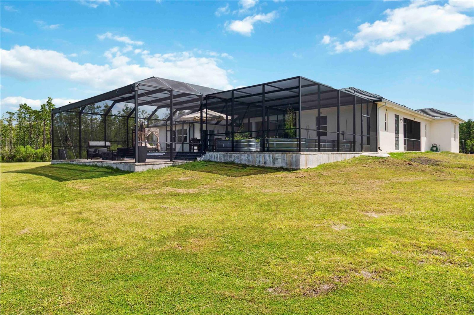 Experience refined Florida living in this one-of-a-kind custom estate, built in 2021 as a signature custom home by by owners through Olsen Homes. Set on nearly 11 private acres within the exclusive gated community of Sweetwater Estates, this property offers unmatched space, privacy, luxury, and added security. Constructed with solid block and topped with a durable tile roof, this home offers peace of mind and lasting value for years to come. Inside, you’ll find soaring 11’ ceilings throughout and a striking 15’ vaulted ceiling in the kitchen and living area. Every inch is finished with imported 24x48 Italian porcelain tile, including floor-to-ceiling tiled showers in all bathrooms. This expansive 5-bedroom, 3.5-bath home includes walk-in closets in every bedroom, two additional hallway closets, and a completely separate private guest suite with its own entrance, cassette HVAC, kitchenette, and alarm pad, perfect for multi-generational living, long-term guests, or potential rental income. The gourmet kitchen is a chef’s dream, fully equipped with top-of-the-line Thermador stainless steel appliances: built-in column refrigerator and freezer, double ovens, wine cooler, espresso machine, induction cooktop with pot filler, drawer microwave, dual dishwashers, and custom cabinetry topped with sleek white quartz. A spacious walk-in pantry adds function to the designer finish. For the ultimate entertaining experience, six pocket doors along one full wall of the main living and kitchen area bilaterally open to the resort-style outdoor space—creating a seamless indoor-outdoor flow that’s perfect for hosting gatherings. The 34x14 heated infinity pool with UV sanitizer, 14x5 sundeck, and 10x10 infinity spa with 8 jets overlook a peaceful pond with fountain and sweeping private acreage. The pool and spa can be heated using either the home’s separate solar heat pump system or an underground 500-gallon propane tank, offering flexibility and efficiency. Outdoor amenities include a full kitchen with stainless gas grill, rotisserie charcoal grill, wood-fired pizza oven, quartz bar seating for 8, firepit, outdoor shower, four ceiling fans, and pre-wiring for a projector and TVs. Pool furniture is included. Additional highlights include a whole-house reverse osmosis water filtration system with UV sterilization,, solar panels with batteries backup, 3-car garage, electric gate-ready connections, a private shooting range, and an expansive screened garden with metal raised beds. This is a rare opportunity to own a luxurious, turnkey estate where modern design meets peaceful, private living. Schedule your private tour today! This luxurious property in the gated Sweetwater Estates community is truly one-of-a-kind and not to be missed.
