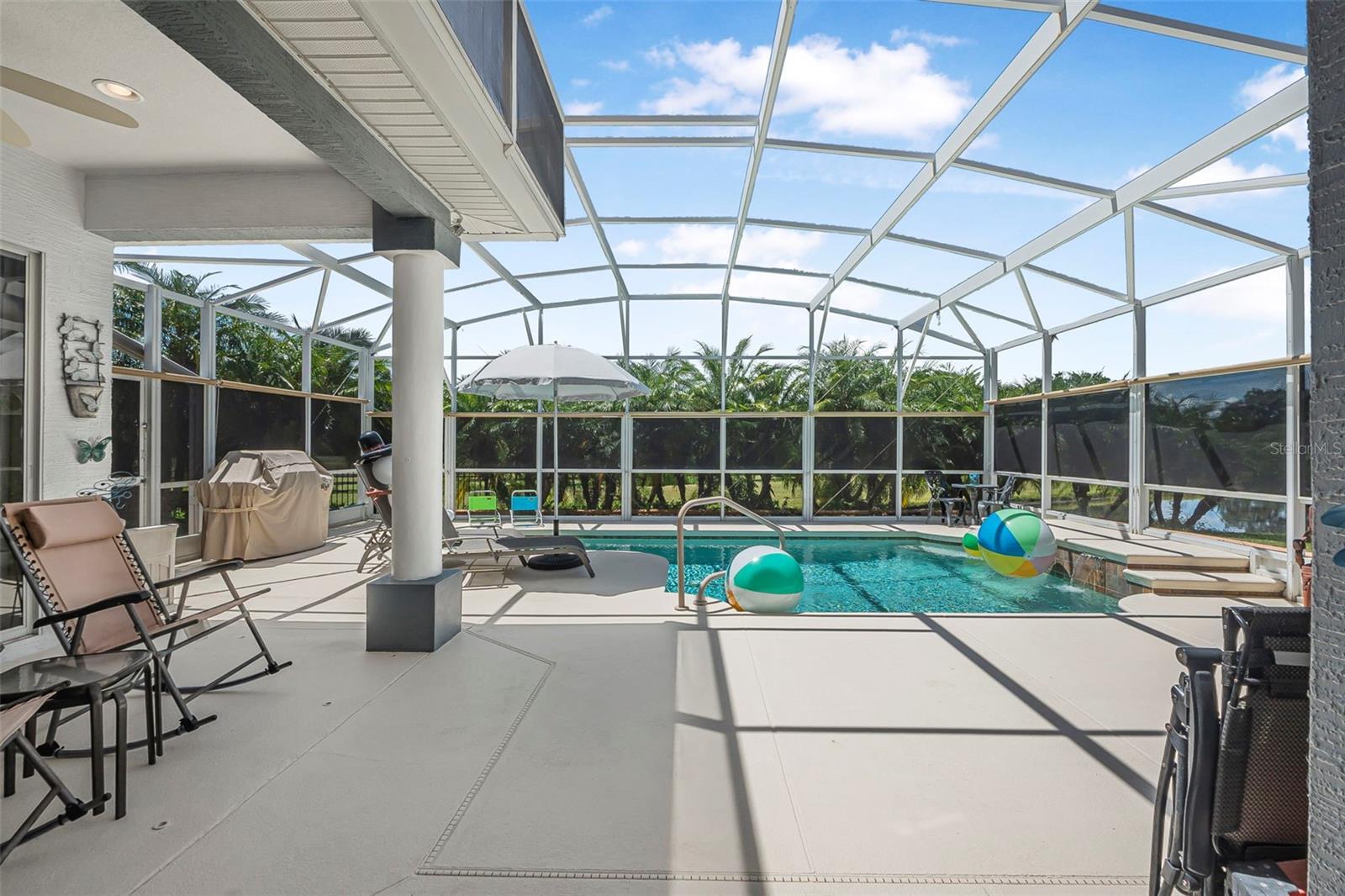 Premier Lot !POOL HOME !The property located at 3606 Maribella Dr, New Smyrna Beach, FL 32168 is a single-family home in the Venetian Bay subdivision. It was built in 2005 and has a tile roof. This home features: 3 bedrooms and 3 bathrooms. An open floor plan. A spacious master suite with wood flooring, crown molding and a walk-in closet. A master bath with a soaking tub, large tiled walk-in shower and pool access. Kitchen with wood 36''cabinets, granite counters and stainless steel appliances. Oversize 3-car garage. Screened patio with a pool fountain, salt water, and solar heated pool. Located on a corner lot overlooking pasture land for privacy.KitchenAid Refrigerator, Stove and Microwave appliances included Kenmore Elite large capacity electric Washer and Dryer included. Pool has a rooftop passive (non-electric) Solar-Fit Pool Heater. Pool is a smaller capacity pool with swim out portion located at one end. 2 Waterfalls. ~10,000 gallons. Salt Water pool with Hayward Chlorinator type system for generating Chlorine. Variable Speed Pool Motor for efficiency. The HVAC is an American Standard system. Unit is enclosed within the home environment for efficiency. It is 20 years old, but has been maintained by the homeowner. Rainbird irrigation system. Hurricane Panels for doors and windows, except for 2 sliding patio doors in the Lanai Pool area. Tile Roof. Original. House painted in 2022. Garage Door Openers have battery back-up.