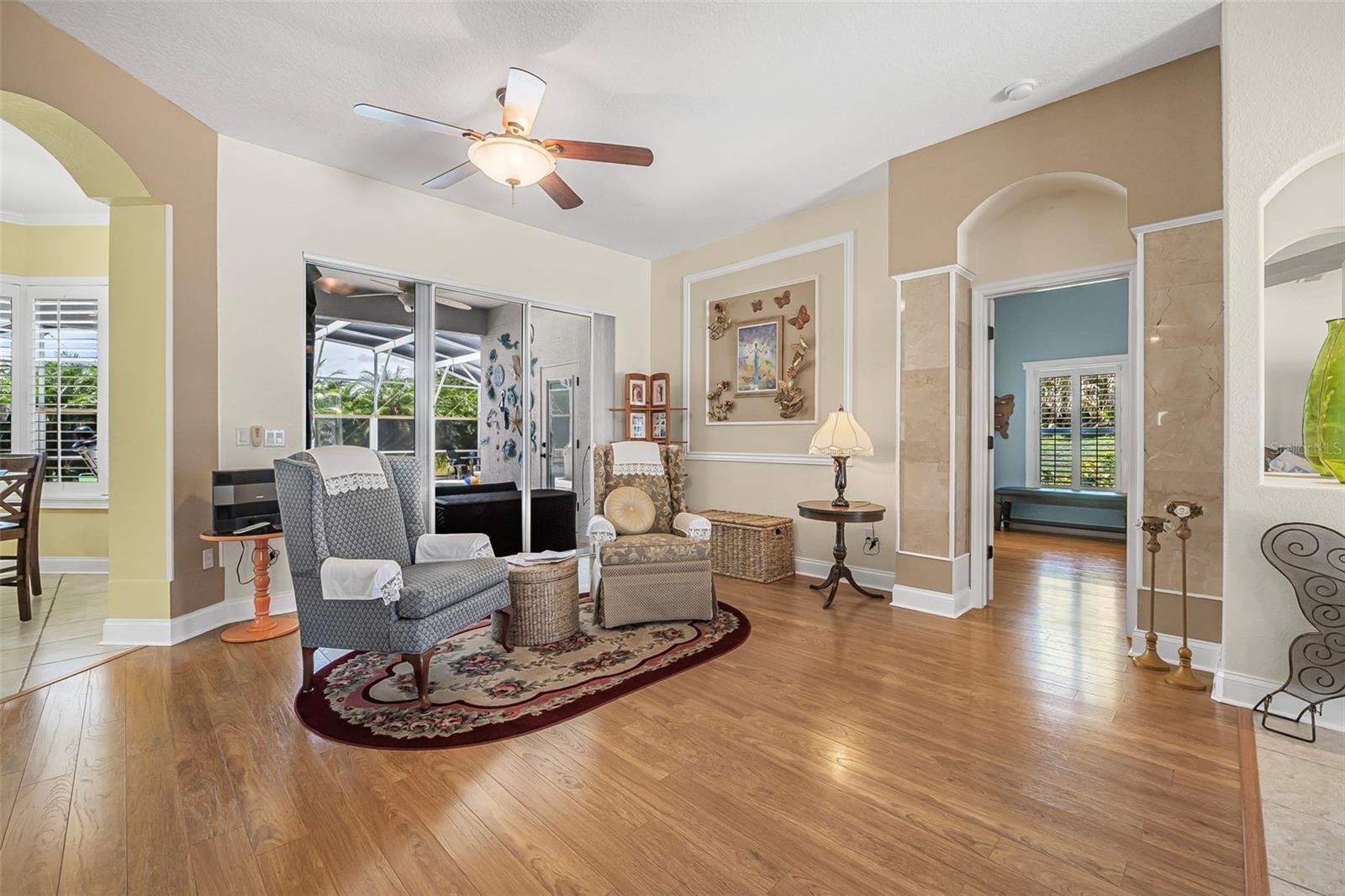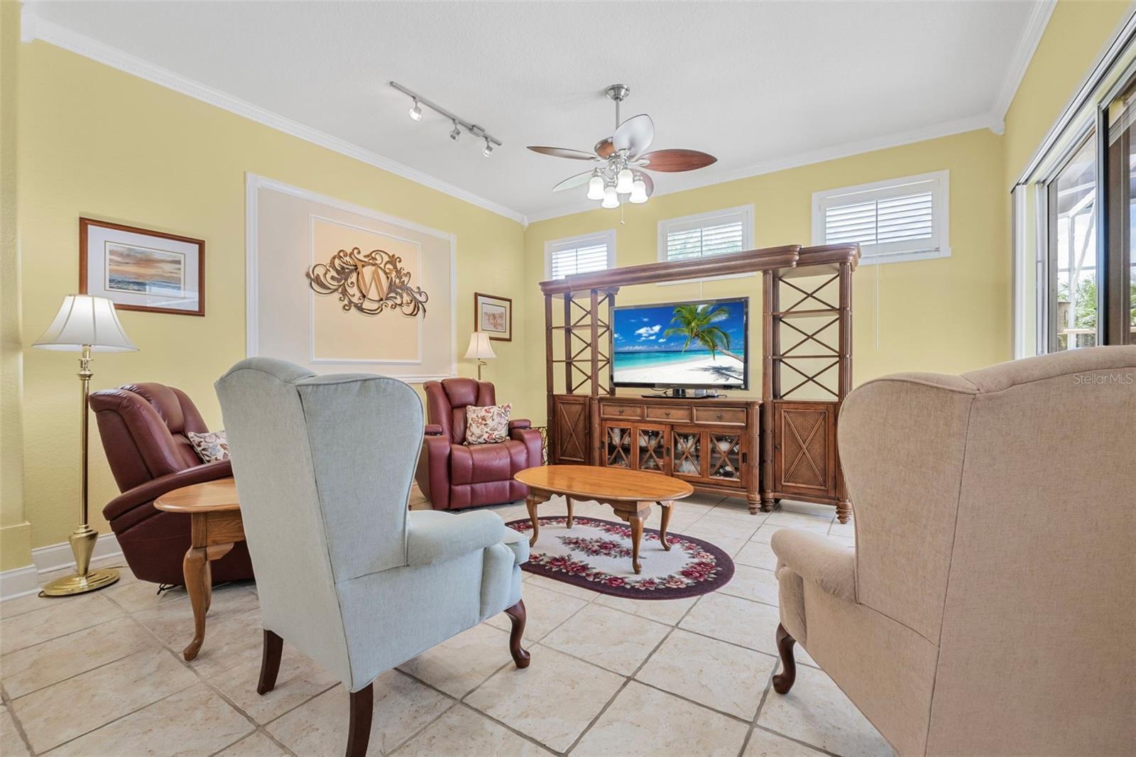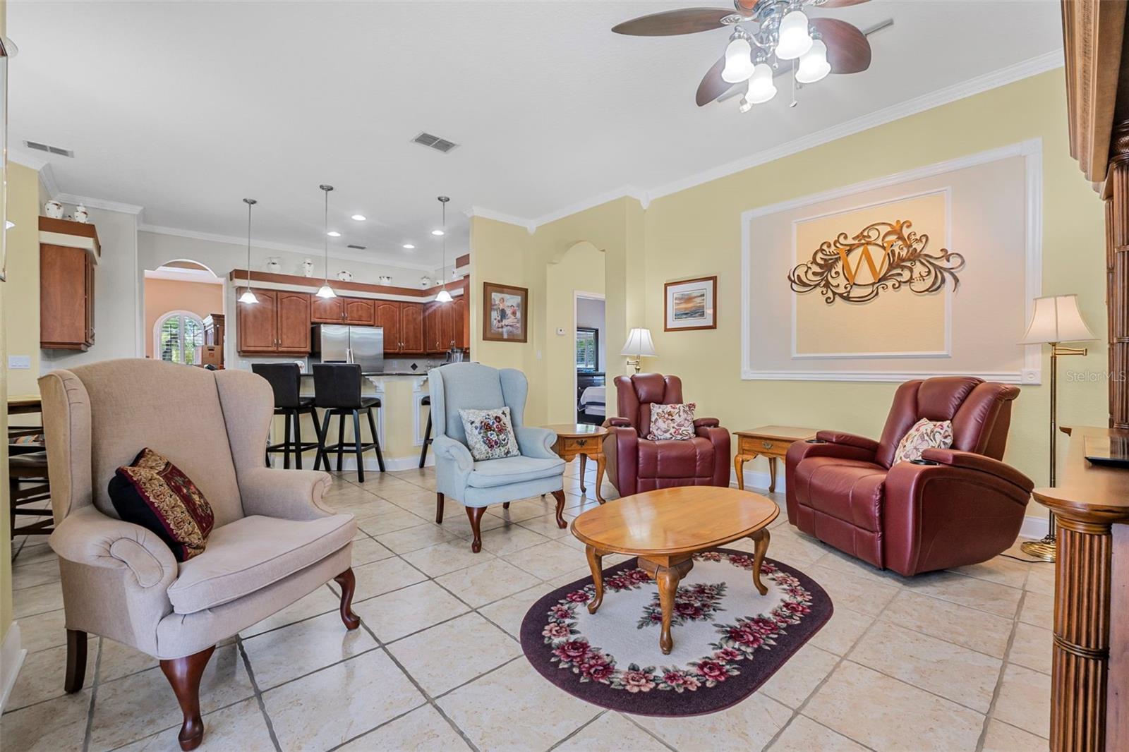 - Ceiling Fans(s), Crown Molding, High Ceilings, Open Floorplan