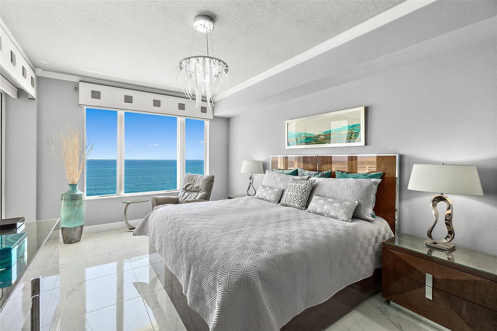STUNNING DIRECT OCEANFRONT AND LUXURIOUS HOME DESIGN THAT EXUDES ELEGANCE AND MODERNITY. THIS LUXURIOUS CONDOMINIUM HOME IS EXPERTLY CRAFTED WITH ATTENTION TO DETAIL, COMBINING ARCHITECTURAL EXCELLENCE WITH FUNCTIONAL LIVING SPACES. WALLS REMOVED AND UPGRADES IN PLACE, EVERY ROOM SHOWCASES PICTURESQUE OCEAN VIEWS & BALCONY ACCESS. THE SECURE ACCESS ELEVATOR OPENS TO AN INTERIOR ELEVATOR VESTIBULE THAT LEADS TO THE ELEGANTLY APPOINTED OPEN-CONCEPT FLOOR PLAN THAT SEAMLESSLY CONNECTS THE MAIN LIVING AREAS WITH THE OUTDOORS, CREATING AN IDEAL SPACE FOR ENTERTAINING AND FAMILY GATHERINGS. CUSTOM CABINETRY, QUARTZ COUNTERTOPS, COORDINATING BACKSPLASH, A LARGE, CENTER ISLAND MAKES THIS KITCHEN BOTH BEAUTIFUL AND BRILLIANTLY FUNCTIONAL. DECORATOR LIGHTING BEAUTIFULLY HIGHLIGHTS THE DINING AREA, WHILE REMOTE SHADES AND CUSTOMIZED DRAPES ADORN THE GRAND LIVING ROOM THAT EXTENDS TO THE RECESSED BALCONY WHERE YOU CAN ENJOY THE SIGHTS AND SOUNDS OF THE OCEAN IN COMPLETE PRIVACY. WAKE TO THE PELICANS FLYING BY AND ROCKET LAUNCHES LATER IN THE DAY. BOTH OCEANFRONT BEDROOMS ARE EQUIPPED WITH WALK-IN CLOSETS AND SPA STYLE BATHS. NATURAL LIGHT FILLS THE LIVING AREAS, ENHANCED BY HURRICANE SHUTTERS. ENTERTAINMENT-READY ACROSS FROM THE BELLAIR PLAZA, HOME TO PUBLIX, RESTAURANTS, WALGREENS, A WIDE ARRAY OF SHOPPING, NAIL SALONS AND ICE CREAM PARLORS. RICH IN AMENITIES, THE MEDITERRANEAN OFFERS 2 DEDICATED GYMS, A TROPICAL OCEANFRONT SWIMMING POOL AND SPA WITH PRIVATE BEACH ACCESS, A SOCIAL ROOM A GAME ROOM, THEATRE ROOM AND LARGE PARTY TERRACE. PROFESSIONAL ON-SITE MANAGEMENT MAINTAINS THE EXCLUSIVE, QUIET LUXURY THAT DEFINES THE EVERYDAY EXPERIENCE. ENJOY PRIVACY AND EXCLUSIVITY WITH ONLY 3 UNITS PER FLOOR, PLUS AN ASSIGNED PARKING SPACE AND STORAGE CAGE.