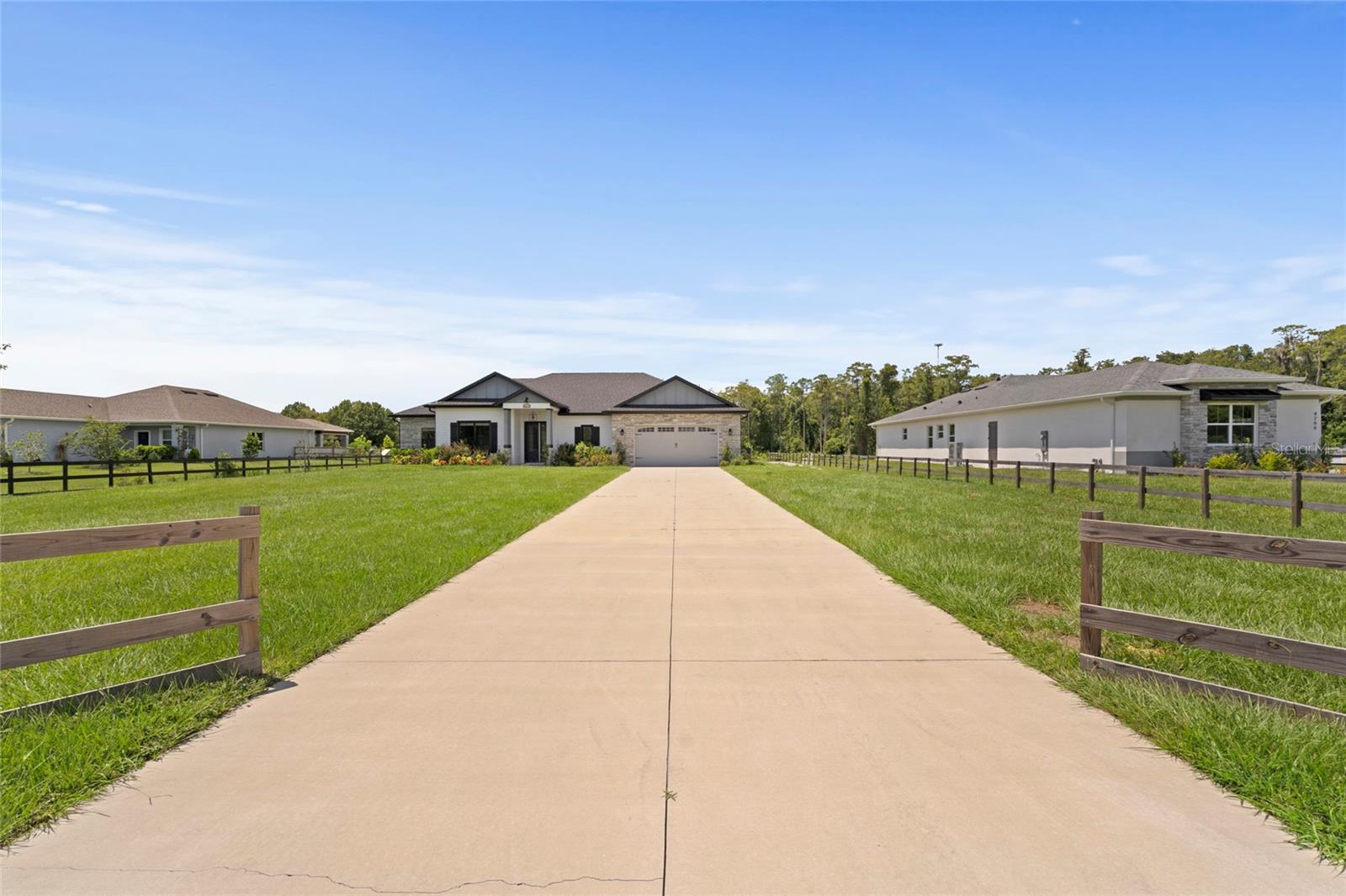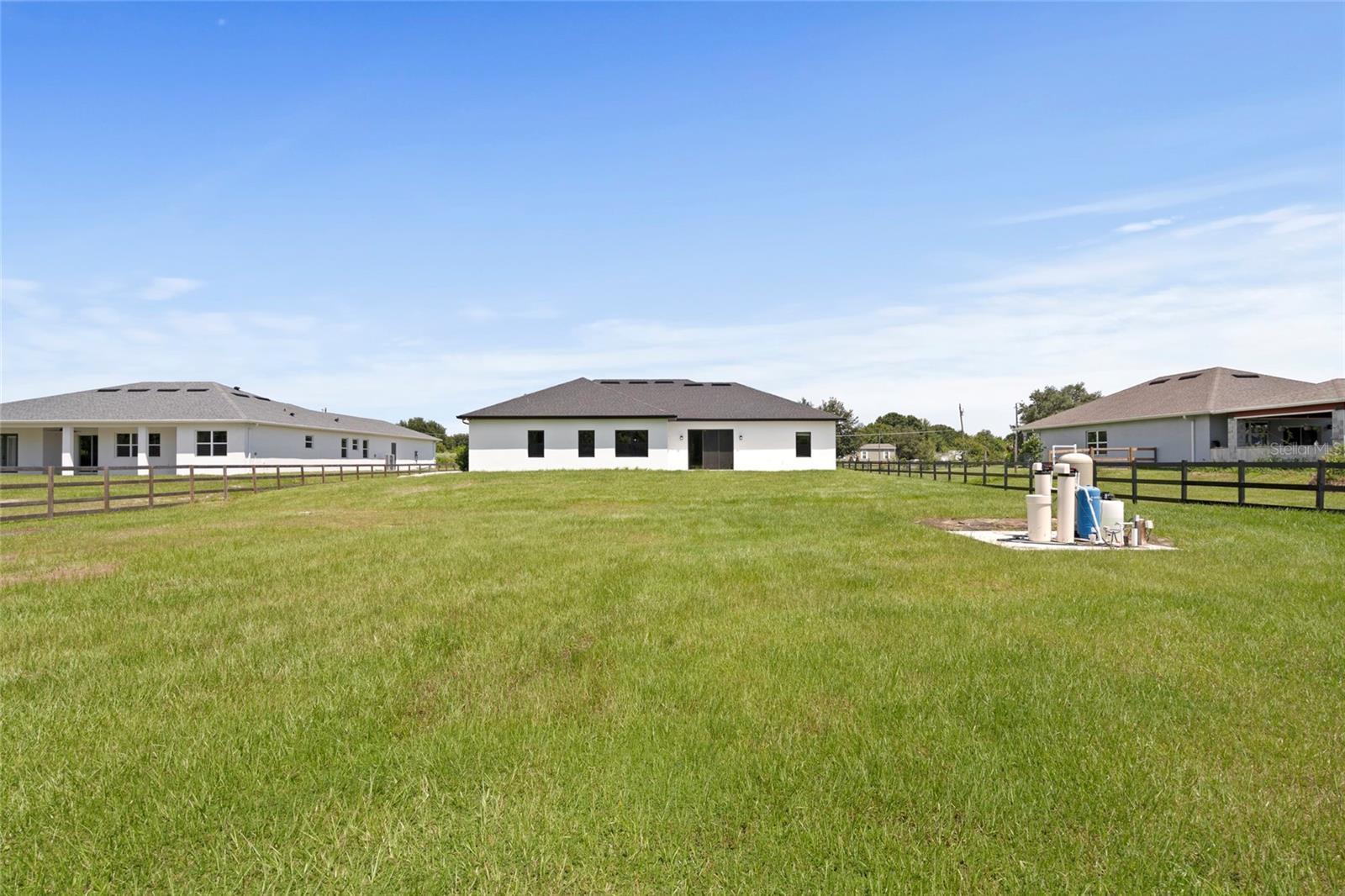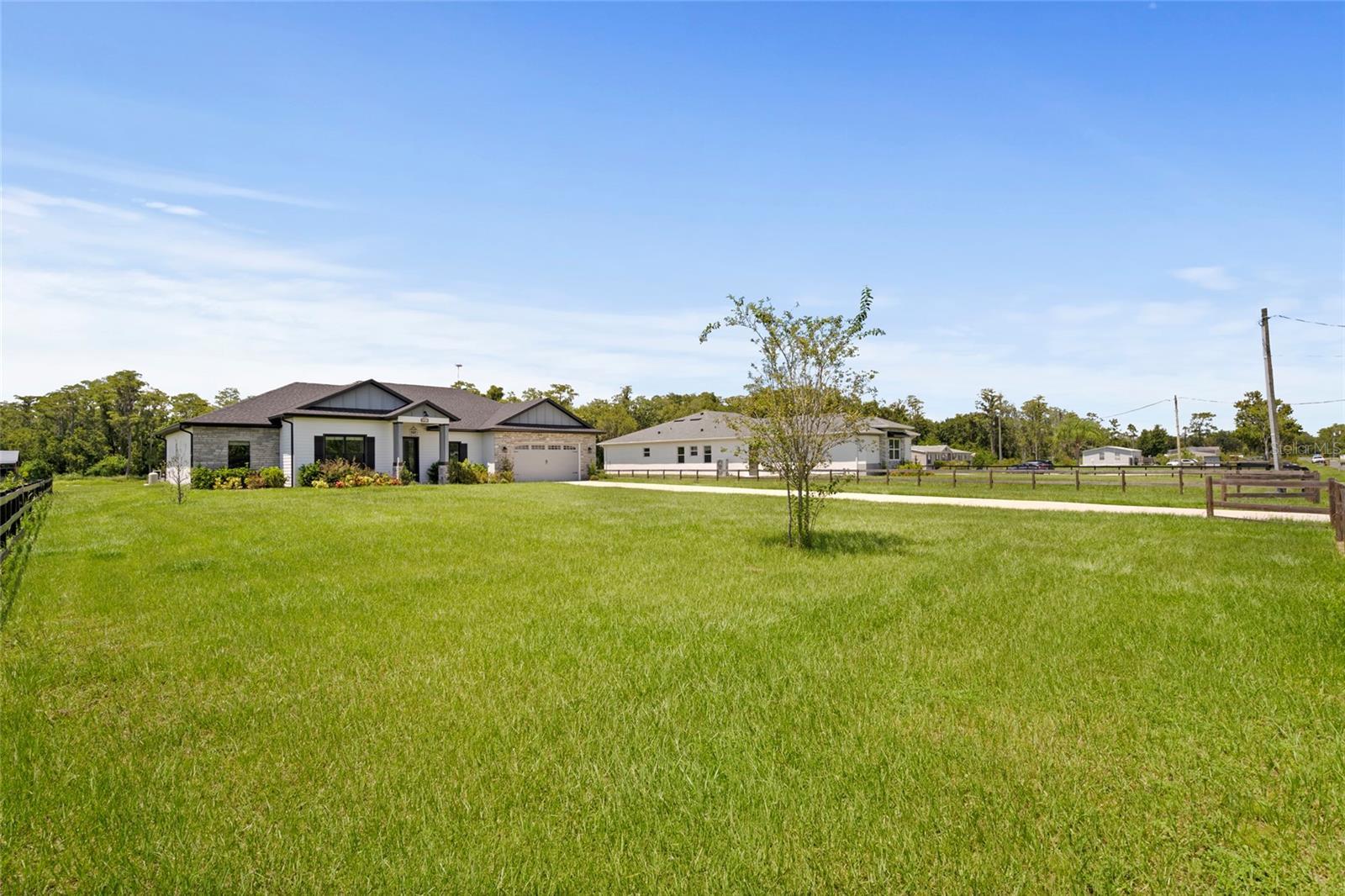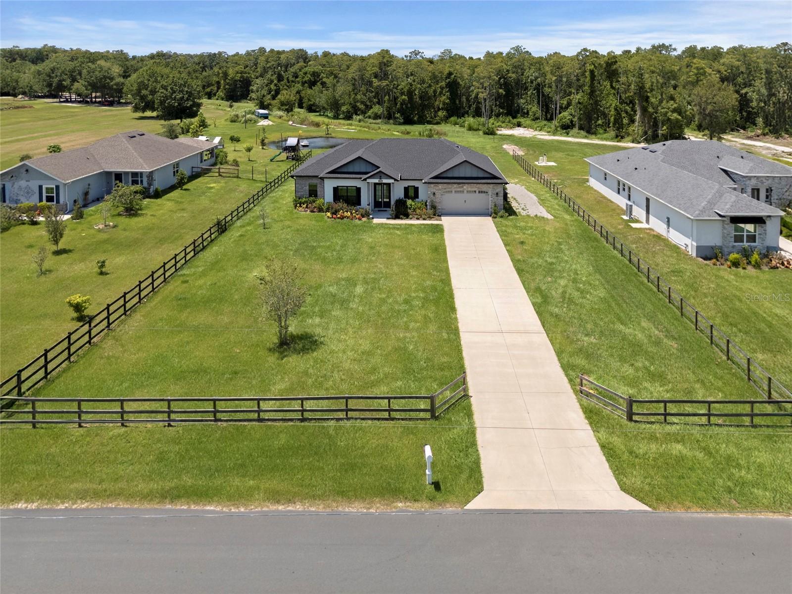 Looking for an almost brand new home on acreage with NO HOA? Look no further! This custom-built 4 bedroom, 2.5 bathroom home offers 2,582 sq. ft. of thoughtfully designed living space, perfect for a growing family. The gourmet kitchen is a showstopper, featuring a butler’s pantry, quartz countertops, center island, farmhouse sink, pull-out garbage cabinet, designer backsplash, chimney-style range hood, built-in oven & microwave, and a breakfast bar. The spacious great room boasts built-in cabinets, custom counters, and an electric fireplace—perfect for cozy evenings. The luxurious master suite includes a tray ceiling, oversized walk-in closet, hardwood floors, a soaker tub, separate shower, dual vanities, and linen cabinets. Additional upgrades include: • 5 ¼” baseboards & crown molding • Ceiling fans throughout • Double-pane insulated windows • Rain gutters & 3-panel sliding glass pocket door • Motion detectors, water softener, & soft-close cabinetry • Bluetooth speakers in all bathrooms • TV hookup on the back patio This home is built with concrete block, gable board, and Hardie board siding for long-lasting durability. Hardwood floors flow throughout the home, with carpet in three bedrooms. Lot dimensions are approximately 110’ x 593’ x 110’ x 597’, offering plenty of space for outdoor enjoyment.