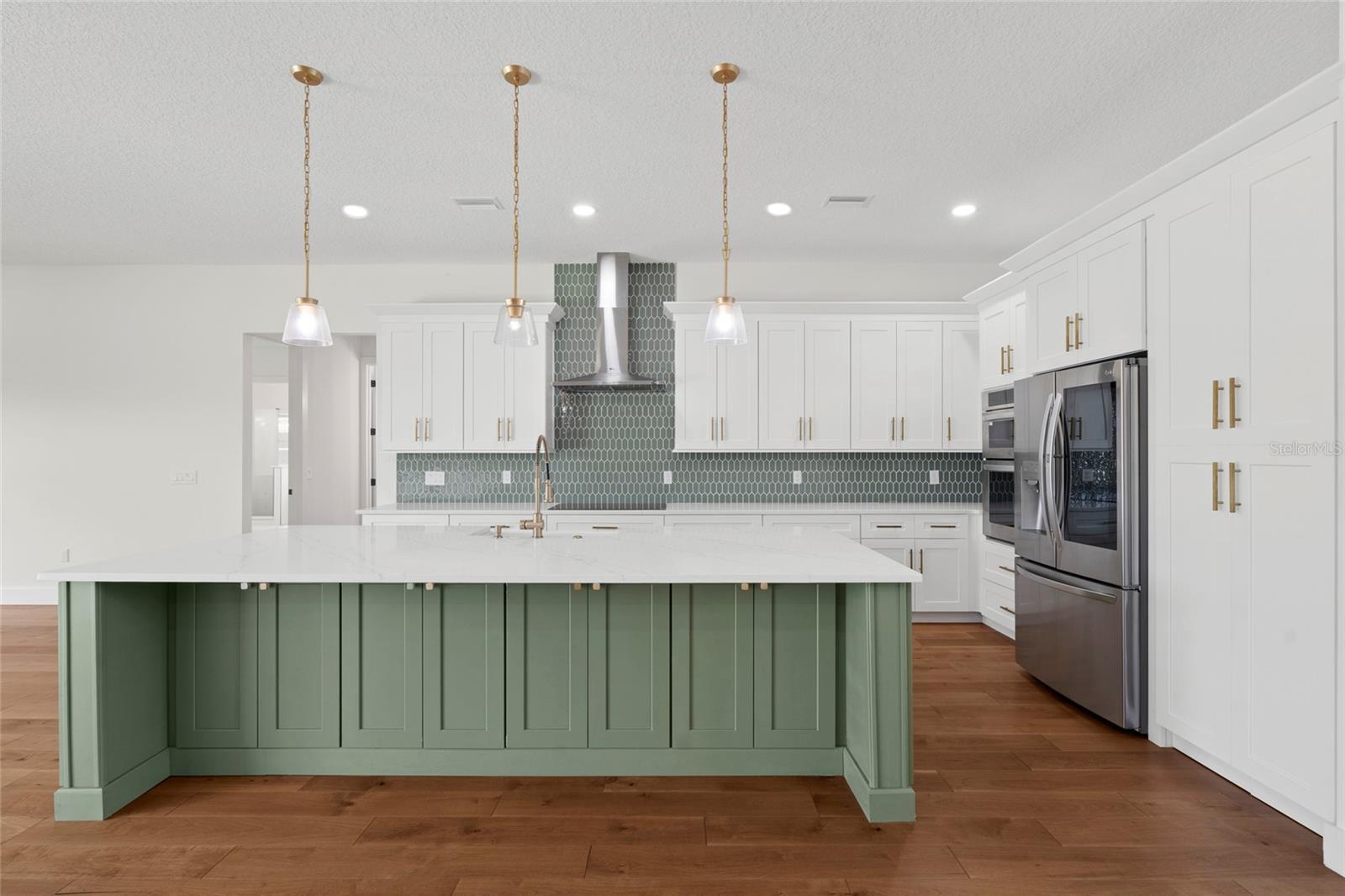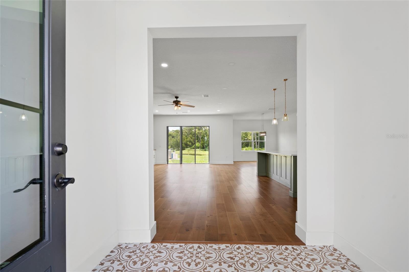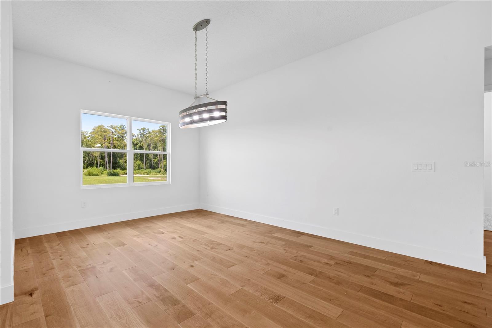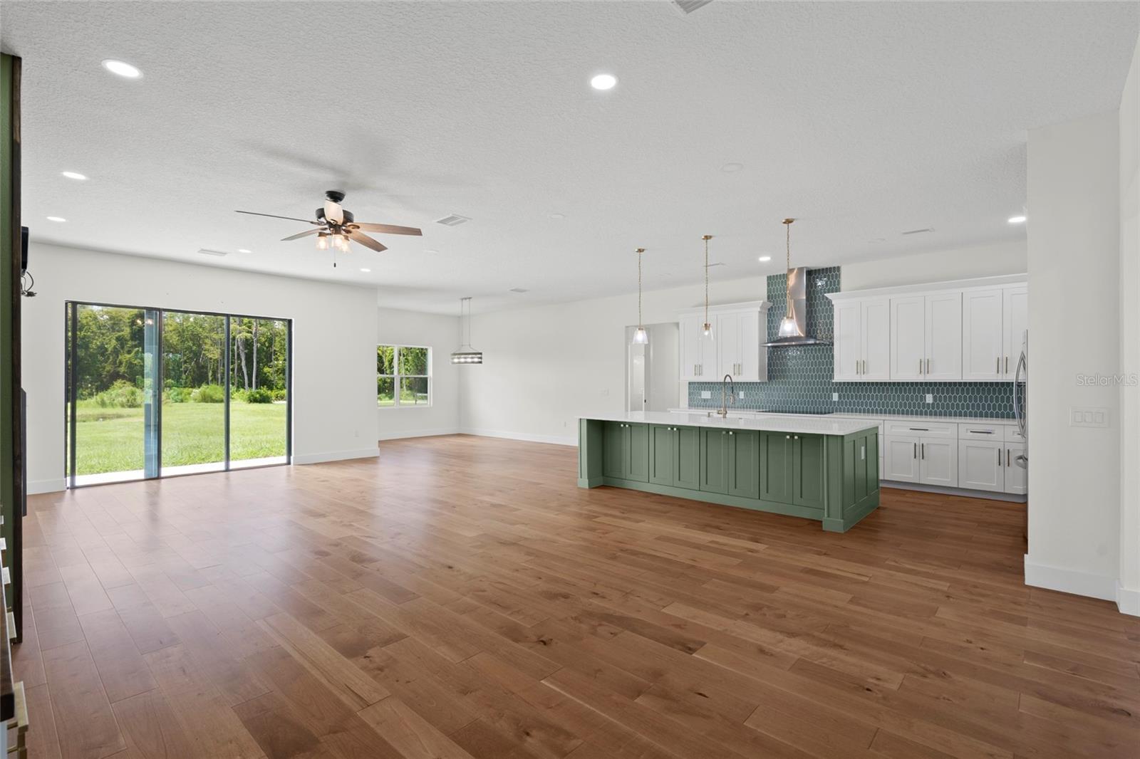 Looking for an almost brand new home on acreage with NO HOA? Look no further! This custom-built 4 bedroom, 2.5 bathroom home offers 2,582 sq. ft. of thoughtfully designed living space, perfect for a growing family. The gourmet kitchen is a showstopper, featuring a butler’s pantry, quartz countertops, center island, farmhouse sink, pull-out garbage cabinet, designer backsplash, chimney-style range hood, built-in oven & microwave, and a breakfast bar. The spacious great room boasts built-in cabinets, custom counters, and an electric fireplace—perfect for cozy evenings. The luxurious master suite includes a tray ceiling, oversized walk-in closet, hardwood floors, a soaker tub, separate shower, dual vanities, and linen cabinets. Additional upgrades include: • 5 ¼” baseboards & crown molding • Ceiling fans throughout • Double-pane insulated windows • Rain gutters & 3-panel sliding glass pocket door • Motion detectors, water softener, & soft-close cabinetry • Bluetooth speakers in all bathrooms • TV hookup on the back patio This home is built with concrete block, gable board, and Hardie board siding for long-lasting durability. Hardwood floors flow throughout the home, with carpet in three bedrooms. Lot dimensions are approximately 110’ x 593’ x 110’ x 597’, offering plenty of space for outdoor enjoyment.