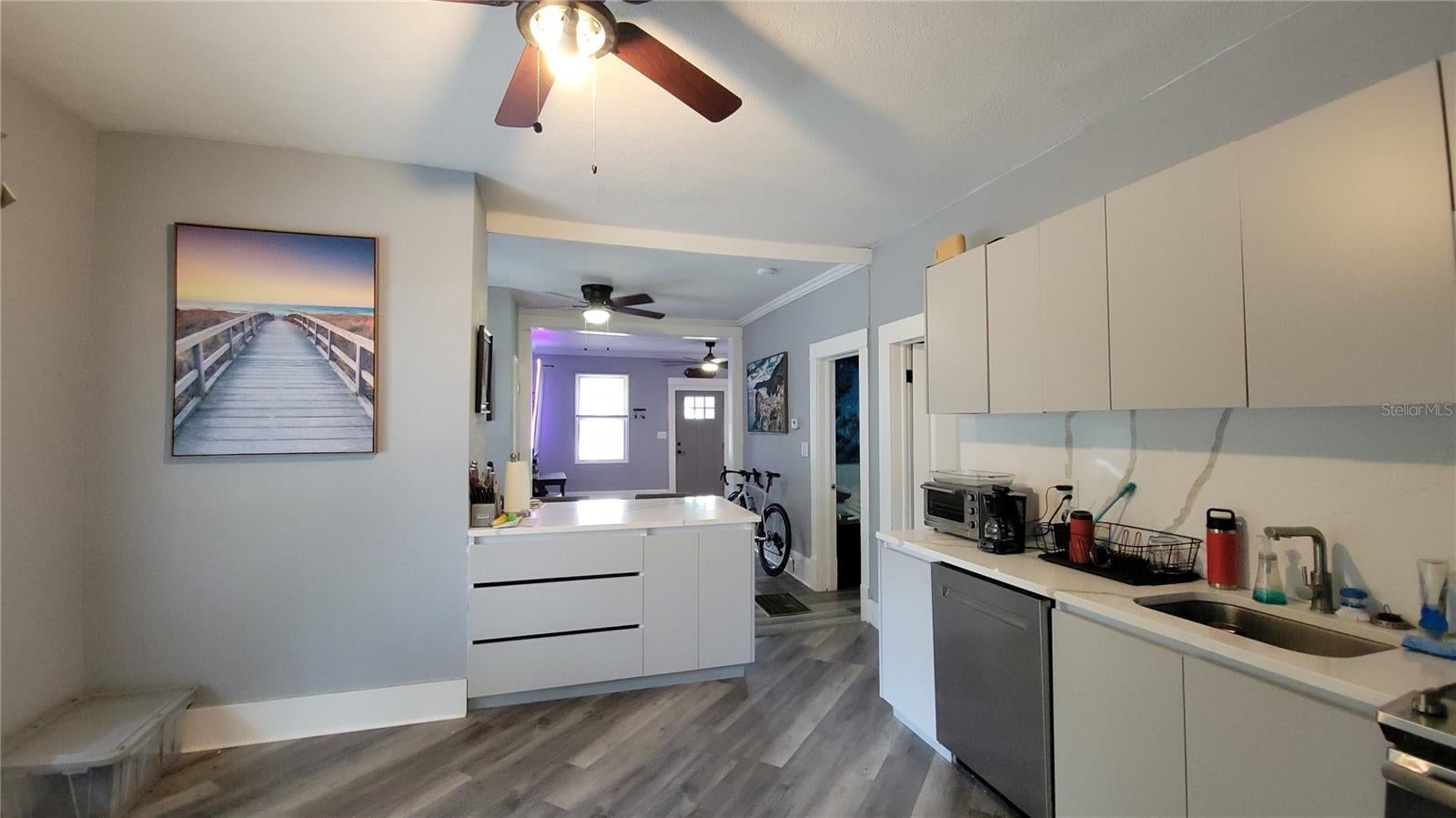 DELAND: Move-in ready and beautifully updated, this 2 bedroom, 1.5 bath home in DeLand offers modern comfort in a prime location. The home features a brand-new kitchen with real wood cabinets and quartz countertops, an updated bathroom, new flooring throughout, and fresh finishes that make it feel like new. You’ll love the convenience of being just minutes from shopping, the hospital, and the charming Downtown DeLand, this property also includes an 8’ x 10’ storage shed in the backyard for extra space. Tenant/s will be responsible for lawn care, water for the property, and must share Wi-Fi and laundry access with the occupant of the 3rd bedroom, which has a private entrance and is not part of this rental. NOTE: (The 3rd bedroom has its own private entrance and is not part of this rental, offering a nice sense of separation and privacy.)