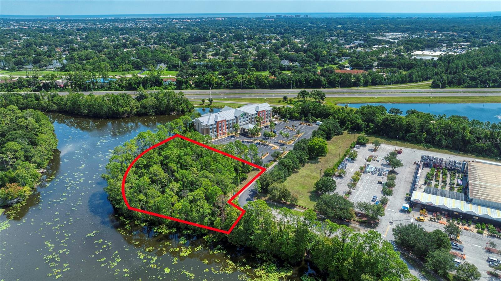 1.36 acre parcel of prime commercial real estate. This unimproved lot is right off of I-95 and Palm Coast Parkway directly adjacent to the Holiday Inn Express & Suites in the Home Depot Center. With 470 ft. of water frontage, it would make a great spot for a restaurant, retail store or professional offices.