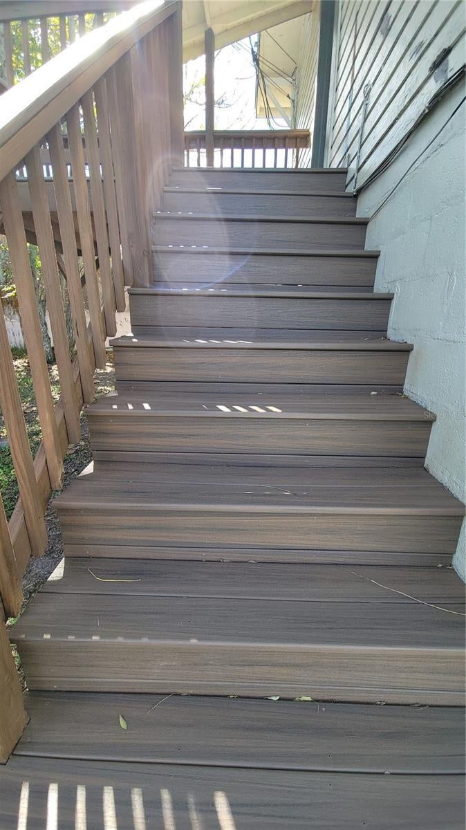 DELAND: Adorable second-story 1-bedroom apartment, NEW Kitchen Granite countertops and NEW WOOD Cabinets A DREAM KITCHEN, WOOD FLOORS in bedroom, plus a spacious wood deck overlooking a large 0.65-acre yard. Ready for Immediate Occupancy. Lawn care is provided, and the home has been freshly painted. Inside, you’ll find a full-size stove, refrigerator, and volume ceilings that make the space bright and airy. Conveniently located behind Publix and a short walk to Walmart. Enjoy a covered patio downstairs, perfect for BBQs. NO need for a car!!