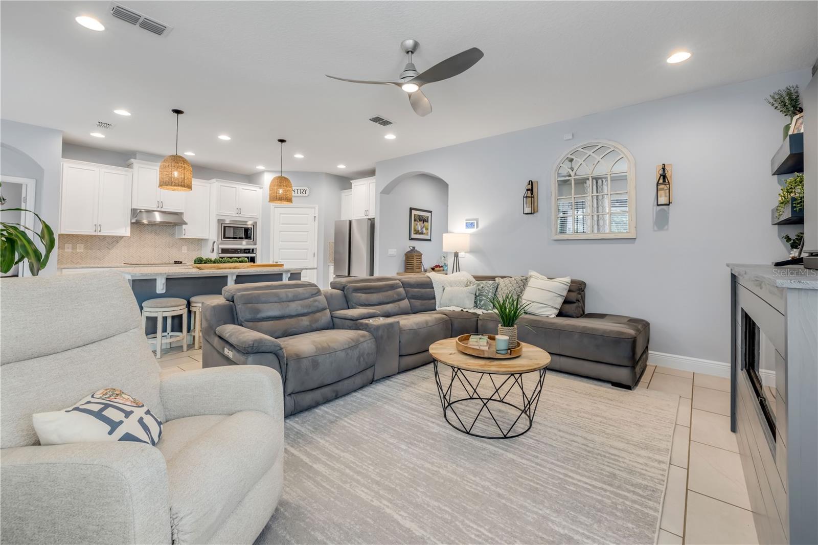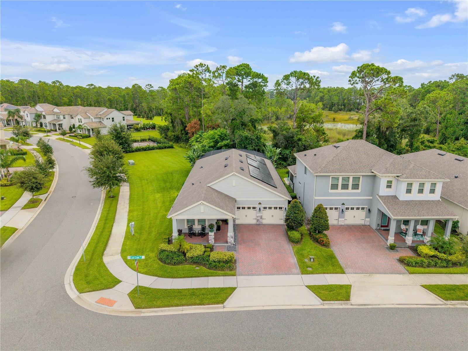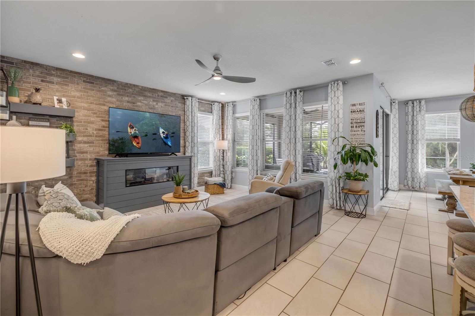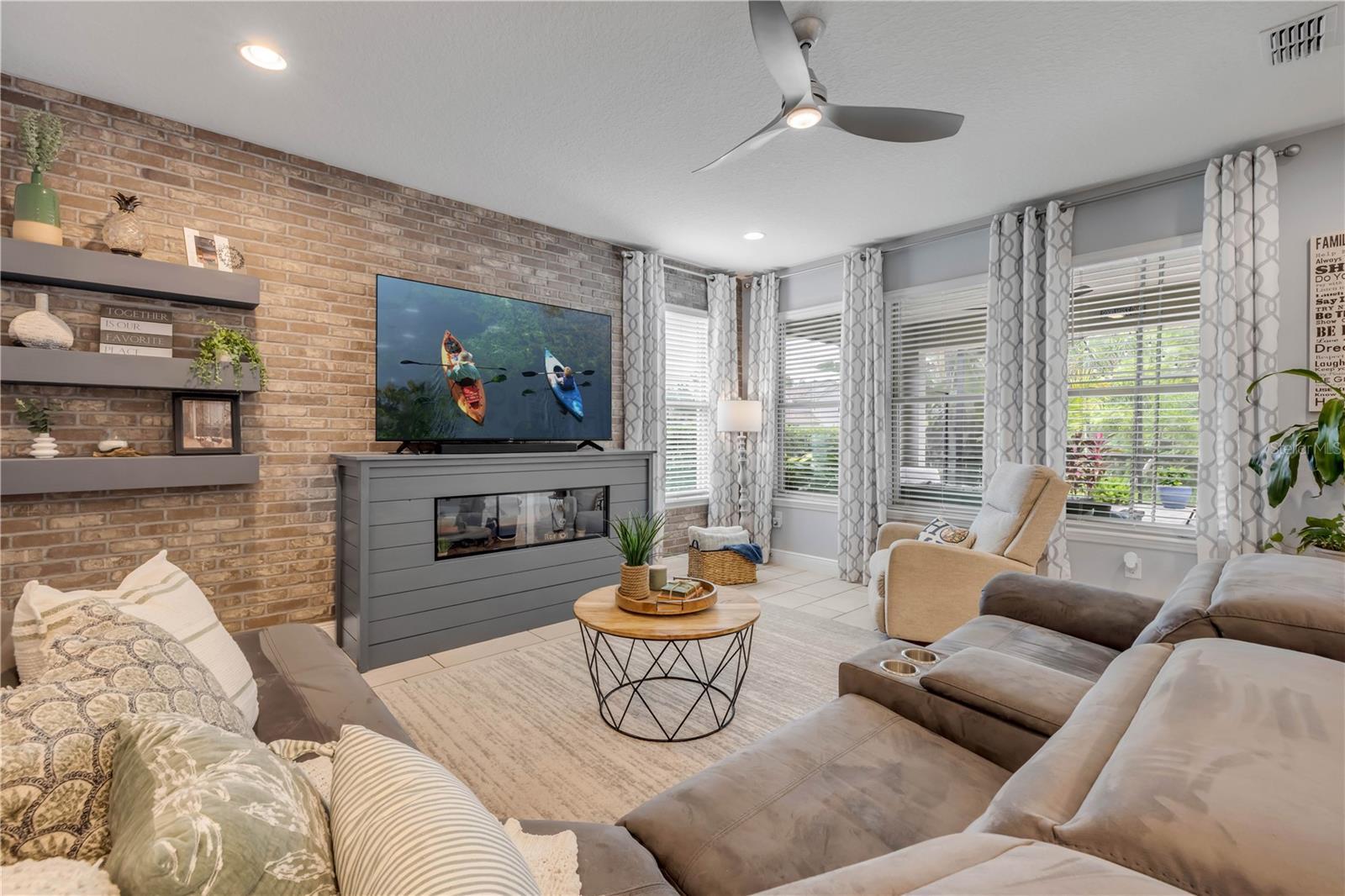 The Bellmore in Waterleigh! This elegant single-story four-bedroom, two-bath residence offers 2,984 total square feet of refined living on a premier corner lot with wooded privacy and pond access. Blending timeless design with modern upgrades, this home showcases luxury finishes inside and out. The gourmet kitchen is a centerpiece, featuring stainless steel appliances, a walk-in pantry, and an oversized island with abundant prep and seating space. It opens seamlessly to the spacious family room, creating a setting for gatherings. Designer touches include recessed wood-insert ceilings in the foyer and primary suite, a dramatic brick accent wall in the living room, upgraded lighting throughout and a striking chandelier in the foyer. The primary suite offers a custom closet organization system, while ceiling fans are thoughtfully placed in almost every room. Outdoor living rivals a private resort with a screened, heated saltwater pool and cascading waterfalls, surrounded by lush tropical landscaping. The covered lanai features a 10-foot drop-down projection screen for outdoor cinema nights, while brick pavers enhance the driveway, walkways, and patio. A 13.67-kilowatt solar system with net metering ensures energy efficiency. From the backyard, enjoy nightly views of the spectacular Disney fireworks—an unforgettable backdrop unique to Central Florida living. Optional luxury additions for additional purchase include a four-seat electric golf cart with charger, professional-grade garage storage racks and a complete home gym with free weights. Waterleigh is Winter Garden’s flagship planned community, offering two expansive clubhouses with resort-style pools, state-of-the-art fitness centers, tennis courts, miniature golf, walking trails, dog parks, community gardens and scenic lakes with fishing piers. Ideally near Disney, major highways, shopping and dining, Waterleigh combines convenience with unmatched amenities. Ranked as one of the top communities in the United States, Winter Garden is celebrated for its vibrant downtown, lifestyle amenities and exceptional quality of life—making this home a rare opportunity to own in one of the nation’s desirable areas. This one is a must-see. By appointment only.