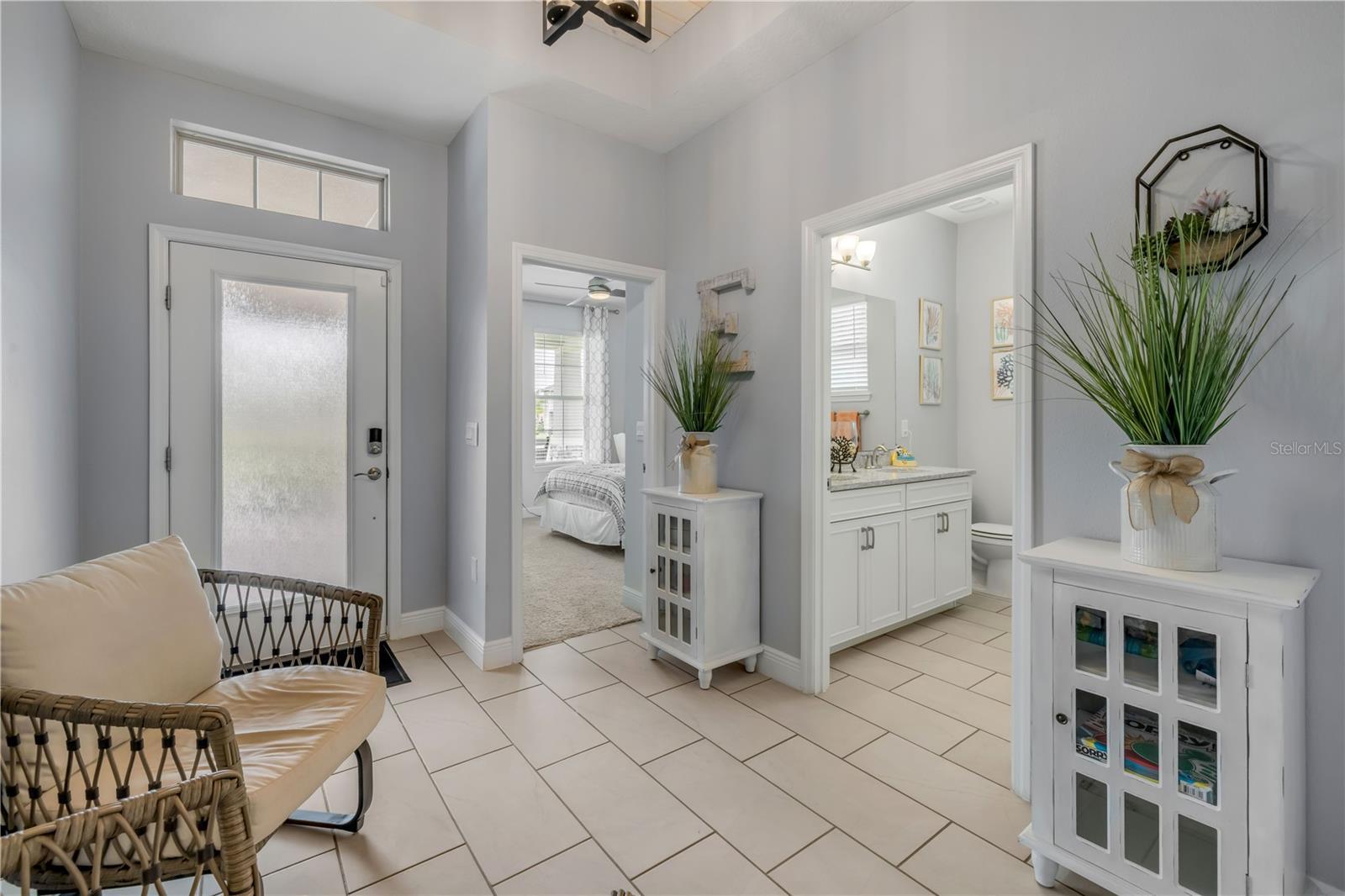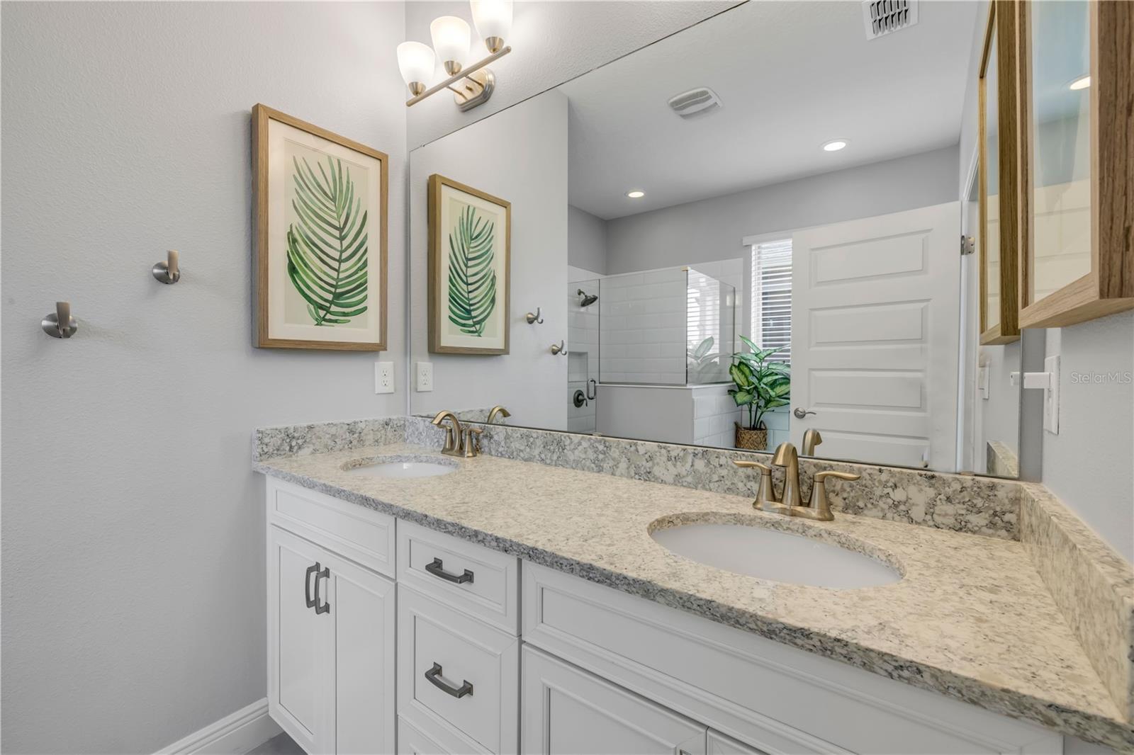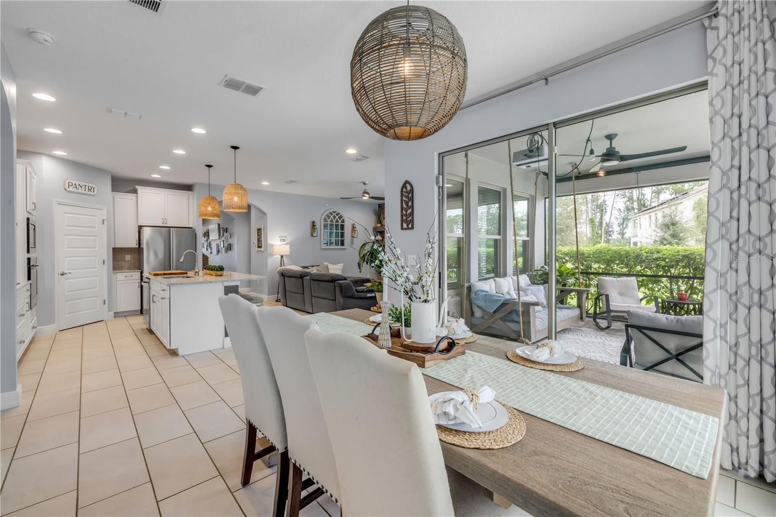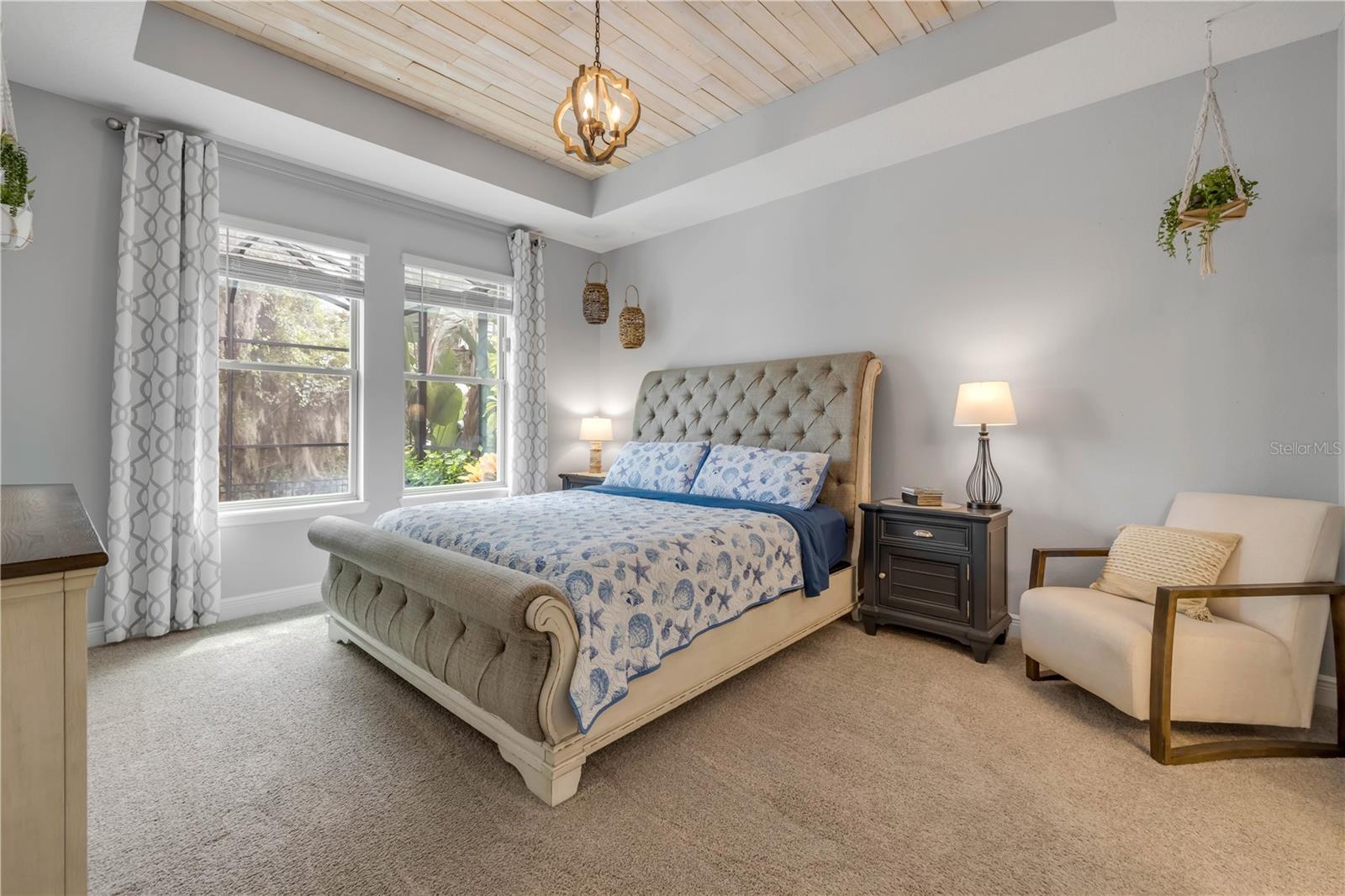The Bellmore in Waterleigh! This elegant single-story four-bedroom, two-bath residence offers 2,984 total square feet of refined living on a premier corner lot with wooded privacy and pond access. Blending timeless design with modern upgrades, this home showcases luxury finishes inside and out. The gourmet kitchen is a centerpiece, featuring stainless steel appliances, a walk-in pantry, and an oversized island with abundant prep and seating space. It opens seamlessly to the spacious family room, creating a setting for gatherings. Designer touches include recessed wood-insert ceilings in the foyer and primary suite, a dramatic brick accent wall in the living room, upgraded lighting throughout and a striking chandelier in the foyer. The primary suite offers a custom closet organization system, while ceiling fans are thoughtfully placed in almost every room. Outdoor living rivals a private resort with a screened, heated saltwater pool and cascading waterfalls, surrounded by lush tropical landscaping. The covered lanai features a 10-foot drop-down projection screen for outdoor cinema nights, while brick pavers enhance the driveway, walkways, and patio. A 13.67-kilowatt solar system with net metering ensures energy efficiency. From the backyard, enjoy nightly views of the spectacular Disney fireworks—an unforgettable backdrop unique to Central Florida living. Optional luxury additions for additional purchase include a four-seat electric golf cart with charger, professional-grade garage storage racks and a complete home gym with free weights. Waterleigh is Winter Garden’s flagship planned community, offering two expansive clubhouses with resort-style pools, state-of-the-art fitness centers, tennis courts, miniature golf, walking trails, dog parks, community gardens and scenic lakes with fishing piers. Ideally near Disney, major highways, shopping and dining, Waterleigh combines convenience with unmatched amenities. Ranked as one of the top communities in the United States, Winter Garden is celebrated for its vibrant downtown, lifestyle amenities and exceptional quality of life—making this home a rare opportunity to own in one of the nation’s desirable areas. This one is a must-see. By appointment only.