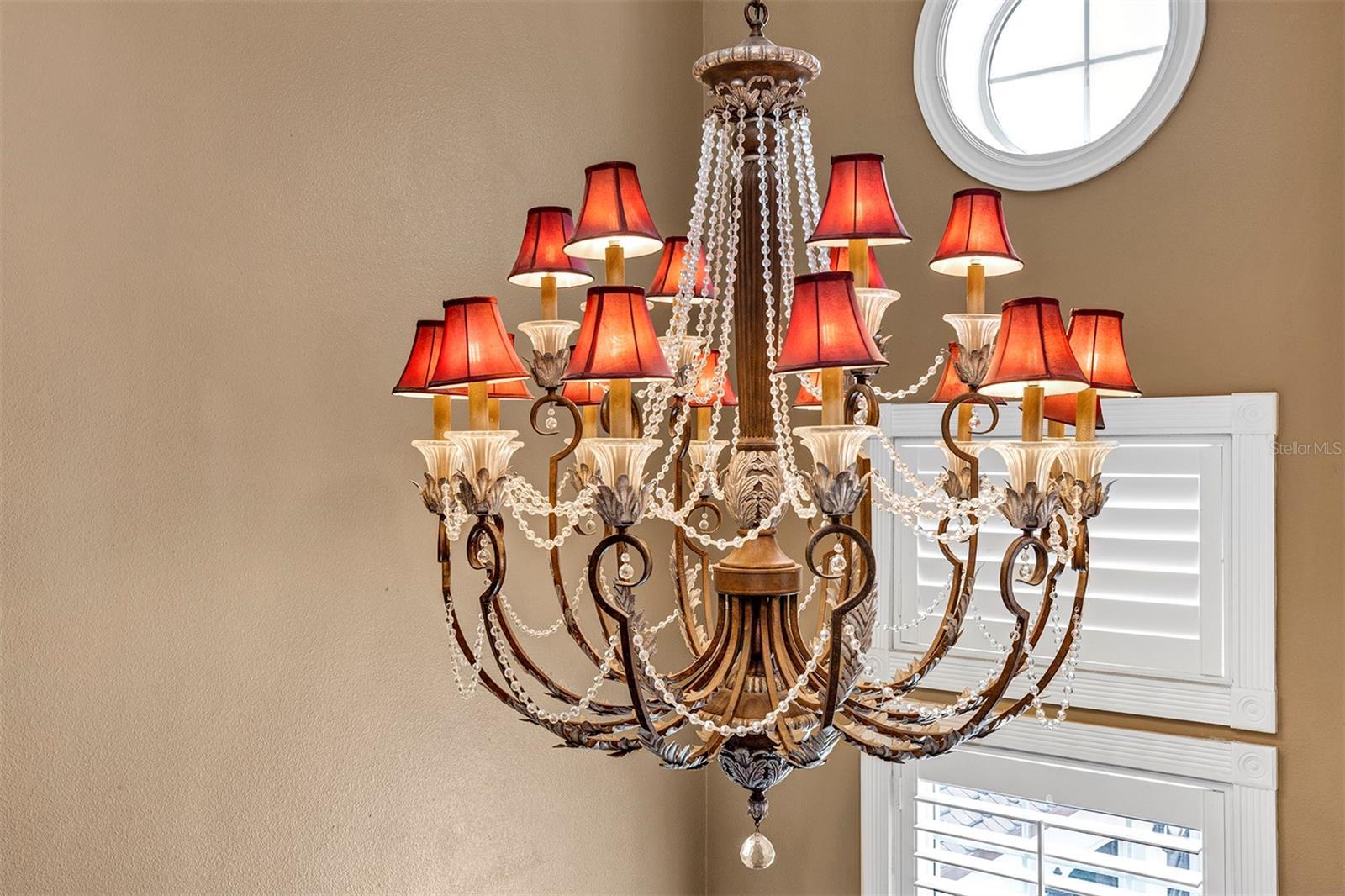 - Built-in Features, Ceiling Fans(s), Coffered Ceiling(s), Crown Molding, Eat-in Kitchen, High Ceilings, Open Floorplan, Primary Bedroom Main Floor, Solid Wood Cabinets, Split Bedroom, Stone Counters, Thermostat, Tray Ceiling(s), Walk-In Closet(s), Window Treatments