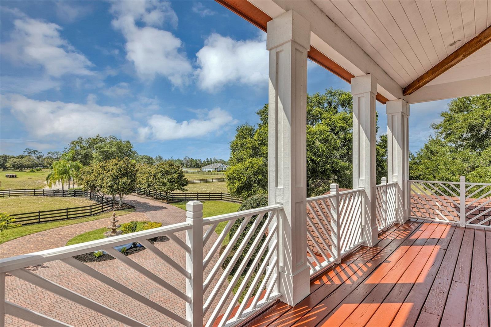 Experience timeless elegance and southern charm in this exquisite, one of a kind 9.66 acre estate, where every detail has been thoughtfully designed & engineered for comfort, beauty, and sophistication. Beyond the gated entrance, a grand paver driveway lined with magnolia trees leads to this stunning, custom 2-story home. This remarkable home showcases beautiful hand-scraped hickory floors with walnut inlays, soaring 12’ ceilings, 8' alder doors, plantation shutters, custom leather Nook ceiling, custom solar shades, and custom lighting & fans throughout. Exquisite millwork includes octagon columns encasing the Nook, 9” crown molding, and 7” baseboards. Glass-Craft mahogany double door entrance with 2 sets of stationary French doors welcomes you to the impressive Great Room with a decorative beam ceiling and double French doors leading out to the relaxing rear porch and wonderful pool oasis. The gourmet island Kitchen features granite counters, custom cabinetry, and a large walk-in storage pantry with room for wine storage. Charming breakfast Nook features a leather ceiling, bay window with views of the Viking Summer Kitchen, pool and the impressive gardens. You’ll love the formal Dining Room, which offers plenty of space to entertain friends & family on all sorts of special occasions. Magnificent & spacious Primary Suite encompasses a beautiful coffered ceiling, large walk-in closet, French doors leading to the rear porch and tranquil views. The luxurious en-suite boasts split vanities, 3 sinks, gorgeous travertine floor, large walk-thru shower, and an inviting free-standing platform tub. Climb the divine staircase up to the Family/Media Room highlighting a custom entertainment center, surround sound speakers, gas fireplace with Eldorado Stone, a Library/Craft Room, a half Bath, and front and rear porch balconies offering majestic sunrises & sunsets. The Family/Media Room also has a hidden attic access behind the book shelf. Enjoy the spacious Laundry Room which includes Washer & Dryer, granite counters and numerous cabinets. The 18 x 45 pool is nestled in surrounded by lush flowering plants & shrubs and features solar lights, 4 water jets, and soothing waterfalls. Even a private Pool House/Vanity Room is just steps away from the pool. You will love the Summer Kitchen featuring Viking appliances, Sedna granite counters, tongue & groove ceiling, and plenty of room to seat your guests at the bar. The oversized 3-Car Garage features an additional 20’ x 9’ workshop to keep all your tools & toys neatly stored, as well as a Generac generator. This amazing property includes a 10 x 16 storage shed, banana trees & a citrus tree too! A horse lover's dream with a 58 x 36 Main Barn complete with etched flooring, hay storage, 4- 12 x 12 stalls with Dutch doors to paddocks, fans & water supply in each stall, plus a 24 x 12 stall for foaling or equipment storage. The Tack Room/Barn Office features brick flooring, tongue & groove ceiling, cedar beams, cabinets, and a butcher block table. The Second Barn is 22 x 44 and offers 2- 12 x 12 stalls w/ fans, water supply, European style gates & partition walls, tongue & groove Tack Room/Barn Office, hay storage, and let's not forget the 4 chandeliers. Painted four-board fencing surrounds the entire property w/ gates between paddocks. This gorgeous Southern Plantation style home and horse property is truly “one of a kind” and ready for you to discover all it has to offer to begin your own fabulous memories.