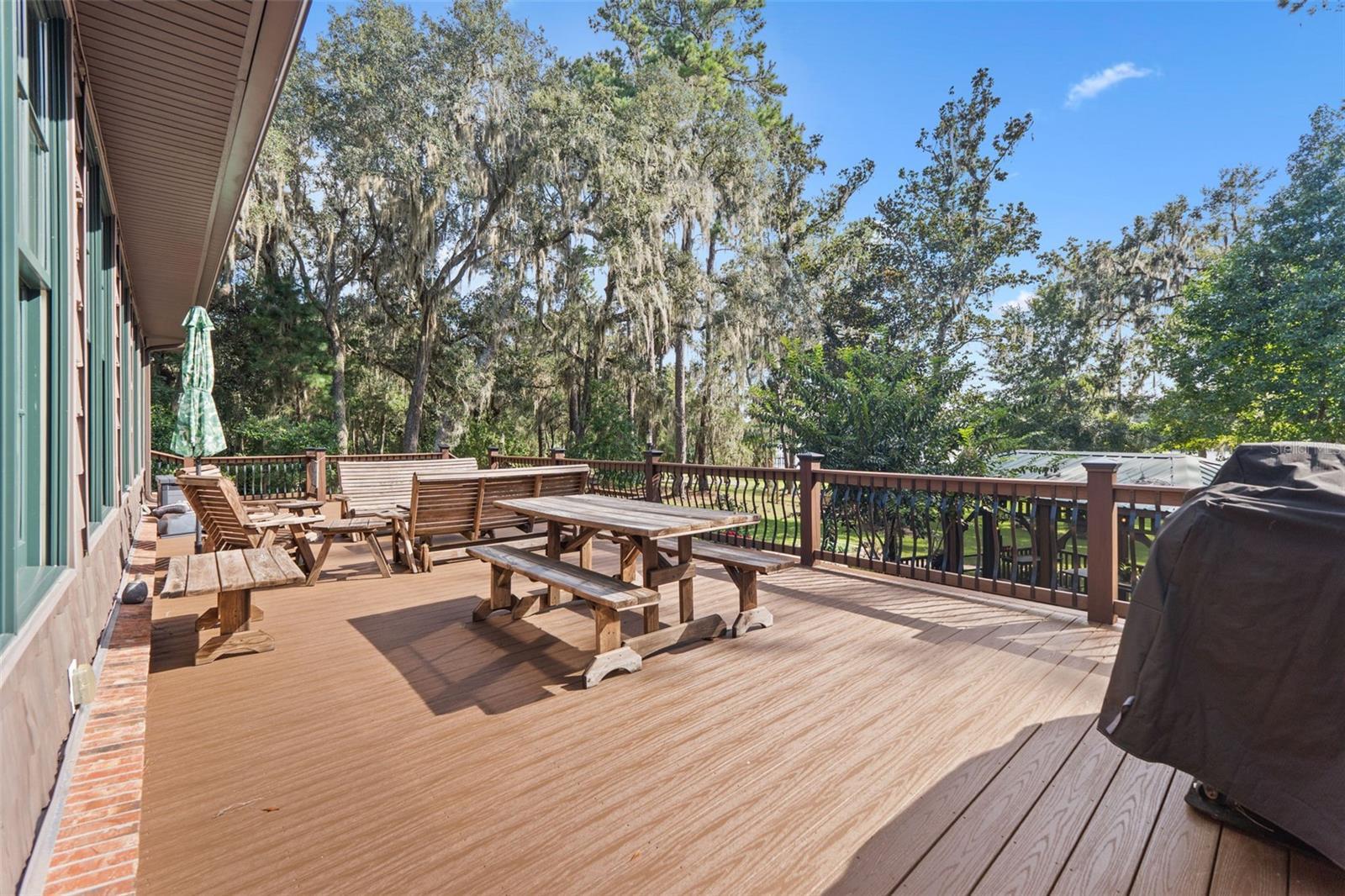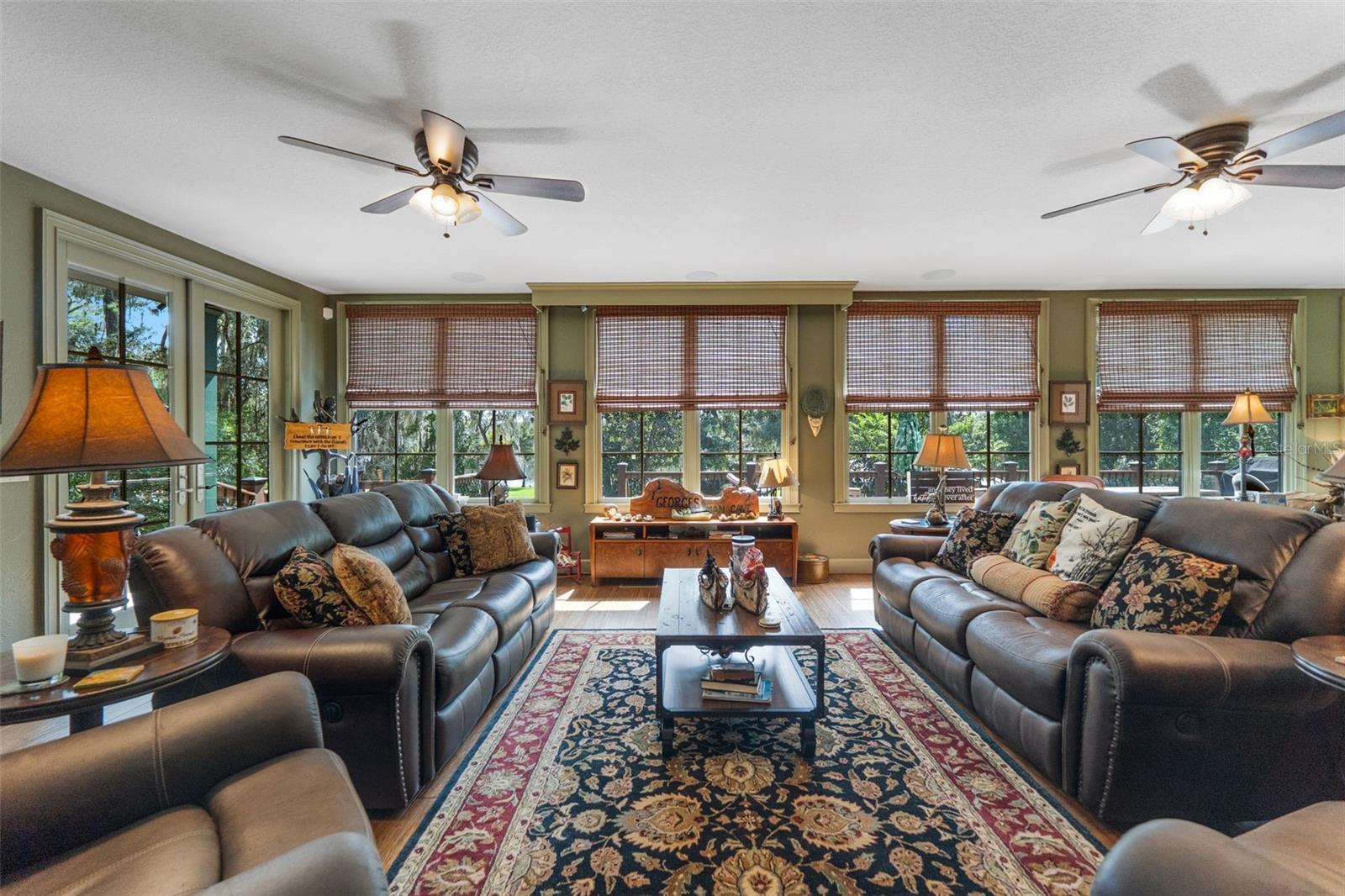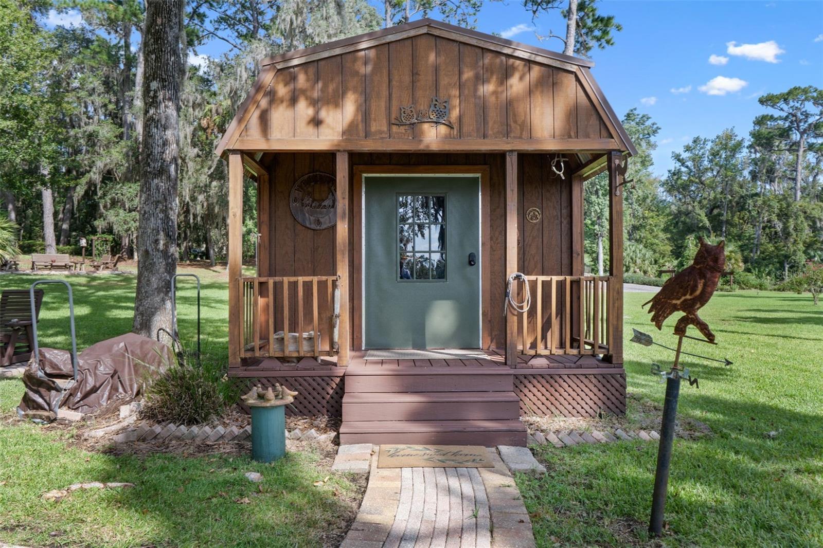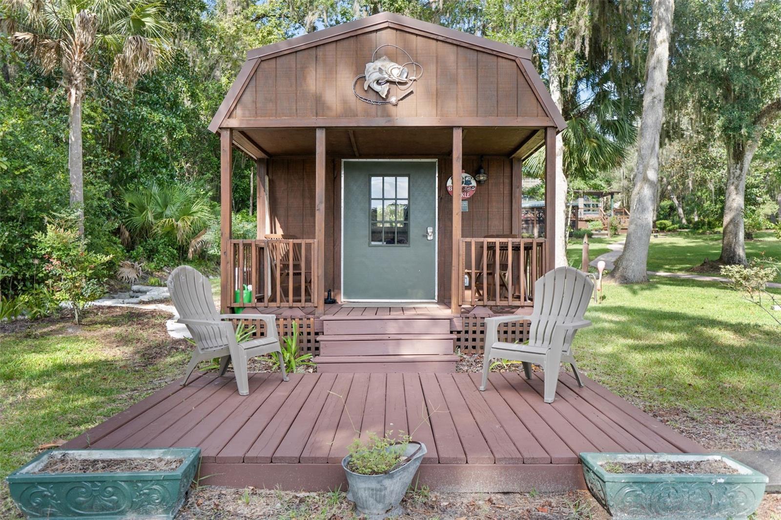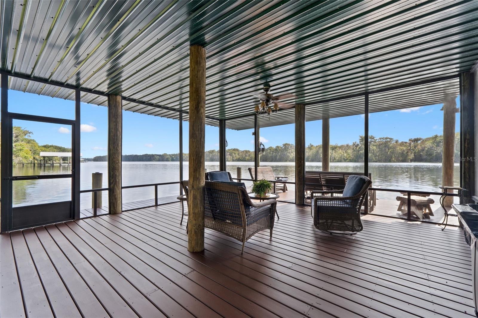 Rare opportunity to own a custom-built gated estate on the St. Johns River, featuring 365 feet of direct river frontage and 7 acres of peaceful, private land. This 3,025 sq ft home offers 3 bedrooms and 3.5 bathrooms, central vacuum, and other extra features. From the moment you arrive, you'll notice the meticulous attention to detail, thoughtful layout, and panoramic water views that define this one-of-a-kind property. The home blends luxury with comfort, offering custom finishes throughout, a spacious open floor plan, and a cozy, secluded feel perfect for full-time living or weekend retreats. Outdoor living is just as impressive as the interior. A 936 sq ft 3-car garage/barn is designed to accommodate a motorhome, with plenty of space for tools, gear, or recreational equipment. The furnished, screened dining gazebo provides a perfect setting for outdoor meals or entertaining. For guests, family, or fishing buddies, the property includes a 240 sq ft climate-controlled bunkhouse that sleeps three, as well as a unique “TackleBox House” complete with a bar, refrigerator, heat/air, fishing gear storage, and a relaxed lounge area. The two-story boat dock and a 365' seawall are standout features, offering a screened-in patio at the water's edge, an upper-level Party Deck, and two boat lifts. Whether you're an avid angler or a casual boater, this property offers everything you need for life on the water. Best of all, it’s ideally positioned directly across from the Caravelle Ranch Conservation Easement and the Ocala National Forest, ensuring protected, uninterrupted views of Florida’s natural beauty. Lastly, looking for an additional homesite or long-term investment? The property is comprised of two separate parcels, providing the potential to build a second home or hold as a valuable investment opportunity. This riverfront estate is the perfect blend of comfort, recreation, and privacy — a rare chance to enjoy boating, fishing, and peaceful living in an unmatched setting. Impeccably furnished and move-in ready, all that’s missing is you.