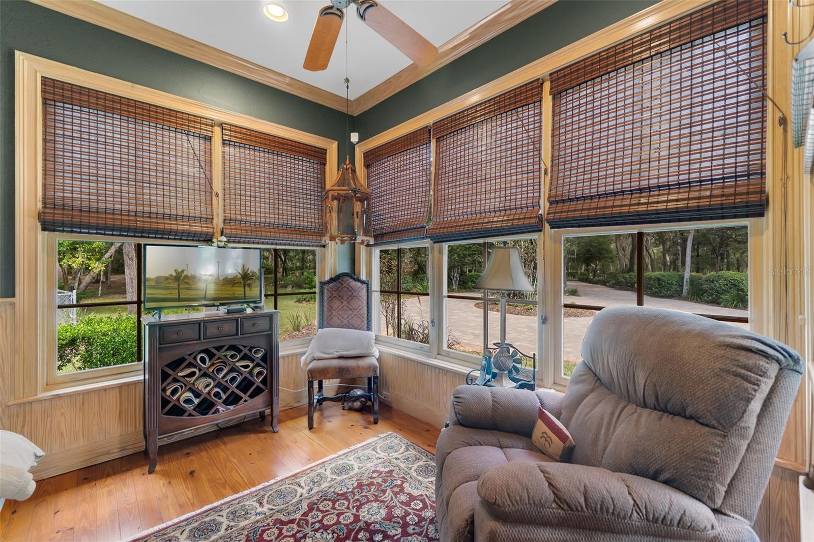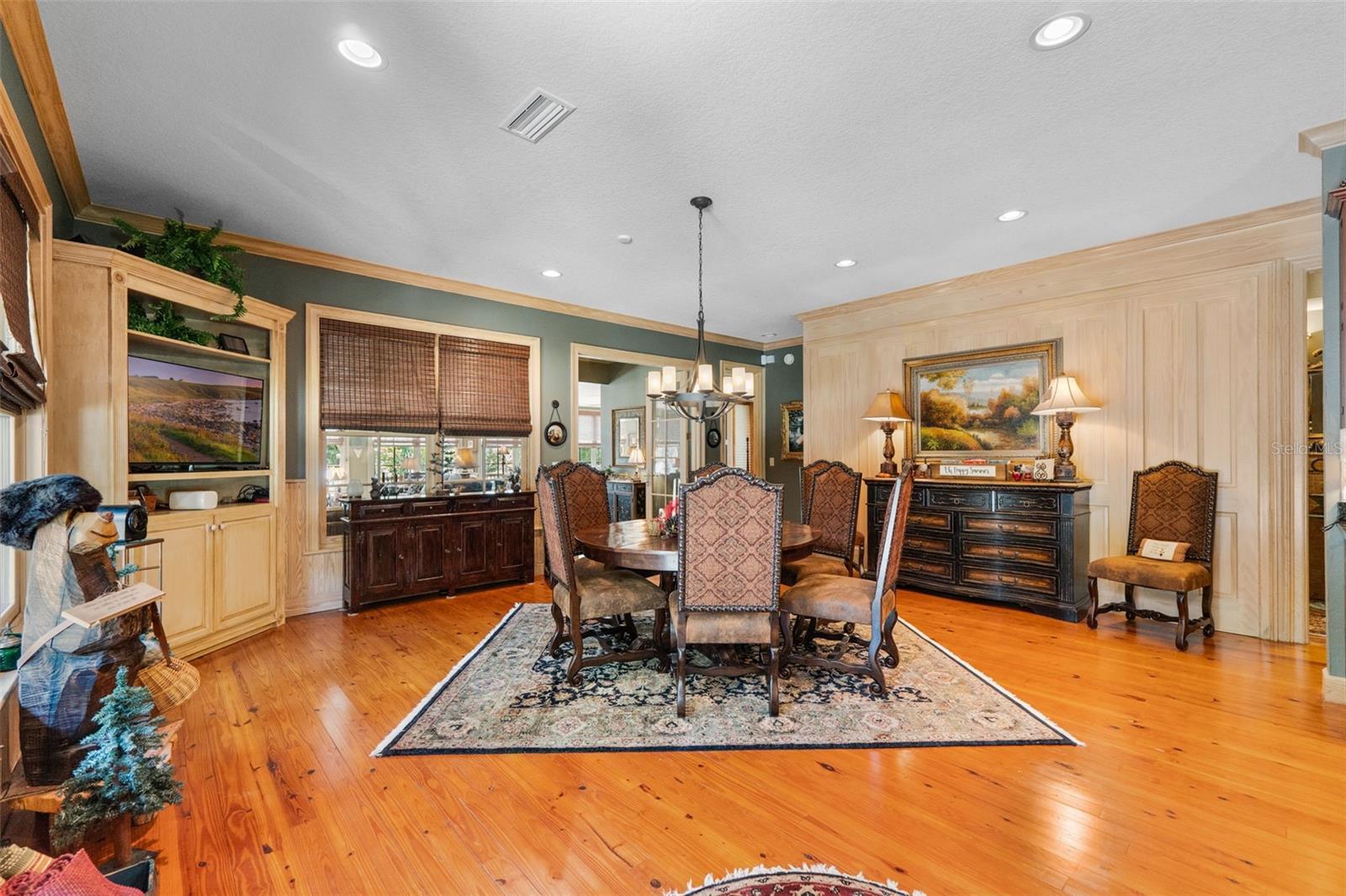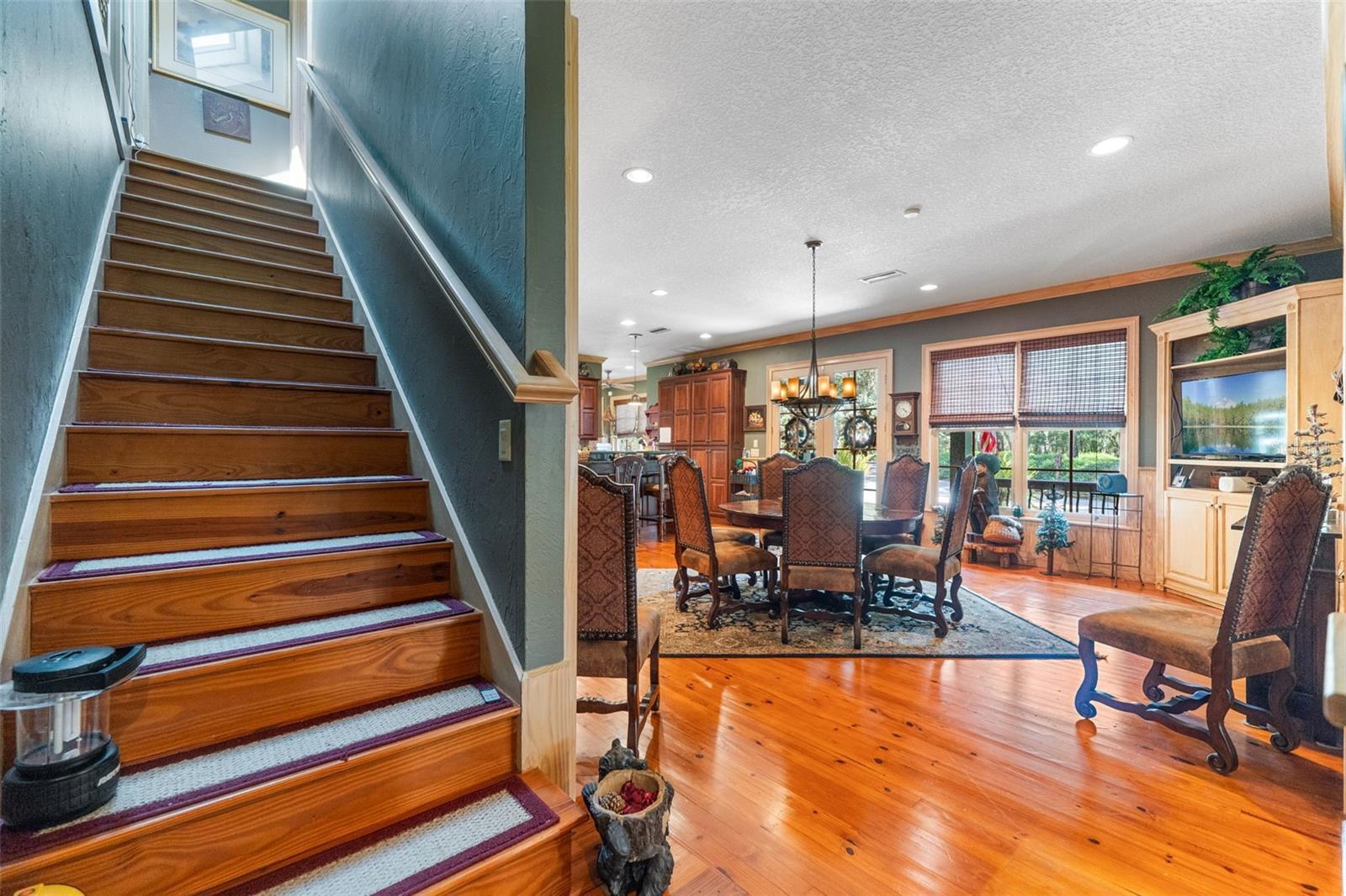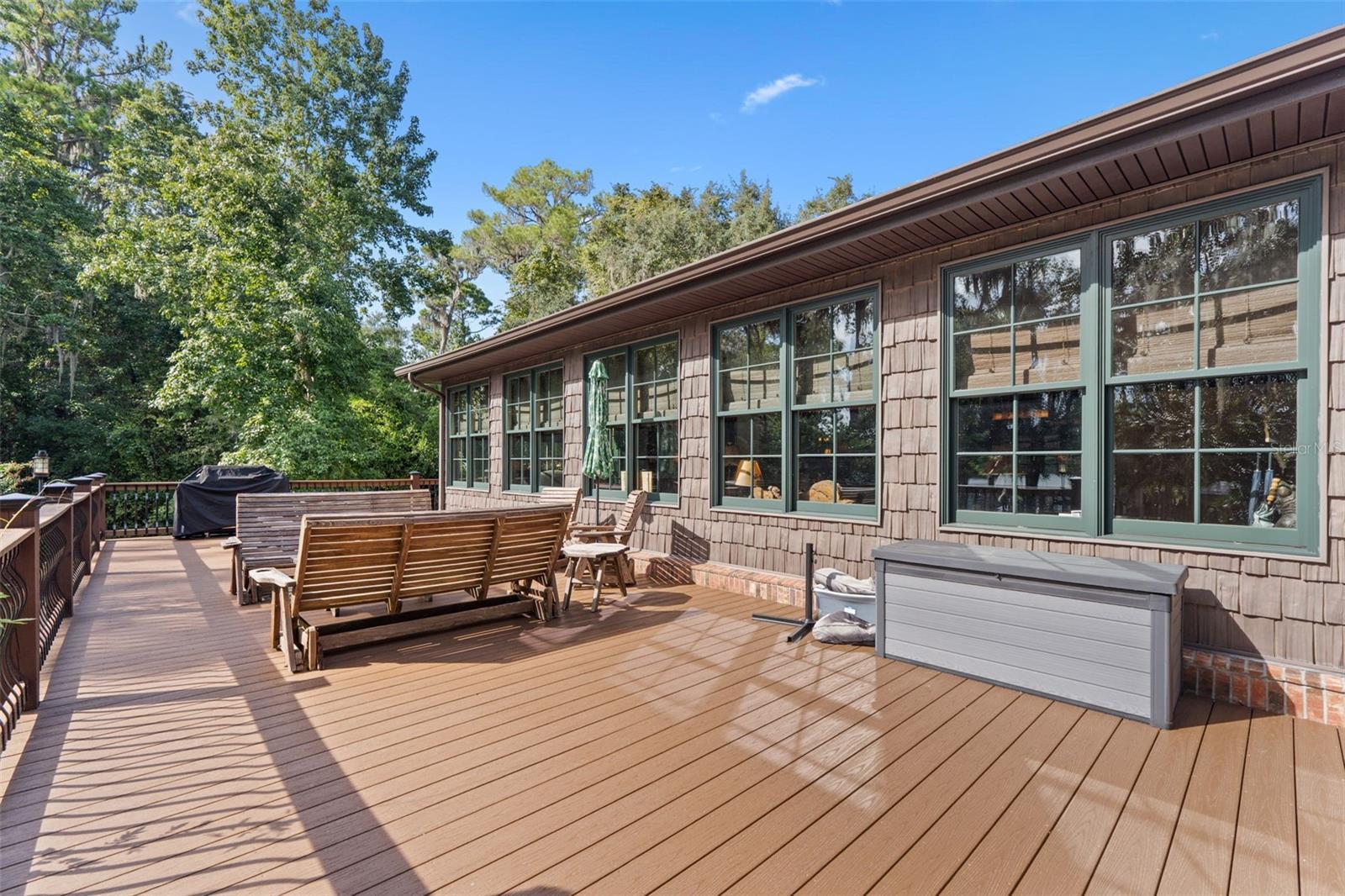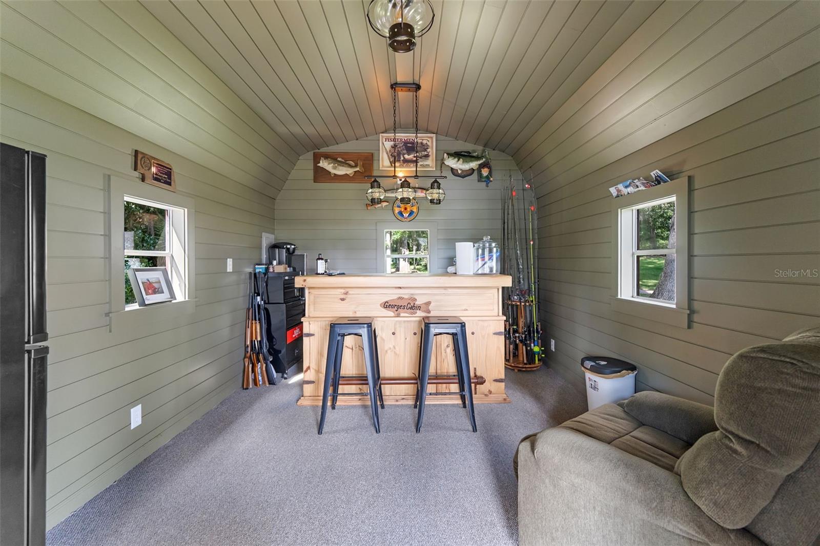 Rare opportunity to own a custom-built gated estate on the St. Johns River, featuring 365 feet of direct river frontage and 7 acres of peaceful, private land. This 3,025 sq ft home offers 3 bedrooms and 3.5 bathrooms, central vacuum, and other extra features. From the moment you arrive, you'll notice the meticulous attention to detail, thoughtful layout, and panoramic water views that define this one-of-a-kind property. The home blends luxury with comfort, offering custom finishes throughout, a spacious open floor plan, and a cozy, secluded feel perfect for full-time living or weekend retreats. Outdoor living is just as impressive as the interior. A 936 sq ft 3-car garage/barn is designed to accommodate a motorhome, with plenty of space for tools, gear, or recreational equipment. The furnished, screened dining gazebo provides a perfect setting for outdoor meals or entertaining. For guests, family, or fishing buddies, the property includes a 240 sq ft climate-controlled bunkhouse that sleeps three, as well as a unique “TackleBox House” complete with a bar, refrigerator, heat/air, fishing gear storage, and a relaxed lounge area. The two-story boat dock and a 365' seawall are standout features, offering a screened-in patio at the water's edge, an upper-level Party Deck, and two boat lifts. Whether you're an avid angler or a casual boater, this property offers everything you need for life on the water. Best of all, it’s ideally positioned directly across from the Caravelle Ranch Conservation Easement and the Ocala National Forest, ensuring protected, uninterrupted views of Florida’s natural beauty. Lastly, looking for an additional homesite or long-term investment? The property is comprised of two separate parcels, providing the potential to build a second home or hold as a valuable investment opportunity. This riverfront estate is the perfect blend of comfort, recreation, and privacy — a rare chance to enjoy boating, fishing, and peaceful living in an unmatched setting. Impeccably furnished and move-in ready, all that’s missing is you.