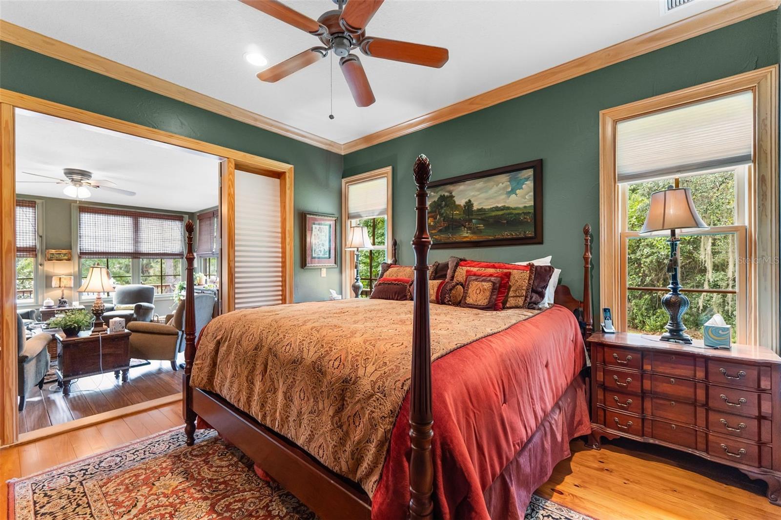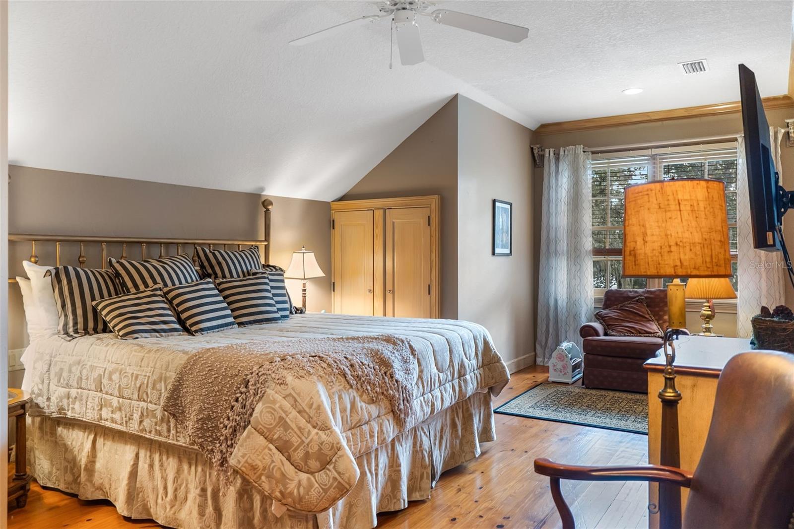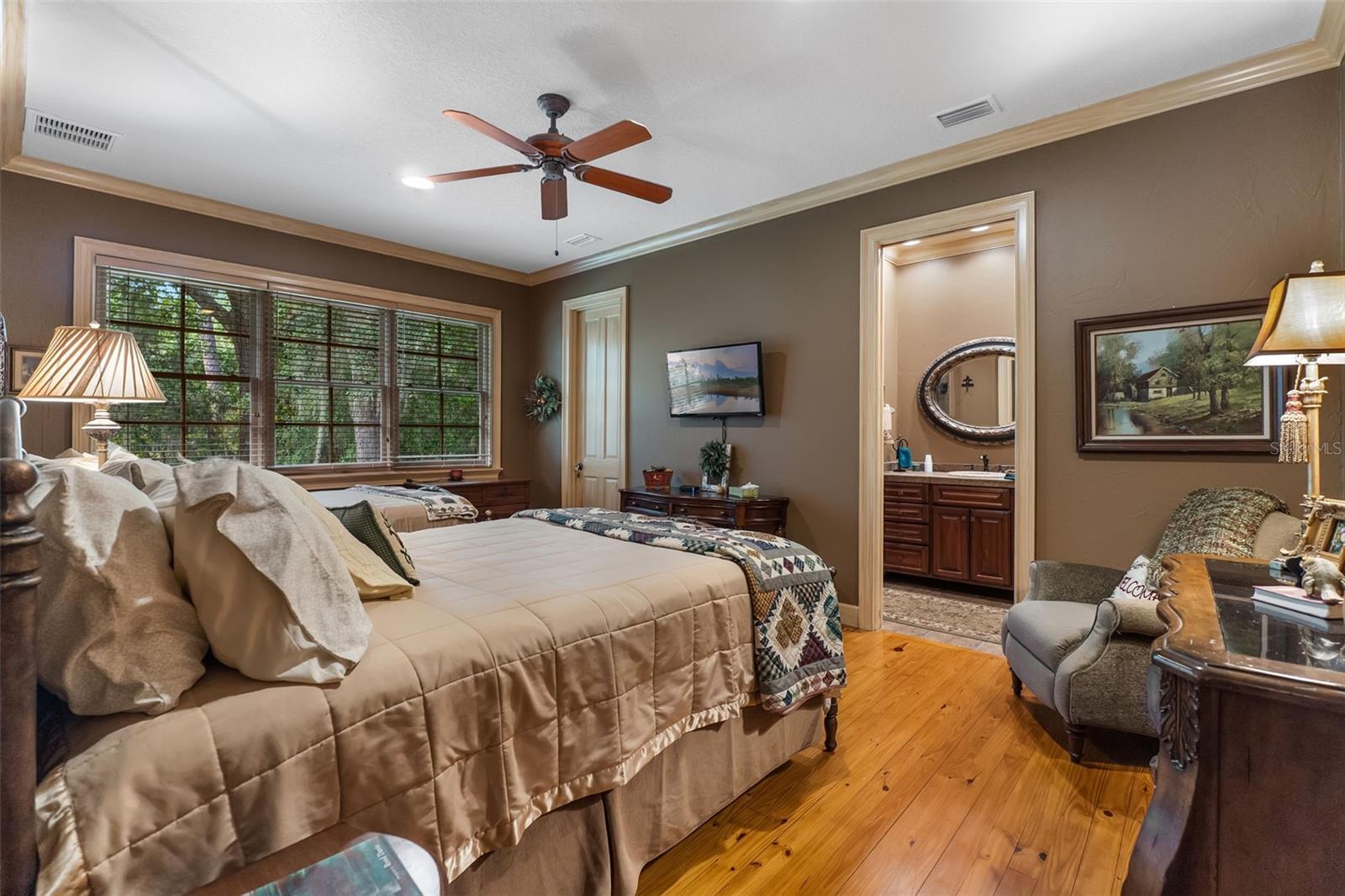 - Ceiling Fans(s), Crown Molding, Eat-in Kitchen, High Ceilings, Solid Wood Cabinets, Stone Counters, Walk-In Closet(s)