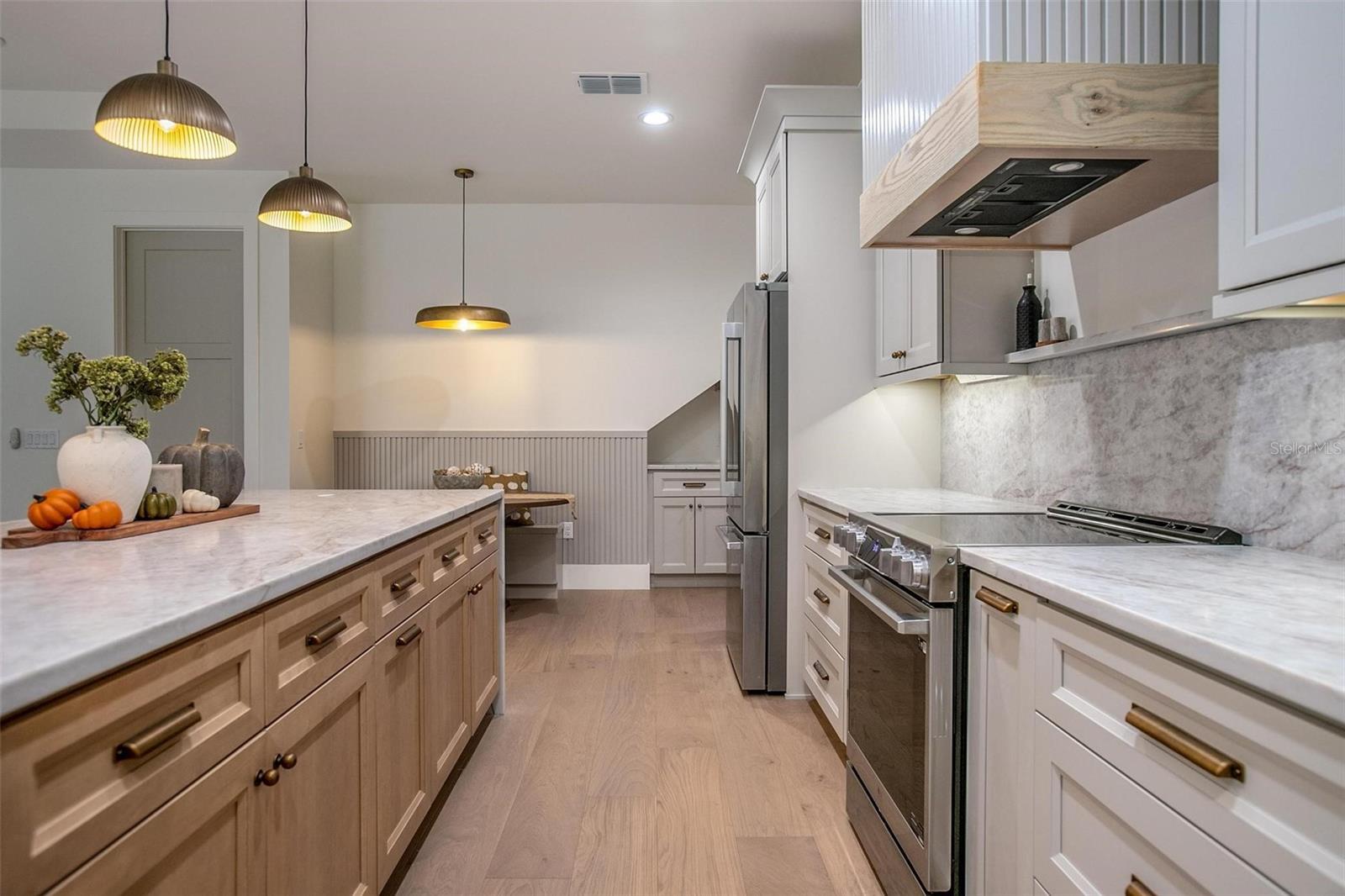 Under contract-accepting backup offers. Welcome to this brand-new custom home perfectly situated in the desirable Lake Winnemissett community. With 4 bedrooms, 3 bathrooms, and a spacious bonus room over the garage, this home offers 2,849 square feet of thoughtfully designed living space with luxury finishes. Sitting on nearly ¾ of an acre, the oversized lot provides the perfect blend of charm, space, and privacy. From the moment you arrive, the curb appeal is undeniable with stone accents, board and batten siding, a welcoming front porch, and a side-entry garage. Step inside to a bright, open floor plan featuring engineered hardwood floors, tray ceilings with exposed beams, and an electric fireplace framed by custom stone shelves. The warm glow of the fireplace creates an inviting ambiance — perfect for cozy evenings or as a dramatic focal point when entertaining guests. Recessed lighting within the stone niches adds to the home’s charm and highlights the natural finishes. The chef’s kitchen is truly the heart of the home with quartz countertops, full quartz backsplash, all-wood cabinetry, stainless steel appliances, and a custom apron-front quartz sink with porcelain basin. Pendant lighting over the island, under-cabinet lighting and outlets, double trash pull-outs, open shelving, and a large walk-in pantry with granite counters and custom shelving combine beauty and function in equal measure. Just off the kitchen, a dry bar with wine refrigerator sits alongside a built-in bench that flows seamlessly into the dinette, making this space perfect for both entertaining and everyday living. The primary suite is designed as a private retreat with a spa-like bath featuring double vanities, a freestanding soaking tub, and a large walk-in shower with dual entries and rainfall showerheads. The oversized master closet is outfitted with custom shelving, ensuring both luxury and organization. Custom tile work, illuminated niches, and a statement chandelier complete the elegant feel of this retreat. Additional bedrooms are generously sized and versatile, while the upstairs bonus room is perfect for a home office, media space, gym, or playroom. Every detail has been considered — from the oversized laundry room with sink and quartz counters, mudroom and built-in storage, to the two-car garage with epoxy flooring. Outdoor living is just as inviting, with a screened-in back porch ideal for relaxing evenings, and a spacious yard ready for gatherings, gardening, or play. All of this is located in a golf-cart friendly neighborhood with no HOA, close to the scenic St. Johns River and just minutes from Orlando, Daytona Beach, and New Smyrna Beach. This home is a perfect combination of modern luxury, timeless comfort, and Florida lifestyle living