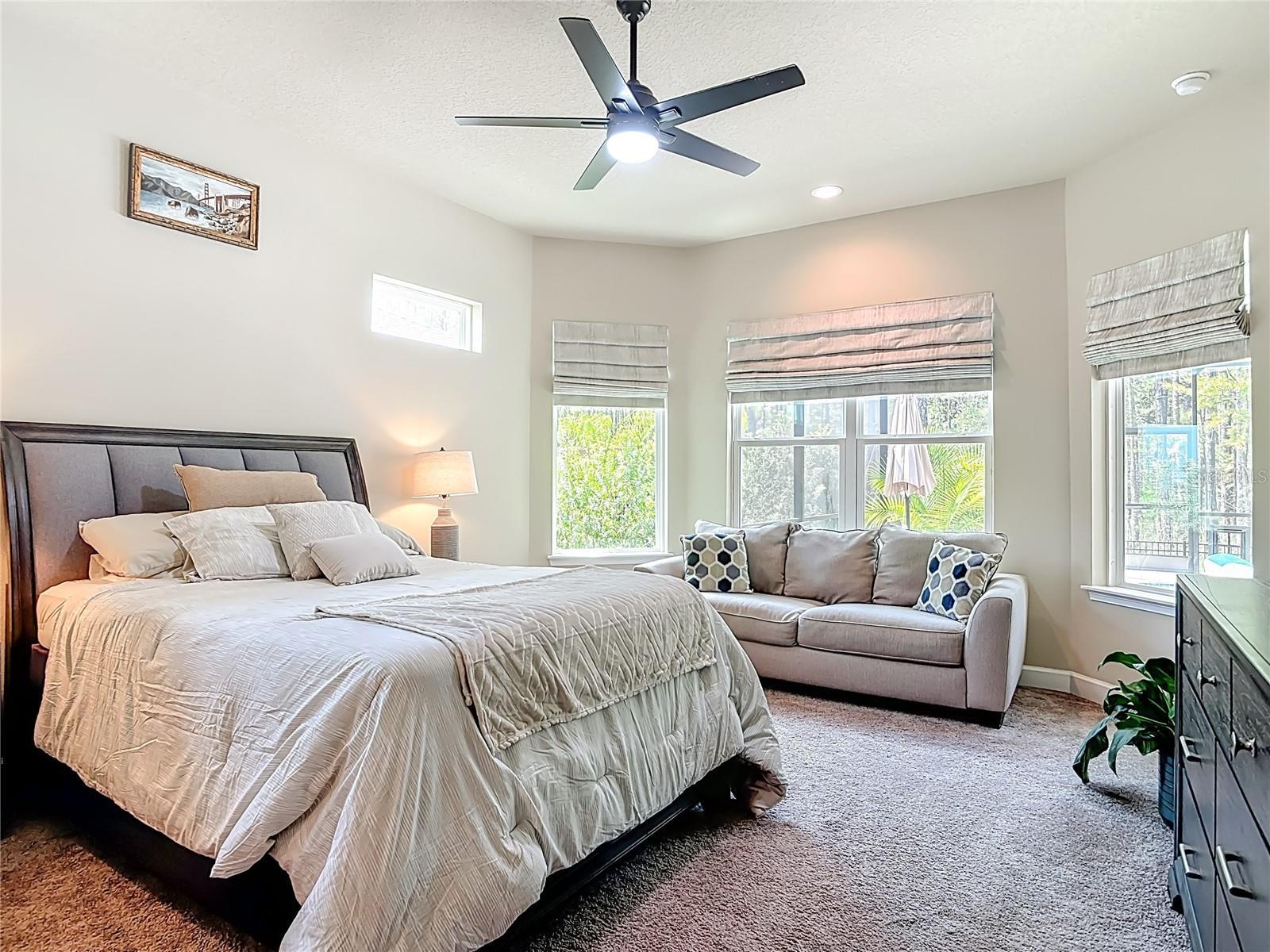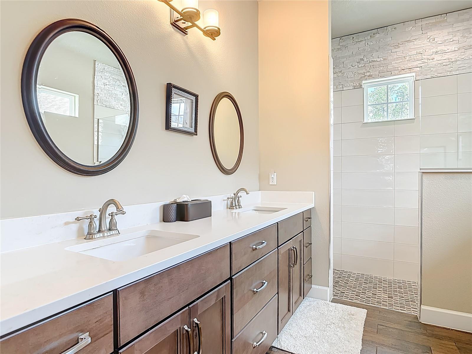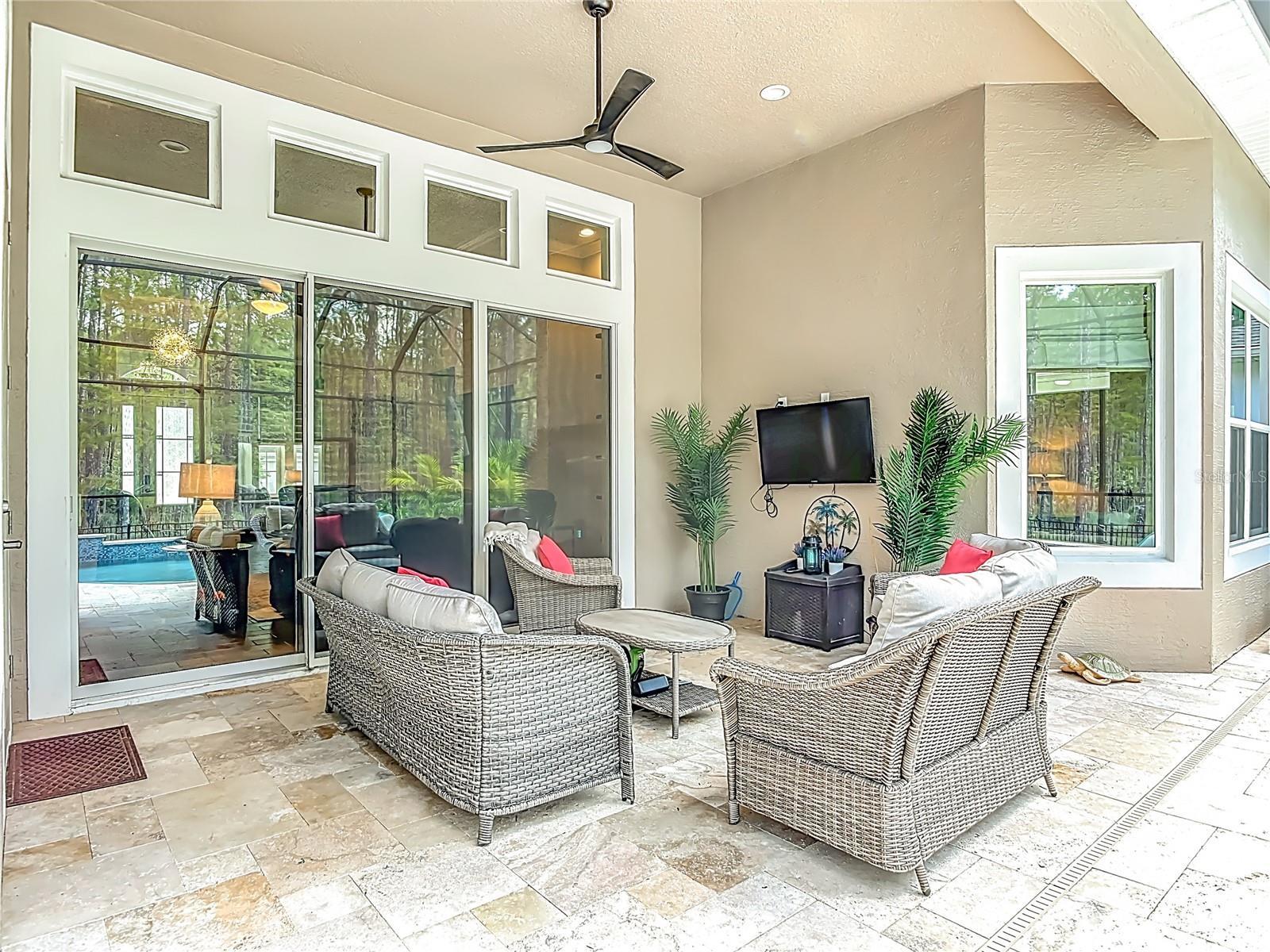 Gated access, lakes, preserves and unlimited amenities that you choose to use, including the new world class Golf Country Club facility. The Stirling Bridge Sub Community boasts the newest luxury homes meeting the demands of today's buyer trends, and this home will not disappoint you! This 2024 Custom Built Pool home offers unlimited upgraded features down to the finest detail! Positioned on a private wood preserve, extensive transom windows added to this design pour natural light and nature into the living spaces. Built-in features make this home a one of a kind! The kitchen has a nine foot, 3-inch-thick waterfall quartz island, custom wood hood vent and extended display lit cabinetry accentuating the soaring ceilings of the home. The open floor plan has double tray crown molding ceilings in the living area with stone wall/shelving and triple sliding pocket doors out to the pool. The split plan primary suit has double walk-in closets with barn door sliders, sitting area, and stunning walk-in shower for a home spa feel. This four-bedroom home has a large fenced-in yard for the two- and four-legged family members, and over 1400 SF Lania enclosing the travertine patio, pool, spa, as well as the 19 X 11 ft covered patio area. Love where you live! Just a short drive to the beaches of Flagler and Volusia County!