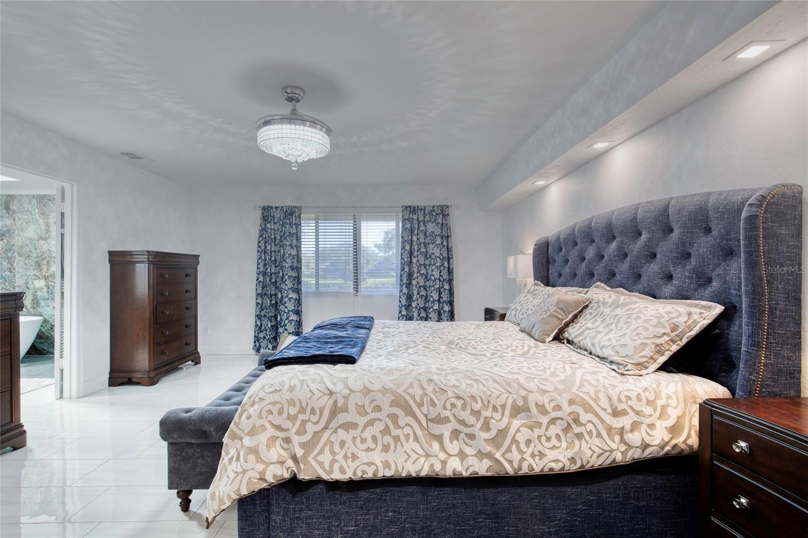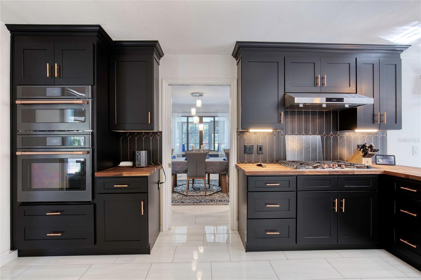 This extraordinary, designer-renovated 4-bedroom, 3-bath residence offers over 2,600 square feet of luxurious living space, modern efficiency, and breathtaking golf course views in beautiful New Smyrna Beach. From the moment you arrive, the inviting curb appeal, upgraded landscaping, and spacious circular driveway showcase the quality and care invested in this home. Inside, soaring architectural ceilings reach up to 15 feet, filling the space with natural light that highlights the polished white porcelain tile flowing seamlessly throughout and the upgraded lighting that illuminates every detail. The home's gourmet kitchen is a true showpiece—completely renovated in 2024 with high-end Café brand appliances featuring a black and rose-gold finish, a gas stove with stainless-steel vent hood, butcher block countertops, double ovens with one doubling as a microwave, a wine cooler, and abundant cabinetry offering exceptional storage. The living room features a stunning blue porcelain-tiled fireplace, creating a cozy and stylish focal point for gatherings. The main wing of the home includes spacious bedrooms with excellent storage, while the primary suite offers a lavish, spa-inspired bathroom showcasing premium 4' x 4' porcelain tile, a large walk-in shower, and gorgeous finishes throughout. An instant hot water system ensures you will never run out of hot water, and dual-zoned A/C allows you to close off areas of the home when not in use, promoting energy efficiency without sacrificing comfort. Outdoor living is exceptional with panoramic golf course views and the added convenience of two electric awnings, including one over the outdoor kitchen, perfect for relaxing or entertaining. A four-car garage provides ample space for vehicles, golf carts, and hobbies. The home is also equipped with a Generac whole-house generator, providing peace of mind and uninterrupted power during any outage. This property has been extensively updated with nearly $250,000 in high-quality renovations and improvements, including flooring, major electrical upgrades and new lighting throughout, luxury kitchen and primary bath renovations, enhanced landscaping, and a modernized HVAC system. A brand-new roof valued at $27,000 will be installed prior to closing by Roberson Roofing, and the new owners will be able to choose their preferred shingle color. A transferable A/C protection plan and extermination warranty add even more peace of mind. Every detail in this home has been thoughtfully curated, offering a luxurious living experience that is truly move-in ready. With spectacular views, designer upgrades, and modern comforts throughout, 1014 Staggerbush Place stands out as a rare opportunity to own a highly upgraded, impeccably maintained home in a sought-after New Smyrna Beach community. All information recorded in the MLS intended to be accurate but cannot be guaranteed.