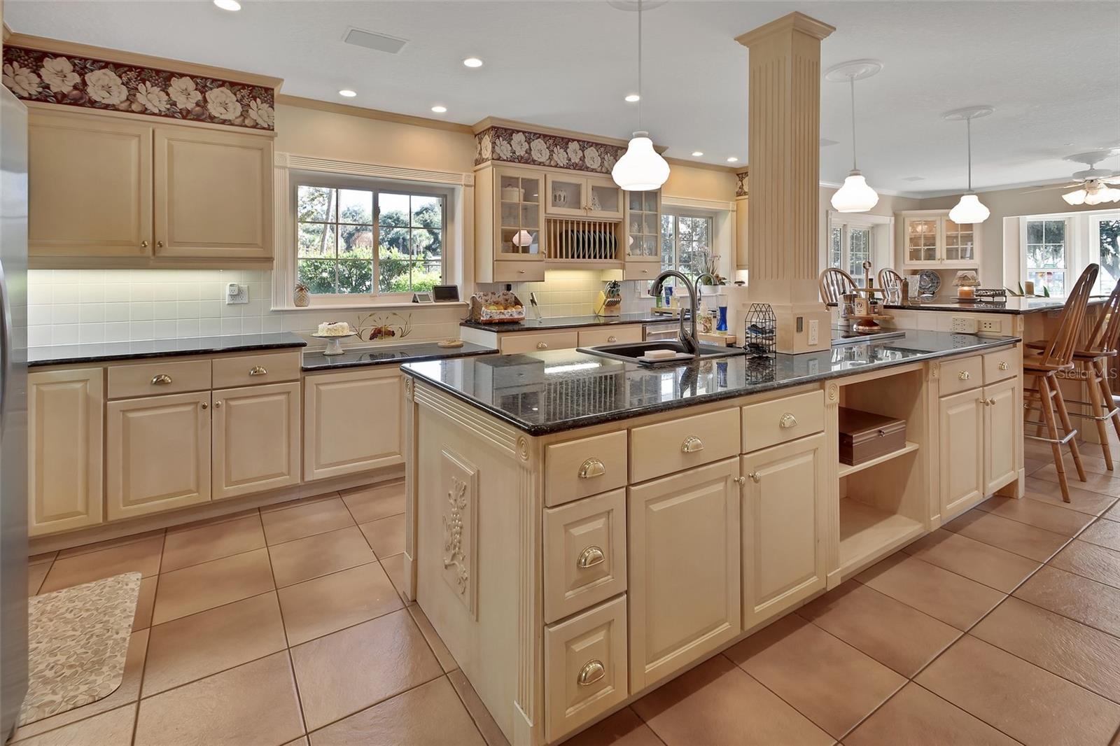 - Ceiling Fans(s), Central Vaccum, Crown Molding, Dry Bar, Eat-in Kitchen, High Ceilings, Open Floorplan, PrimaryBedroom Upstairs, Solid Surface Counters, Solid Wood Cabinets