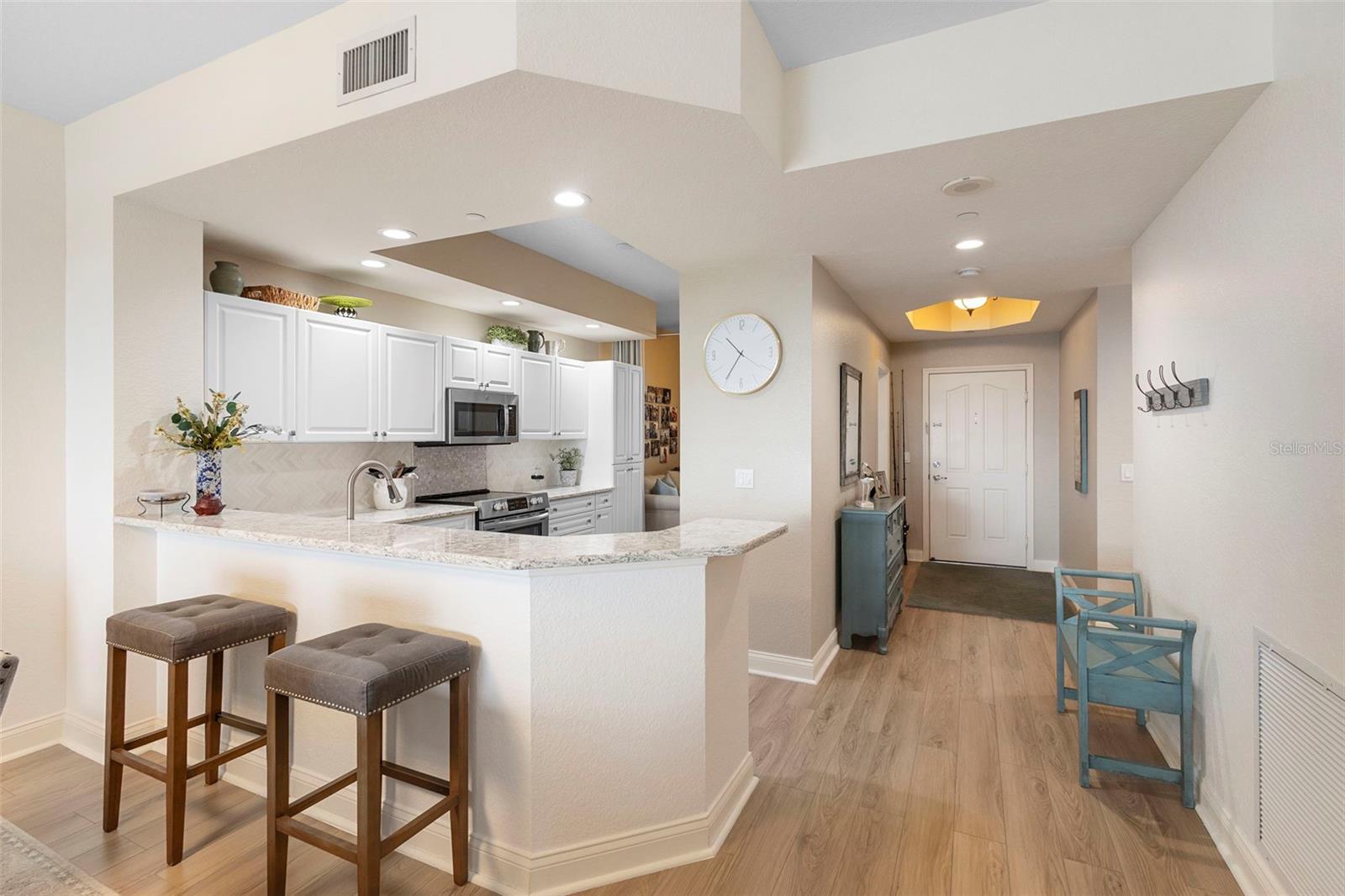 Exceptional opportunity to own a high-level unit with views of the Intracoastal & Ocean! This beautifully updated condo is located in Minorca, one of New Smyrna Beach's desired oceanfront commuities! Residents enjoy private beach access, a heated pool, clubhouse, fitness center, tennis courts, fishing pier and an active social calendar. Minutes from Flagler Avenue, dining, and the laid-back elegeance that defines NSB living. The interior of this unit has been thoughtfully refreshed in 2023 with desinger wood based luxury vinyl flooring, Carrara marble kitchen backsplash with a glass accent, cambria quartz countertops. In the bathrooms you'll find granite & marble countertops (installed,sealed & polished in 2024). Freshly painted(2023) and upgraded LED lighting (2024). Plush bedroom carpets (2023), newer appliances and well-maintained systems. Let's make this coastal retreat yours today!