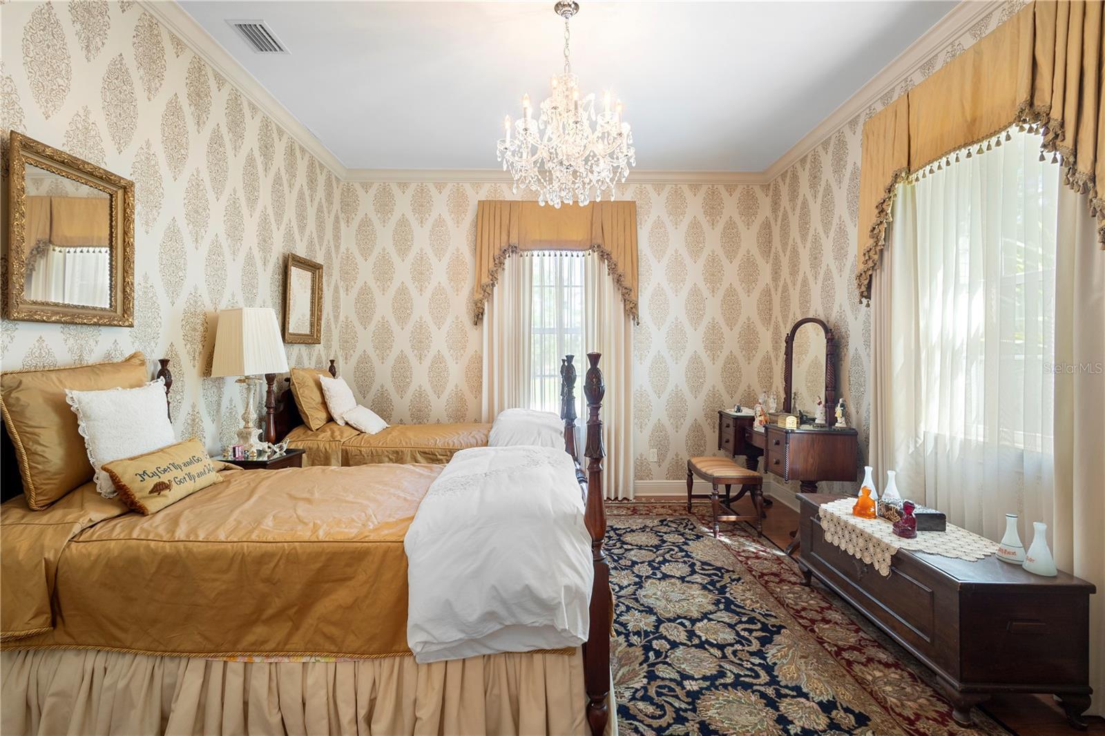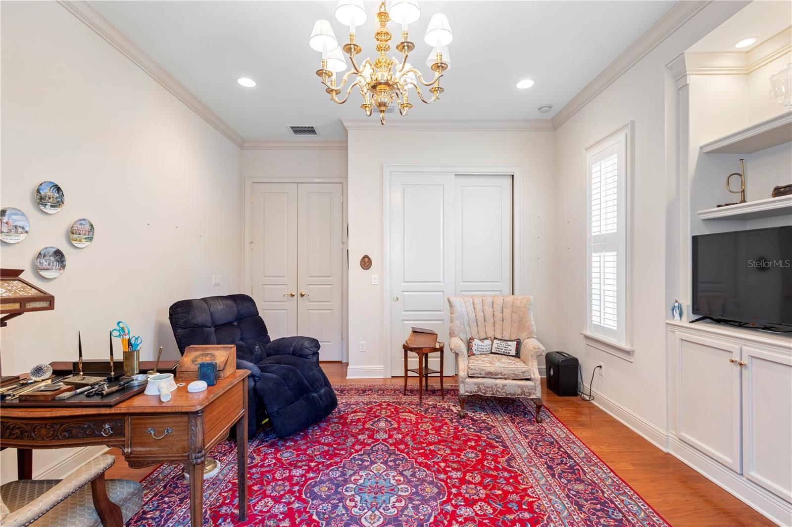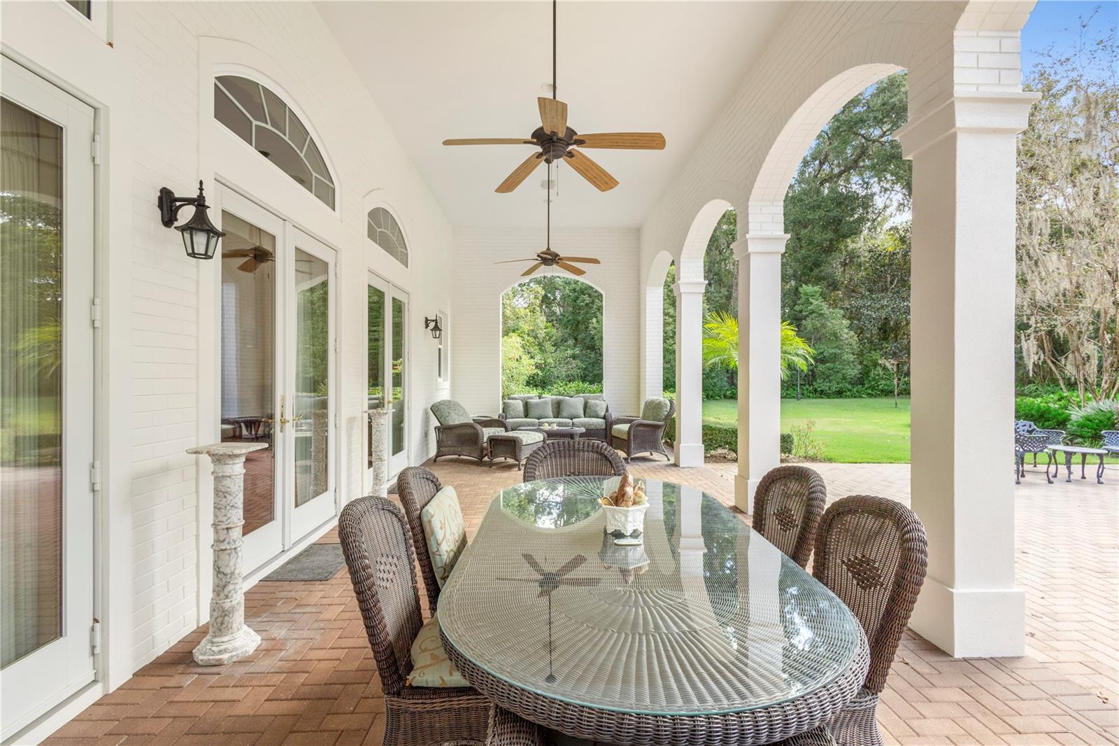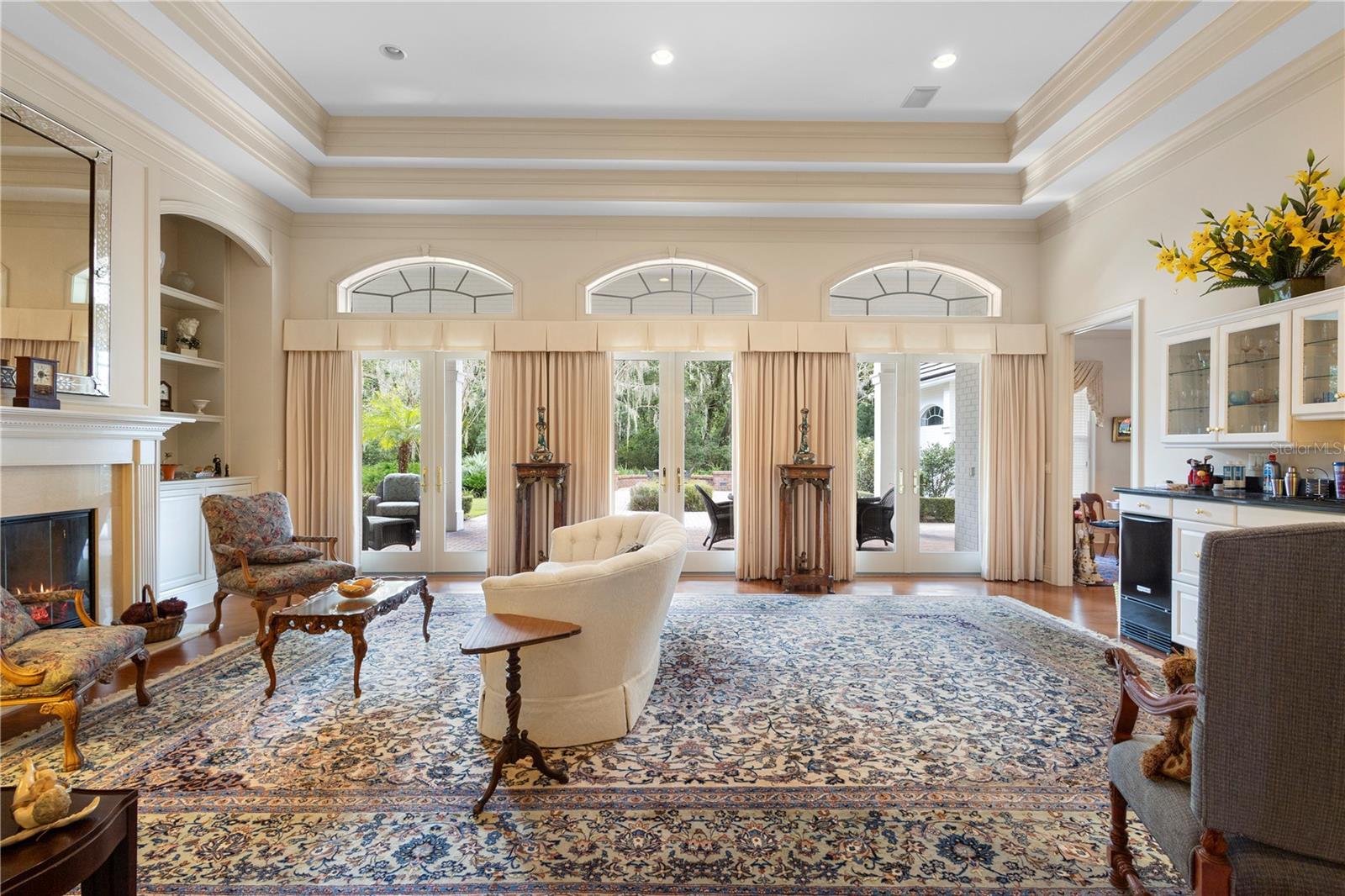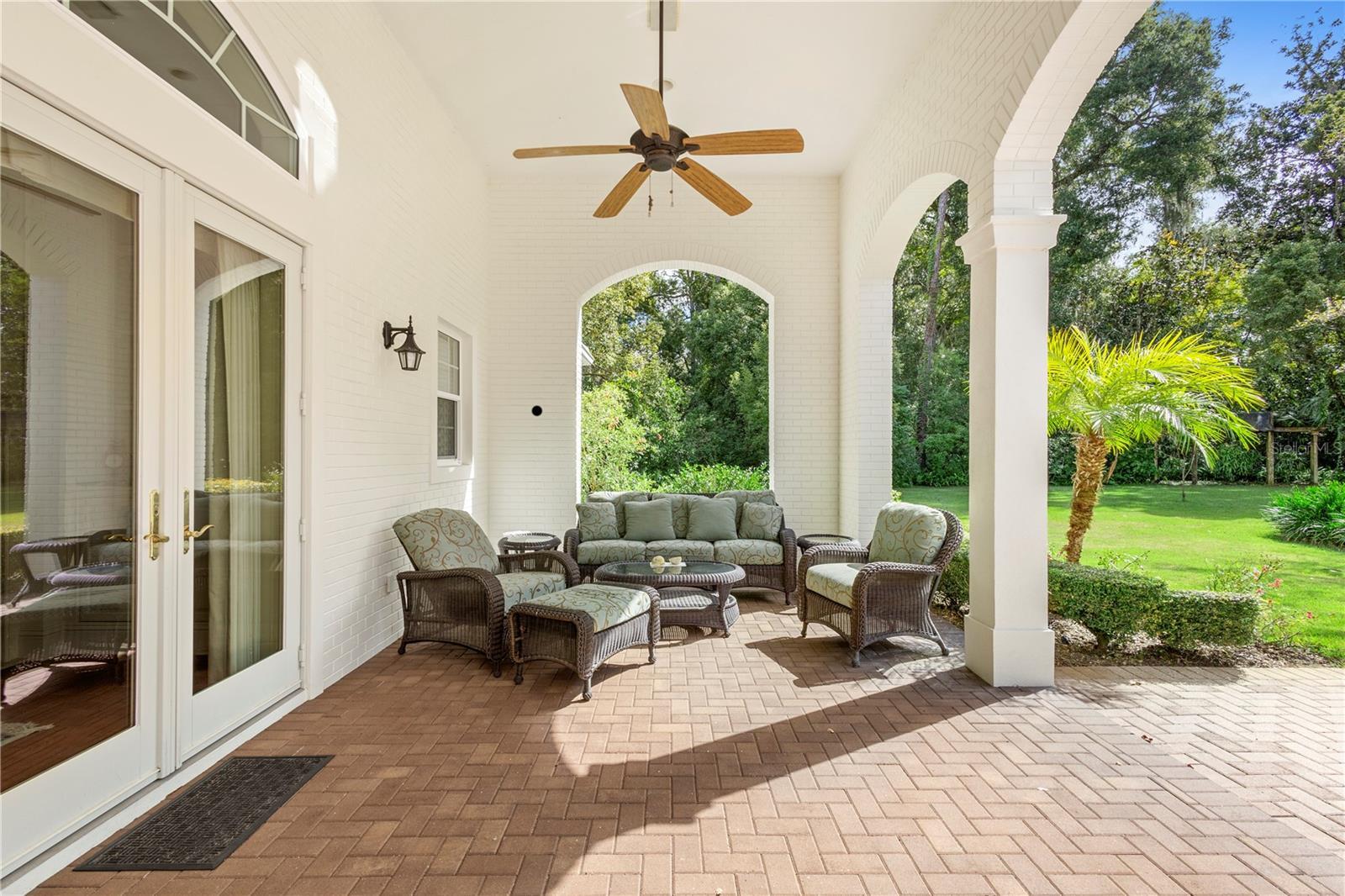 Under contract-accepting backup offers. Nestled in one of DeLand’s most sought-after communities, this stunning custom-built home by Richard Driggers combines luxury, style, and functionality with meticulous attention to detail and offers four spacious bedrooms, including a versatile office with built-in storage, three en-suite bathrooms, and a convenient half bath for guests. Inside, soaring ceilings and custom woodwork throughout elevate the design, while two natural gas fireplaces create a warm, inviting atmosphere. The chef’s kitchen features ample counter space, high-end storage, and an ideal layout for entertaining, and the huge family room with wet bar and ice machine provides the perfect space for hosting guests. Triple French doors lead to a private lanai overlooking lush, professionally landscaped gardens on an expansive 1.8-acre lot that offers an exceptional blend of privacy and beauty. An oversized two-car garage and whole-house generator add practical comfort and security, all just minutes from downtown DeLand and Stetson University, offering both tranquility and convenience.