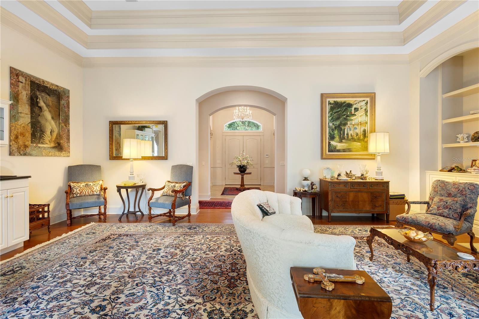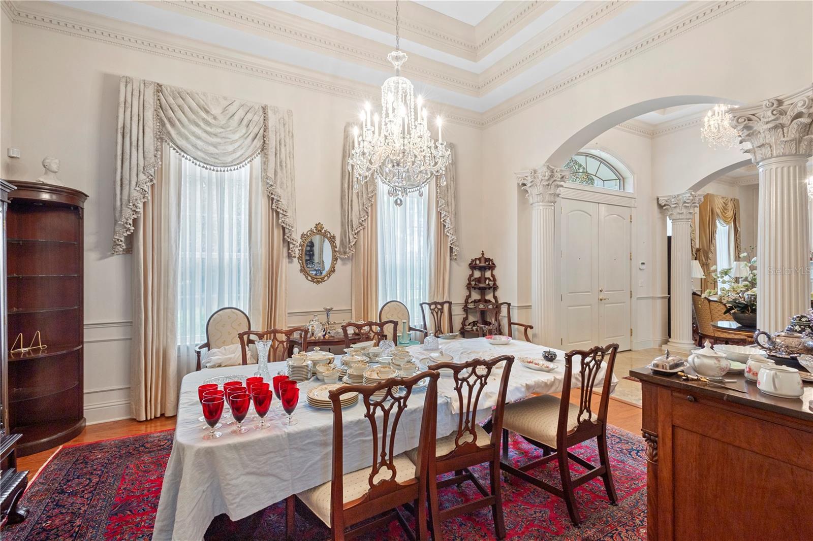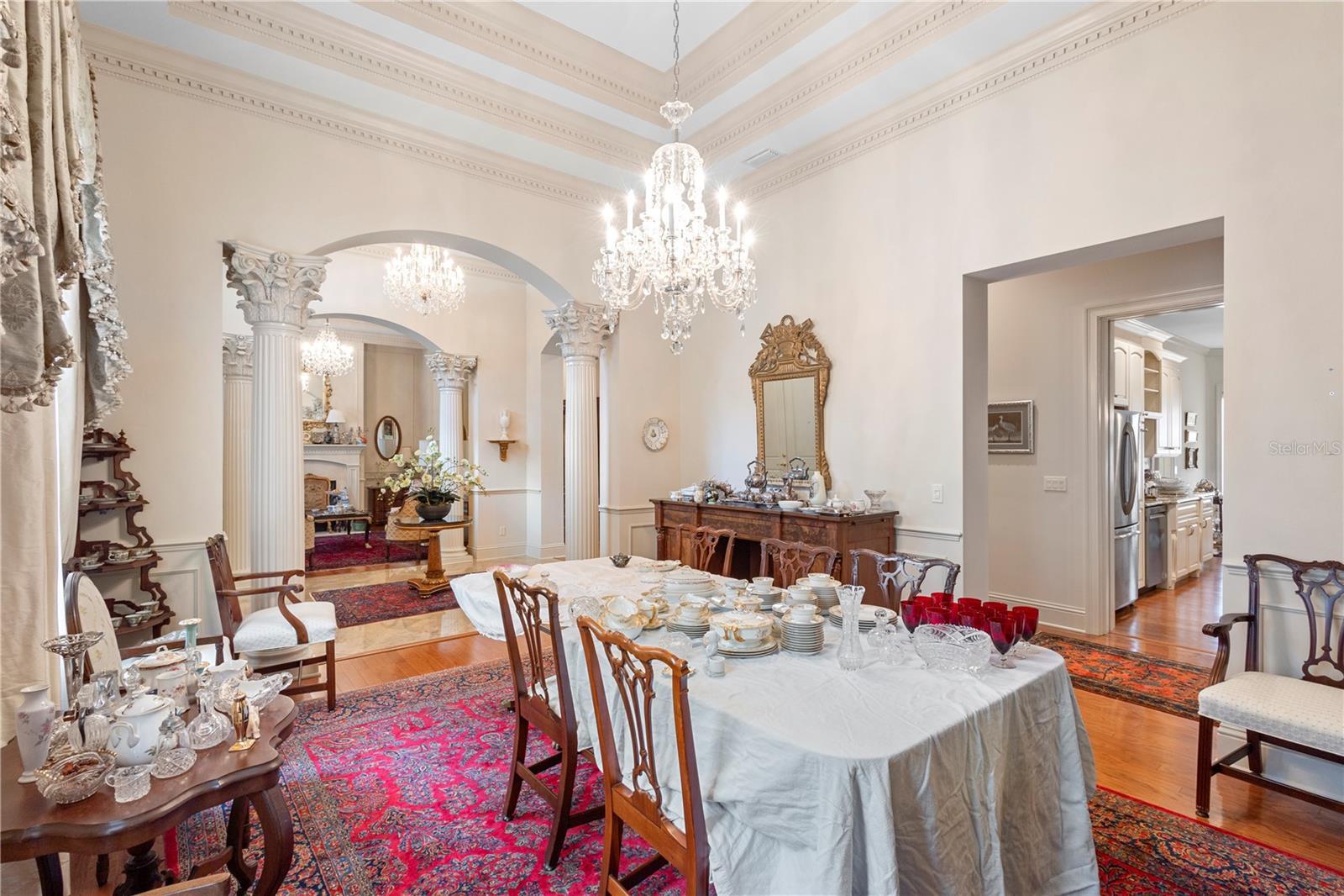 - Built-in Features, Cathedral Ceiling(s), Ceiling Fans(s), Coffered Ceiling(s), Crown Molding, Eat-in Kitchen, High Ceilings, Solid Surface Counters, Split Bedroom, Tray Ceiling(s), Vaulted Ceiling(s), Walk-In Closet(s), Wet Bar, Window Treatments