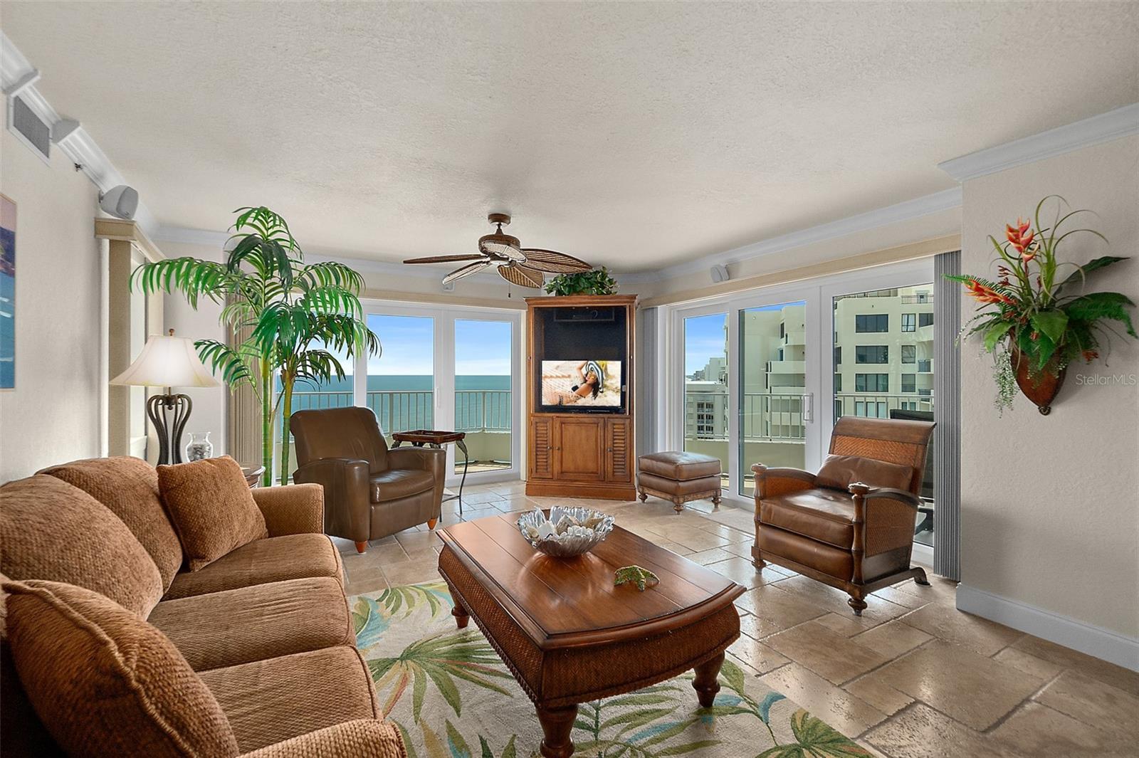 BEAUTIFULLY UPGRADED BALI INSPIRED DIRECT OCEANFRONT CONDOMINIUM HOME ON THE SOUTHEAST CORNER OF THE 19TH FLOOR! IMMACULATE, RICH STONE TILE FLOORING SETS THE TONE INTO A HOME THAT BALANCES TIMELESS CHARM WITH PRESTIGIOUS CRAFTSMANSHIP. A NEW AIR CONDITIONER AND SLIDING GLASS DOORS CONVEY AN ELEVATED STANDARD OF EXCELLENCE. THE PINNACLE OF SOPHISTICATED COASTAL LIVING THROUGH BRIGHT, LIVING SPACES FILLED WITH OCEAN VIEWS THROUGH WALLS OF GLASS. THE LIVING AREA FLOWS ONTO A WRAP AROUND BALCONY BOASTING OCEAN & RIVER VIEWS. THE DINING AREA CONNECTS THE CUSTOM KITCHEN TO THE ENTERTAINMENT SPACE WITH HIGH-END FINISHES AND GOURMET FUNCTIONALITY, FEATURING BESPOKE CABINETRY, PREMIUM SS APPLIANCES, TOP NOTCH GRANITE & DECORATIVE BACKSPLASH. EVERY DETAIL CHOSEN TO CREATE A CHEF INSPIRED AREA THAT IS BOTH BEAUTIFUL AND HIGHLY FUNCTIONAL. THE MAIN BATH IS FULLY UPDATED WITH A SPACIOUS SHOWER FEATURING TILE TO THE CEILING AND SERVICING THE GUEST WING. BOTH GUEST ROOMS ARE OCEANFRONT, PRIVATE AND COULD BE A WORK SPACE OR SECONDARY PRIMARY SUITE. THE PRIMARY BEDROOM IS OCEANFRONT WITH PROTECTED BALCONY ACCESS. A CUSTOM WALK-IN CLOSET,SPA BATH WITH INTRICATE TILEWORK, TRANSFORMS THE DAIY ROUTINE TO A SPA-LIKE EXPERIENCE. THE COMMUNITY OFFERS A WIDE ARRAY OF AMENITIES INCLUDING INDOOR/OUTDOOR SWIMMING POOLS, PRIVATE BEACH ACCESS, A FITNESS CENTER, SAUNA AND OCEANFRONT CLUBROOM. PROFESSIONALLY DECORATED LOBBY AND ON-SITE MANAGEMENT. A RARE OFFERING WHERE CHARACTER, COMFORT AND CAREFUL STEWARDSHIP COME TOGETHER IN THE HEART OF DAYTONA BEACH SHORES.
